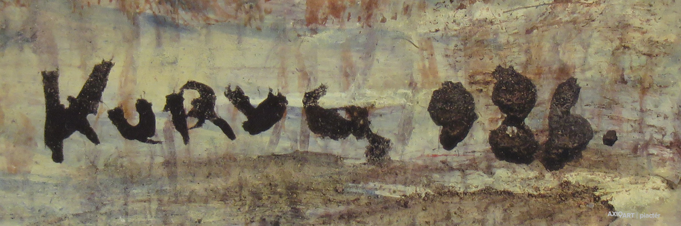 [1Y029/Z018] Olaj farost festmény, üveglap mögött, hibátlan képcsarnokos keretben. Hátoldalán Képcsarnok Vállalat papír címkéje: A művész neve: SCHÉNER MIHÁLY A kép címe: TÁJ Magasság: 66.5 cm Szélesség: 86 cm Súly: 6.54 kg Schéner Mihály festő, grafikus, szobrász, keramikus, bábtervező Medgyesegyháza, 1923-01-9 Elhalálozott: Budapest, 2009. május 11. Honlap: http://www.kormendigaleria.hu/kiadvany.html 1942-1947: Magyar Képzőművészeti Főiskola, tanára: Rudnay Gyula. 1978: Munkácsy-díj; 1984: érdemes művész; 1989: kiváló művész; 1995: Kossuth-díj. 1992-től a Magyar Művészeti Akadémia, 1993-tól a Széchenyi Irodalmi és Művészeti Akadémia tagja. 1956-ig tanított. 1982: Nagyatádi Faszobrász Alkotótelep, 1985: Nemzetközi Acélszobrász Alkotótelep, Dunaújváros. A stílusában felismerhető, mégis sokféle műtárgyat létrehozó ~ gazdag, állandóan alakuló életműve a folyton változó világban helyét kereső, az alkotói szabadságot megvalósító XX. századi képzőművész példázata lehetne. Magát expresszív-szürrealista alkotónak nevezi. Egyaránt dolgozik festékkel, textillel, fával, fémmel. Rajzol, szerkeszt, farag, épít, gyúr, varr és ragaszt, felhasználja a mézesbábok öntőformáit. Festő, rajzoló, textilszobor- és bábkészítő, fazekas, asztalos, esztergályos. Háromlépcsős folyamatban gondolkozik: rajzban tervez, majd fest, szobrot készít, “formába önt”, mindig a végső plasztikai megoldást keresi. Ami állandó és mégis játékosan változékony megjelenésű Schéner művészetében, az a gyermekkori emlékek által meghatározott népi mesterségek iránti tiszteletet kifejező motívumkincs, a tárgyi folklór formakészlete, amely már-már kézjegyként ismétlődik munkáin. Mitologikussá nőtt képzelete új lényeket teremt, pl: a Pigulát, amely disznótestű, emberfejű teremtmény. Schéner festményein a szürrealista motívumokat konstruktív szerkezetbe rendezi, a geometriát és az organikus természeti motívumokat egyaránt beépíti műveibe. A népi, népművészeti formakincsből merített lovas huszárok, betyárok, szegénylegények cifra szűr mentéje, piros csákója, fekete csizmája, az önálló életet élő zsinórdíszek és mézeskalács bábok, a kiskocsik a gyermekkori vásárok, búcsúk színes forgatagába vezet. A primér motívumokat aztán felváltják a vastagon felhordott felületbe karcolt jelek, vonalhálózatok, amelyek a játszó gyermek homokba rajzolt ábráit, a pásztorember fába vésett üzeneteit, az ősember barlang falába rótt mágikus jeleneteit idézik meg. A művész pillanatnyi érdeklődésének megfelelően a színek búvópatakként tűnnek el és jelennek meg ismét. A 60-as években leginkább a formákkal való játék érdekelte, a festmények felülete egyre gazdagodott: a táblaképek felületén applikációk jelentek meg, vagy lemállasztott rétegek hagyták maguk után hiányukat, motívumok nélküli ősformák, archetipikus képzetek bukkantak fel művészetében. A véletlenszerűnek látszó rétegekkel való játék azonban tudatos komponálás eredménye, amely később nyilvánvaló ritmusnak és formai szerkesztettségnek adja át a helyét, mint a Törvénytáblák c. sorozaton. A különböző művészi kifejezési formák egymásra termékenyítő hatással vannak, át- meg áthatják egymást. Textilszobrai, amelyekkel új műfajt teremtett, ugyanazzal az automatikus, expresszív-szürrealista módszerrel készülnek, mint festményei. A hagyományosan a népművészetben alkalmazott anyag, a filc lehetőséget ad a népi formakincs felelevenítésére, amely azonban a művész különös szürrealista átiratában jelenik meg. A szívekkel kivarrt, zsinórdíszes Posztókotlós c. művén mézesbábok lógnak, hátán huszárok lovagolnak. Egész sor textilből készült kéz-plasztikát alkot, amelyeket az ujjakra rávarrt díszekkel öltöztet, személyesít meg. A színes-különös világból aztán ~ újra puritán képi és formai rendbe juttatja el a nézőt, majd nemsokára tépett, gyűrt, vágott, csorgatott, repedezni hagyott szenvedélyesen vonagló képi felületeket hagy hátra. Schéner készített apró gyermekjátékokat, térstruktúra-tereket, mászókákat is. A magyar népi formák mellett szürreális játékaiban gyakran alkalmaz görög mitológiai alakokat, “elkentaurosodott” lovakat, Gorgó-fejeket, sellőket, hárpiákat, Pán-ábrázolásokat. Schéner nemcsak saját művészetéről publikál, hanem művésztársairól is számos írása jelenik meg, elsősorban az Új Auróra c. folyóiratban, amelynek egy ideig főmunkatársa volt. Irodalom kiállítása, Magyar Építőművészet, 1962/4. Húsz év után, Művészet, 1965/4. BOZÓKY M.: ~, Tiszatáj, 1968/5. PERNECZKY G.: Nincs uborkaszezon, Élet és Irodalom, 1969. augusztus 8. BARÁNSZKY-JÓB L.: ~, Művészet, 1969/9. LÁSZLÓ GY.: ~ kaposvári kiállítása, Jelenkor, 1969/4. MAJOR M.: Pásztorok, betyárok, huszárok - kezek, Tükör, 1970. szeptember 15. FRANK J.: Bemutatjuk ~t, Élet és Irodalom, 1972. május 6. ról kiállítása ürügyén, Képzőművészeti Almanach, Budapest, 1972 Sötétkék kokasok, Élet és Irodalom, 1973. szeptember 9. MAJOR M.: ~ játékai, Élet és Irodalom, 1974. július 27. BARTA J.: Egy különös művész, Alföld, 1974/6. VADAS J.: Szárnykészítők, Élet és Irodalom, 1975. október 4. JUHÁSZ F.: A halál ellen játszani, Élet és Irodalom, 1975. május 17. PAP G.: Kincsek és műkincsek, Művészet, 1975/6. P. SZŰCS J.: Az utak kettéválnak, Művészet, 1978/3. Békési művészet, Művészet, 1978/7. SZAMOSI F.: ~ [kismonográfia], Budapest, 1978 VADAS J.: Játék a játékkal, Élet és Irodalom, 1979. augusztus 18. NÉMETH L.: ~ műveiről, Művészet, 1979/4. MIKLÓS P.: Mit akar ez a múzeum?, Művésze