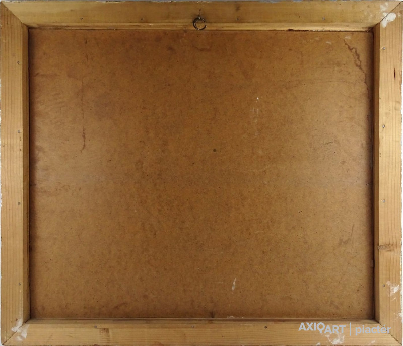 [FK0037/Z018] A kép mérete: 50 x 70 cm keret nélkül. Készült: Olaj, Vászon A kép Paizs László (Szentpéterúr, 1935) alkotása. Jelezve Jobbra lent "P. L." A festmény jó állapotban van. Keret: Ép A festmény hátoldalán a Képcsarnokvállalat címkéje található. Magyar festők és grafikusok életrajzi lexikona I-II. Festő. Tanulmányait a budapesti Iparművészeti Főiskolán végezte 1959-ben. Z. Gács György, Rákosy Zoltán és Szentiványi Lajos növendéke volt. A '60-as évek első felében hagyományosabb felfogású olajképeket festett, mozaikokat, freskókat, utóbb a pop-art körébe tartozó, a francia Arman munkáival rokon műveket alkotott. 1961 óta kiállító művész. Egyéni (Fényes Adolf Terem, Csók Galéria, Műcsarnok, Magyar Nemzeti Galéria, Halászbástya, Bástya Galéria, Vigadó Galéria, Budapest Galéria, Győr, Szombathely, Szeged, Zalaegerszeg, Duisburg, Aix-en-Provence, stb). és vegyes (Ernst Múzeum, Műcsarnok, Óbuda Galéria, Magyar Nemzeti Galéria, Csók Galéria, Vigadó Galéria, Székesfehérvár, Kaposvár, Pécs, Hódmezővásárhely, Firenze, Milano, Padova, Nápoly, Velence, Düsseldorf, Aachen, Genf, stb) tárlatokon vett részt. 1980-ban Munkácsy-díjjal jutalmazták, 1988-ban Érdemes Művész kitüntető elismerésben részesült. Munkáit őrzi a Magyar Nemzeti Galéria, a Fővárosi Képtár, a szombathelyi képtár, a pécsi Janus P. Múzeum, a székesfehérvári István Király Múzeum és a dunaszerdahelyi Kortárs Magyar Galéria. (H.B.: Műv, 1972/4, K.Gy.: Műv. 1977/2, K.G.: Műv. 1978/10, M.L.: Műv, 1983/5, R.G.: Műv, 1987/9, Sz.Gy.: Új Műv. 1995/4, MK) Magyar festők és grafikusok életrajzi lexikona I-II. Műgyűjtők és kereskedők kézikönyve Festő. Tanulmányait a bp.-i Iparművészeti Főiskolán végezte. Mozaikokat ferskókat, utóbb a pop-art körébe tartozó, a francia Arman műveivel rokon műveket alkotott. Mozaikok: a Szegedi Megyei Tanács, a Pécsi Óvoda, a Gödöllői Agrártudományi Egyetem. Freskók: Budapest - Csatárka úti Gyermekotthon. 1971-ben a Fényes Adolf Teremben volt kiállítása, 1983-ban pedig a szegedi Móra Ferenc Múzeumban nagyszabású tárlatokon mutatta be munkáit. 1988-ban érdemes művész kitüntető elismerésben részesült. (MK) Magyar festők és grafikusok adattára Az Iparművészeti Főiskolán végzett 1959-ben. Mozaikokat (Szeged, Megyei Tanács; Pécs, Óvoda; Gödöllő, Agrártudományi Egyetem), freskókat (Budapest, Csatárka úti Gyermekotthon), újabban a pop art körébe tartozó, a francia Arman műveivel rokon műveket alkotott. 1971-ben a Fényes Adolf Teremben nyílt kiállítása. 1983 februárjában a szegedi Móra Ferenc Múzeumban megrendezett nagyszabású tárlaton mutatta be alkotásait. 1988-ban érdemes művész kitüntető elismerésben részesült. - MK Művészeti lexikon I-IV. (Szentpéterur, 1935. dec. 26.- ): festő. Az Iparművészeti Főiskolán 1959-ben végzett Rákosy Zoltán, Z. Gách György és Szentiványi Lajos növendékeként. Épületdiszítő mozaikokat, (Szeged, Megyei Tanács, 1961; Pécs, Óvoda, 1964), műanyagfreskókat (Bp., Csatárka úti Gyermekotthon, 1964) és gobelinterveket készít. Kortárs magyar művészeti lexikon I-III. Festő, szobrász, grafikus. 1959: MIF, mesterei: Z. Gács György, Rákosy Zoltán, Szentiványi Lajos. 1980: Munkácsy-díj; 1988: érdemes művész. Főiskolás éveinek második felében, majd azt követően számos murális munka kivitelezésében vett részt, Fónyi Géza, Konecsni György, Z. Gács György, Rákosi Zoltán és Domanovszky Endre mellett dolgozva. A 60-as évek első felének hagyományosabb fölfogású olajképeket festett. 1964-ben a Velencei B.-n megismerkedett az amerikai pavilonban a pop art Európában akkor még újnak számító törekvésével, és részben ez inspirálta, hogy 1967-ben textil, fém, bőr anyagú "varrottas" képeket küldjön az FKS éves tárlatára; a megnyitó előtt többek között az ő munkáit is eltávolították a falról. A 70-es években pop art-os objekteket (A trónörököspár politikai gyilkosság áldozata lett, 1970, plexiüveg, újság, szarvasbogarak), majd konstruktív, átlátszó plexiüveg plasztikákat készített belső fénytörő határfelületekkel. A 80-as években készültek az anyagában színezett, konstruktív, nagyméretű poliészter szobrai, majd színes poliészter táblaképeket alkotott, mesterségesen roncsolt felületekkel, mintha régészeti leletek vagy atomtámadás utáni festmény-szurrogátumok lennének. Ekkor kezdett organikus plaszikájú bronzszobrokat is mintázni. A 90-es években, a táblaképek és szobrok mellett nagyméretű, egyedi grafikákat készített, formavilágában némileg a roncsolt táblaképekből kiindulva, de szinte kizárólag az emberi alakból elvonatkoztatott torzókat megjelenítve. Ek: 1966: Művészklub, Győr; 1971: Fényes A. T.; 1972: Bercsényi 28-30 G.; 1973: BME B-épület; 1976: Csók G.; 1977: G. Hildebrandt, Duisburg (NSZK); 1979: Bástya G., Halászbástya; Helyőrségi Műv. H., Nagyatád; József A. Műv. Közp., Szeged; Göcsej M., Zalaegerszeg; 1982: Bezzegh G., Küsnacht (CH); 1983: Móra F. M., Szeged; 1987: Műcsarnok (kat.); MNG; 1988: Pandora G., Badacsonytomaj; 1989: Parktheatter, Iserlohn (NSZK); Qualitas G.; Hevesi S. Színház, Zalaegerszeg; 1990: Vasarely Fondation (Ferdinánd Judittal, Fóth Ernővel), Aix-en-Provence (FR); 1994: Vigadó G.; 1997: Pest Center G.; 1998: Budapest G. (kat.); 1999: Pest Center G. (kat); G. Arcis, Sárvár; MMA, Bp.; 2001: SZK, Szhely; Ernst M. (kat.) Vcsk: 1961, 1964, 1966: FKS, Ernst M.; 1962: 9. Magyar Képzőműv. kiállítás, Műcsarnok; 1967: Mai magyar festészet, Új-Delhi; 1969: Vas megyei művészek, Savaria M., Szhely; V. Orsz. Grafikai B., Miskolc; 1971: Új művek, Műcsarnok; 1972: Fiatal művészek Budapestről. Likovni Salon, Újvidék (YU); 1972, 1973: Balatonboglár