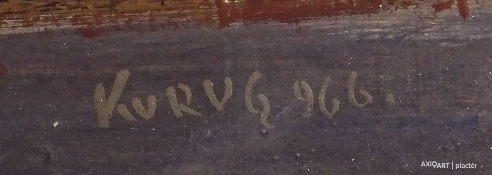 [1T501/059] Olaj farost festmény ezüst színű keretben. Akasztási lehetőséggel rendelkezik. Jelzés jobbra lent: KURUCZ 966 Magasság: 70 cm Szélesség: 80 cm Súly: 2.985 kg Kurucz D. István festő Születési hely: Hódmezővásárhely Születési dátum: 1914 Honlap: Kiállítások az adatbázisban:  Az Alföld festője – Kurucz D. István kiállítása Mesterei: Rudnay Gyula, Benkhard Ágoston, Szőnyi István, Nagy Sándor. 1933: Szőnyi István magániskolájának növendéke; 1934-1940: Magyar Képzőművészeti Főiskola, mesterei: Rudnay Gyula, Benkhard Ágoston, Szőnyi István, Nagy Sándor. 1950: Munkácsy-díj; 1960: a VII. Vásárhelyi Őszi Tárlat Tornyai-plakettje; 1941-1942, 1961, 1983: római ösztöndíj; 1964: Szakszervezetek Országos Tanácsa-díj: 1971: érdemes művész; 1974: a Munka Érdemrend arany fokozata; 1977: Káplár Miklós-díj és emlékplakett; 1978: kiváló művész; 1984: Szocialista Magyarországért érdemrend; 1985: Kossuth-díj. 1940-ben Hódmezővásárhelyen telepedett le. 1943-1947 között bekapcsolódott szülővárosa művészeti és közéletébe, a Vásárhely Népe c. lap munkatársa, 1948-ban Budapestre költözött, a Kossuth Akadémia képzőművész körének vezetője volt. 1949-1959 között Szőnyi István tanársegédjeként freskótechnikát tanított a főiskolán. 1951-1952 között megszervezte a Honvédségi Képzőművészeti Stúdiót, majd kinevezték a Honvéd Képzőművészeti Iskola igazgatójának. 1953-ban vásárhelyi házában és műtermében megnyílt a Képzőművészeti Alap 8. sz. művésztelepe. 1962-ben kiállított a XXXI. Velencei Biennálén. 1963-tól Budapesten dolgozott. Tanulmányúton járt több kelet- és nyugat-európai országban, valamint Japánban, Mongóliában és Algériában. A vásárhelyi iskola reprezentáns egyéniségeként jelentős szerepe volt a Vásárhelyi Őszi Tárlatok elindításában. Megszervezte és vezette a Mednyánszky Társaságot, s haláláig a Hajdúsági Nemzetközi Művésztelep, valamint a Hortobágyi Alkotótábor elnöke volt. Képi világát és etikai alapállását tekintve a magyar piktúra fejlődésében különös szerepet játszó alföldi festészet folytatója, ám ezt a Tornyai és Koszta kezdeményezte népi realista irányzatot a társadalmi-gazdasági fejlődés aktuális fejleményeihez igazítva, egyéni felfogásban művelte. Szemlélődő habitusa jó fogódzóra lelt a temperafestés újrafelfedezésében, amelynek könnyed, levegős színharmóniái nála - az elődöktől eltérően - határozott rajzossággal és a tónusok árnyaltságával ötvöződtek. Első korszakában, a 40-es években még szorosan tapad a tradíciókhoz, amit az indulása mögé hátteret rajzoló valóság, ifjúságának szociális- és természetélményei magyaráznak. Korai művei (Disznóvásár, 1939; Kapu előtt, 1941; Tyúketetés, 1943) voltaképpen képi eszközökkel megoldott szociofotók, melyeket a közlés expresszív ereje, a visszafogott indulat és az ábrázoltakkal való együttérzés szemérmes lírája tesz hitelessé. A II. világháborút követő idők dinamikus atmoszférája jelentős változásokkal járt festészetében, ami tárgyköre kibővülése mellett kompozíciós módszereinek leegyszerűsödésében érhető tetten. Olykor a fogalmi érzékelésig eljutó jellemzése régi témáit is új tartalmakkal telíti: a paraszti életforma józan realitásai már nem a társadalmi mozdulatlanság, hanem a céltudatosan és hasznosan élt emberi élet, az erkölcsi értékek szimbólumaiként jelennek meg képein (Halászok, 1945, Földosztás, 1946). Különösen kifejezőek ebből a szempontból alakos ábrázolásai, melyeken az ikonszerű tömörséggel megfogalmazott figurák a földdel összenőtt ember sorsának természetes ethoszát alakítják képi emócióvá (Parasztasszony, Csikós, 1961). Más műveiben a mezei munka civilizálódását nyomozva a táj új típusú, "társadalmasított" ábrázolását, s vele a 60-as évek kollektivizálódott Alföld-képét teremti meg (Cséplés, 1958; Aratás, 1960). Az alföld problémakörhöz kapcsolódnak a 60-as években megszaporodó tájábrázolásai is, amelyek fő témája a mély horizontú, legtöbbször ember nélküli alföldi táj mindent magába olvasztó végtelensége (Fehér tanyák, Tél, 1963). A táji inspiráció forrása a 70-es évek közepétől már nem a távlati élmény, hanem a táj anyagi és szellemi mivoltát meghatározó természeti közeg, amelynek megjelenítésében - merészen átlépve a konvenciókon - a nonfiguratív festészet eszköztárát is felhasználja. Pályája utolsó harmadában festett Hortobágy-ábrázolásai immár a természet mélyebb struktúráit megismerő és átélő ember újszerű látomásai. Bár technikai felkészültsége és kompozíciós készsége szinte predesztinálták murális feladatok megoldására, alig néhány műve került megvalósításra. Több pannó- és freskóterve, így a Mohácsi csata és a Hajdúság története vázlatstádiumban maradt, vagy csak részben került kivitelezésre. Elméleti kérdések is foglalkoztatták, több cikket, tanulmányt írt a rajztanítás, a művészképzés, a műkereskedelem és a művészetpolitika kérdéseiről. Egyéni kiállítások 1960 • Műcsarnok, Budapest [Kamotsay Istvánnal] 1965, 1968 • Milánó 1970 • Csók Galéria, Budapest 1974 • Vaszary Terem, Kaposvár 1976 • Józsefvárosi Galéria, Budapest 1987 • Csók Galéria, Budapest • Művészetek Háza, Szekszárd • Hollósy Galéria, Budapest 1989 • Vármúzeum, Simontornya • Városi Kiállítóterem, Zalaegerszeg. Válogatott csoportos kiállítások Vásárhelyi Őszi Tárlatokon, a Hatvani Tájkép és Portrébiennálékon, a Szegedi Nyári Tárlatokon stb. Képei bemutatásra kerültek a vásárhelyi iskola jubileumi rendezvénye