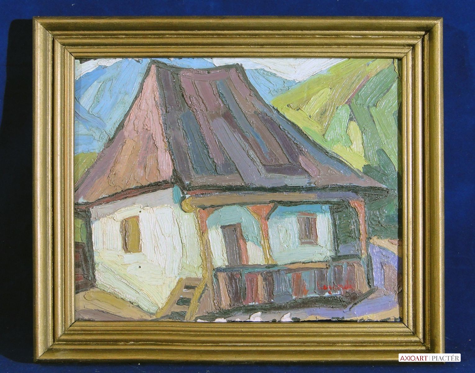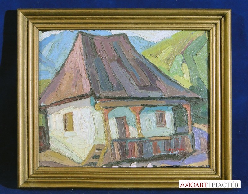 [1K101/079] Olaj karton festmény hibátlan aranyozott Blondel keretben. Azonnal falra akasztható állapotban van. Datált jelzés jobbra lent: HORVÁTH BÉLA 1933 Magasság: 60 cm Szélesség: 76 cm Súly: 2.83 kg Horváth Béla festő, szobrász Pinkafő, 1888-03-25  Elhalálozott: Pompano Beach [Florida, USA], 1973. január 6. 1904-07: Magyar Iparművészeti Főiskola, mesterei: Lórántfi Antal és Mátray Béla. Ösztöndíjjal Münchenben Balthasar Schmidtnél majd Párizsban Théophile Sternnél tanult. Tanulmányutat tett Olaszországba, Belgiumba és Hollandiába is. 1945-től Ausztriában élt, majd 1949-ben az Egyesült Államokban telepedett le. A Daytoni Egyetemen 1950-52 között professzor. Elnyerte az alábbi megtisztelő tagságokat: Fellowship International Institute of Arts and Letters, Svájc, 1961; Member of World Federation of Hungarian Artists; Centro Studi e Scambi Internazionali, Róma, 1969; Arany Érem, Accademia Internazionale Tommaso Campanella di Lettere-Arti-Scienze, Roma, 1972; Accademia Internazionali Leonardo da Vinci di Scienze-Lettere-Arti, Róma, 1974. Nyugdíjba vonulása után festészeti, szobrászati, valamint iparművészeti alkotómunkássága mellett tanfolyamokat vezetett. Eredetileg szobrásznak készült, de alkotómunkásságának súlypontja végül a tájképfestészetre került. A hegyvidékfestés specialistája, emellett számos városi látképet is készített. Amerikában festett egyházi megrendelésre is, valamint formázott a columbusi City Hall részére Kossuth Lajost ábrázoló bronz domborművet. Hosszú élete során számos plakett, szobor és emléktábla került ki keze alól. Művészete természetelvű. Derűs tájképeivel, légies délvidéki városképeivel gyakran találkozhatunk budapesti aukciókon. A Daytoni Egyetem művésznövendékeinek ~ról elnevezett zárókiállításán – Annual Horváth Memorial Student Art Show – a zsűri által kiválasztott legjobb végzős művészeti hallgatónak évről évre odaítélik az özvegye által alapított ~-díjat. Irodalom  Lege Artis Medicinae, 1992/2. Egyéni kiállítások Egyéni kiállítások 1948 • Badgastein und Umgebung in 80 Bildern, Kursaal, Badgastein (A) 1951 • South Gallery, Miami Beach Art Center, Miami, Florida 1953 • Loretto Guild, Dayton, Ohio 1966 • The Beauty of America, University of Dayton, Dayton, Ohio • Trailsend Club, Dayton, Ohio 1976 • Dayton’s Memorial Hall, Dayton, Ohio 1978 • Springfield Art Association, Springfield, Ohio. Művek közgyűjteményekben Művek közgyűjteményekben   Forrás: artportal.hu