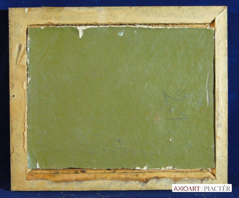 [0C134/094] Olaj karton festmény, jelezve jobbra lent LEGÉNDI Azonnal falra akasztható, szép állapotban van, régi korabeli aranyozott keretben. Magasság: 21 cm Szélesség: 27 cm Súly: 0.432 kg Legéndi József festő Születési hely: Budapest Születési dátum: 1927 Honlap: Kiállítások az adatbázisban: Mesterei: autodidakta. 1946-tól műszerészsegéd. Rajzolni, festeni önképzéssel, 1948-tól sorkatonaként honvédségi szabadiskolában tanult. 1952-től a Honvéd Képzőművész Stúdió tagjaként dolgozott hosszú ideig. Katonai-honvédelmi témájú képei, melyek a kor politikai céljait illusztratív eszközökkel közvetlenül szolgálni igyekeztek, festői eszközökben pedig szűkölködnek, a máig szocreálként megjelölt festészet jellegzetes darabjai az 50-es évekből. Tematikája később általánosabb jellegűvé, előadásmódja stabilizáltabbá vált. 1949-ben a VIT pályázatán II. díjat kapott. Egyéni kiállítások 1961 • Csepeli Munkásotthon, Budapest. Válogatott csoportos kiállítások 1951 • Magyar katona a szabadságért, Fővárosi Képtár, Budapest 1953 • 4. Magyar Képzőművészeti kiállítás, Műcsarnok, Budapest 1957 • Magyarországi ellenforradalom, Műcsarnok, Budapest 1959 • Képzőművészeti Biennálé, Moszkva. Heitler László
