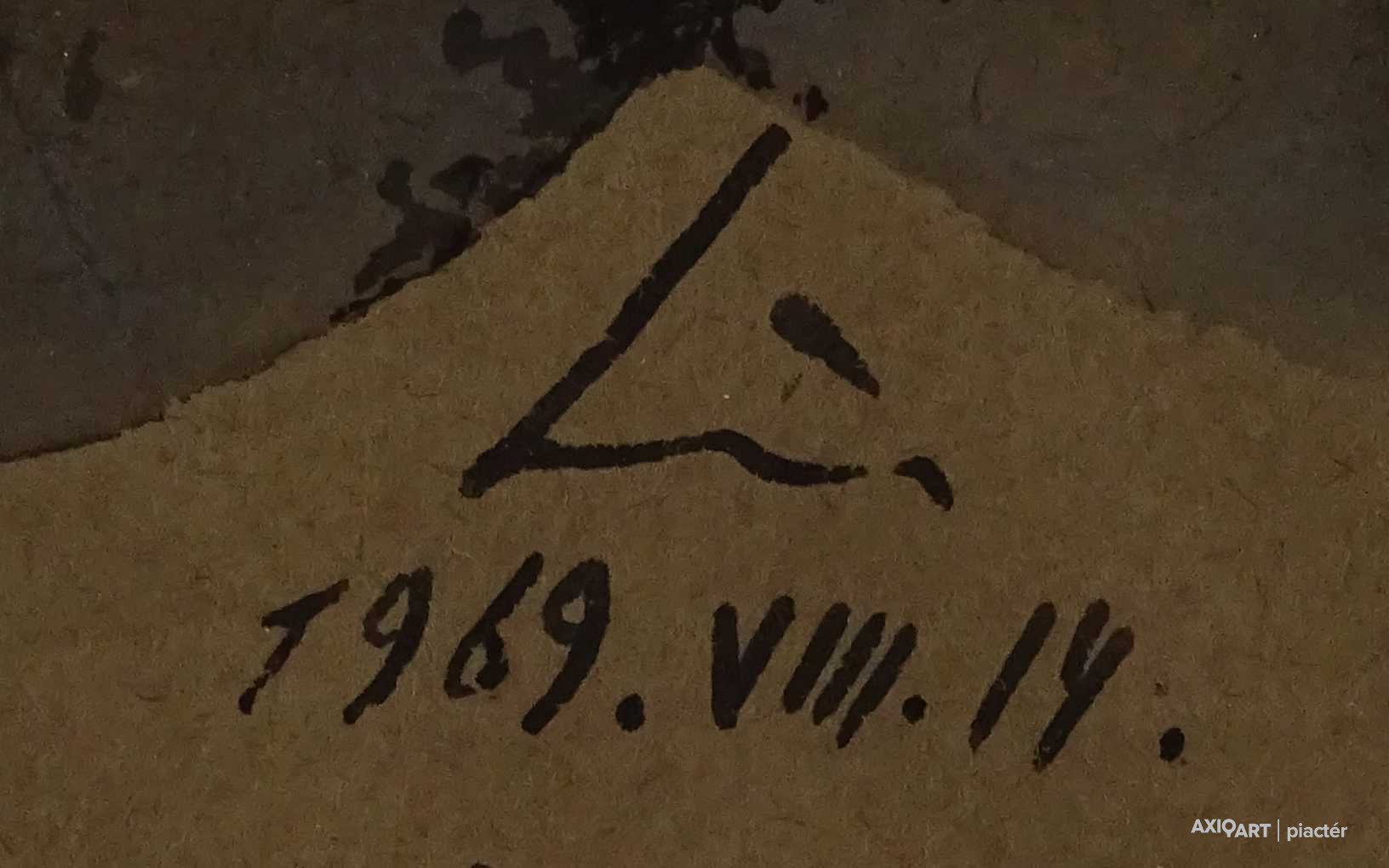 [1X538/Z024] Papír akvarell festmény üveglap mögött, paszpartuzva, vékony ezüst színű keretben. Balra lent datált jelzés: LI (L.I.) 1969.VIII.14. Magasság: 44.5 cm Szélesség: 52.5 cm Súly: 1.585 kg LEHEL ISTVÁN MAGYARKANIZSA, 1917 - 1973, SZEGED Festő, grafikus. A bajai festőiskolában tanult. Mestere: Rudnay Gyula. Később művészettörténeti tanulmányokat folytatott. A kolozsvári egyetemen Felvinczi Takács Zoltán tanársegéde volt 1940-1942 között. Grafikáit több folyóirat közölte. Könyvillusztrátori munkája is jelentős. 1962-től kisebb önálló kiállításokon mutatkozott be.  Forrás: kieselbach.hu