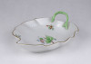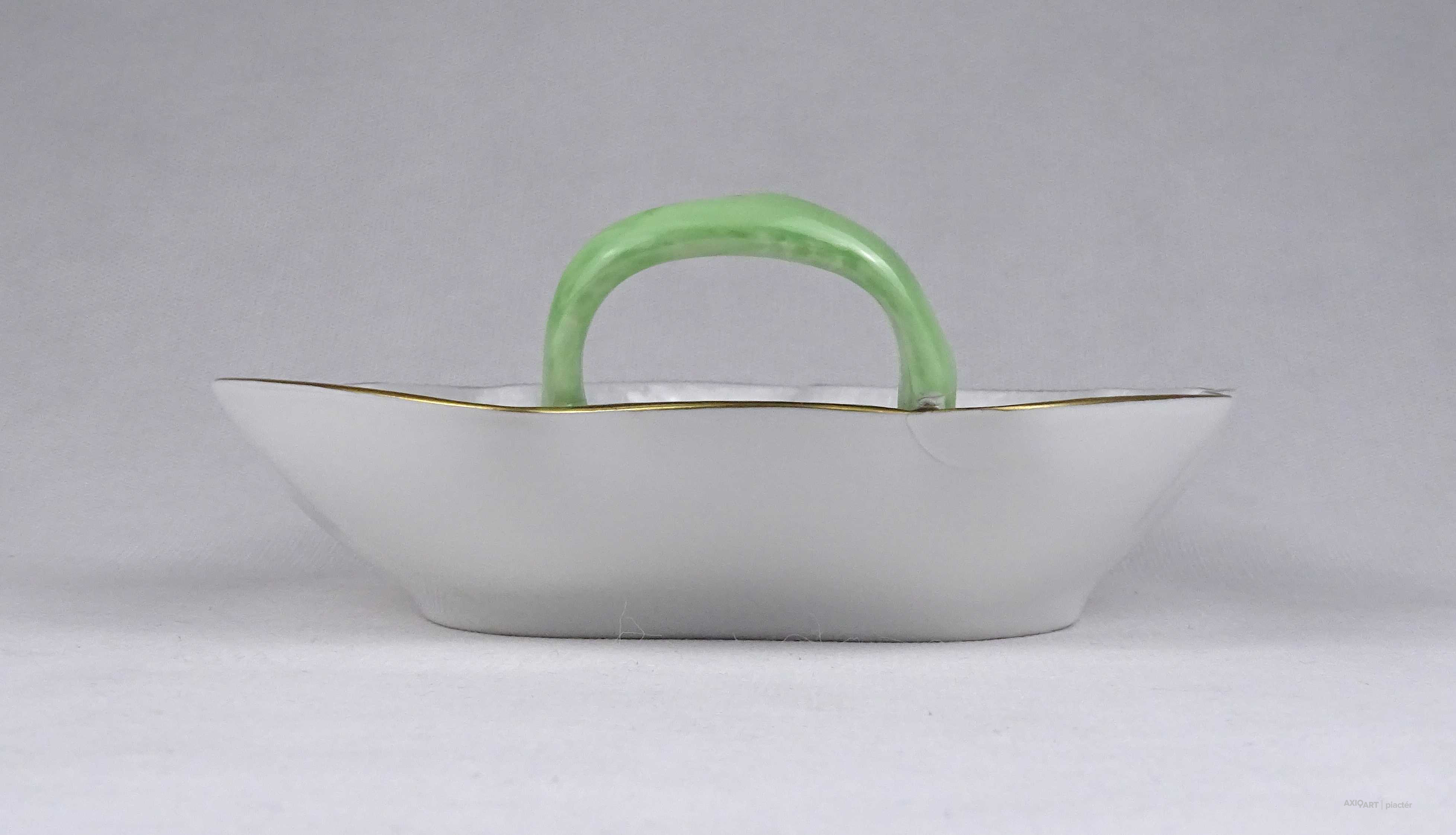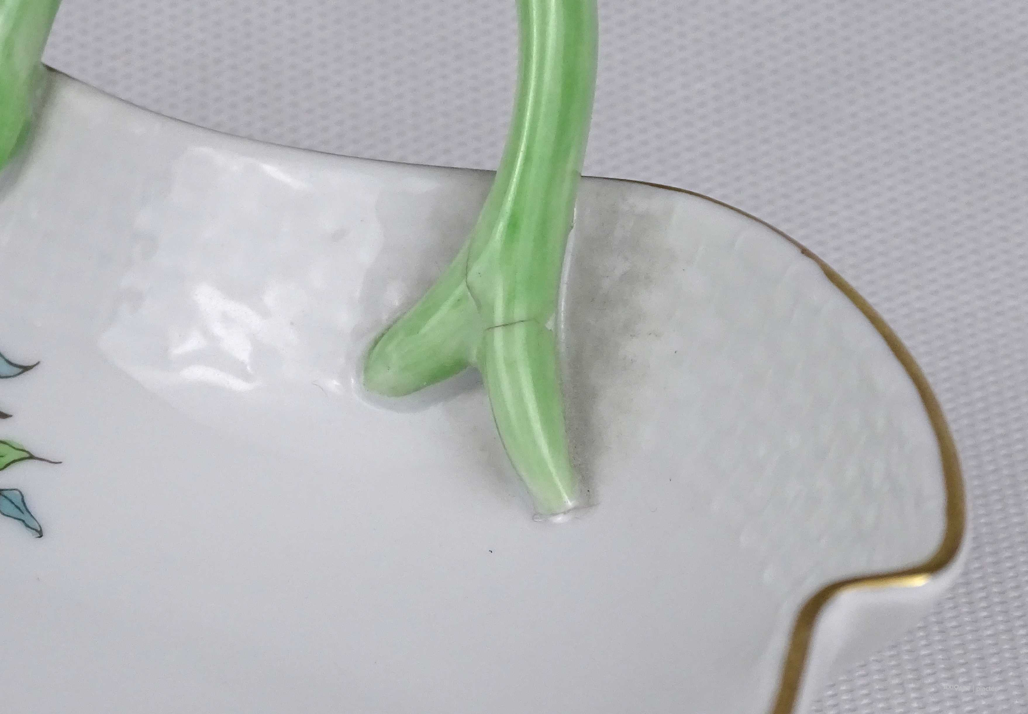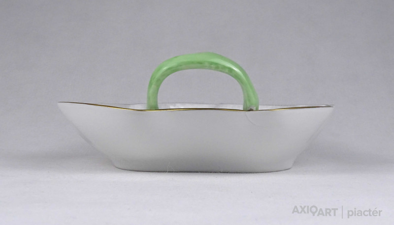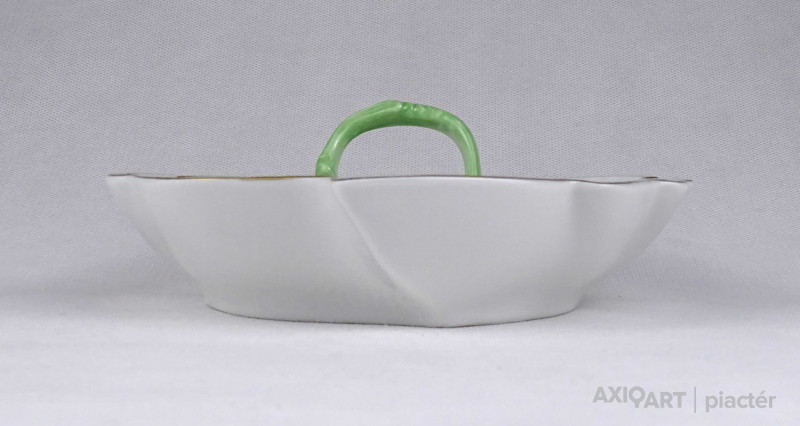 Levél alakú Hecsedli mintás Herendi aranyozott porcelán asztalközép kínáló tál 19.5 cm
