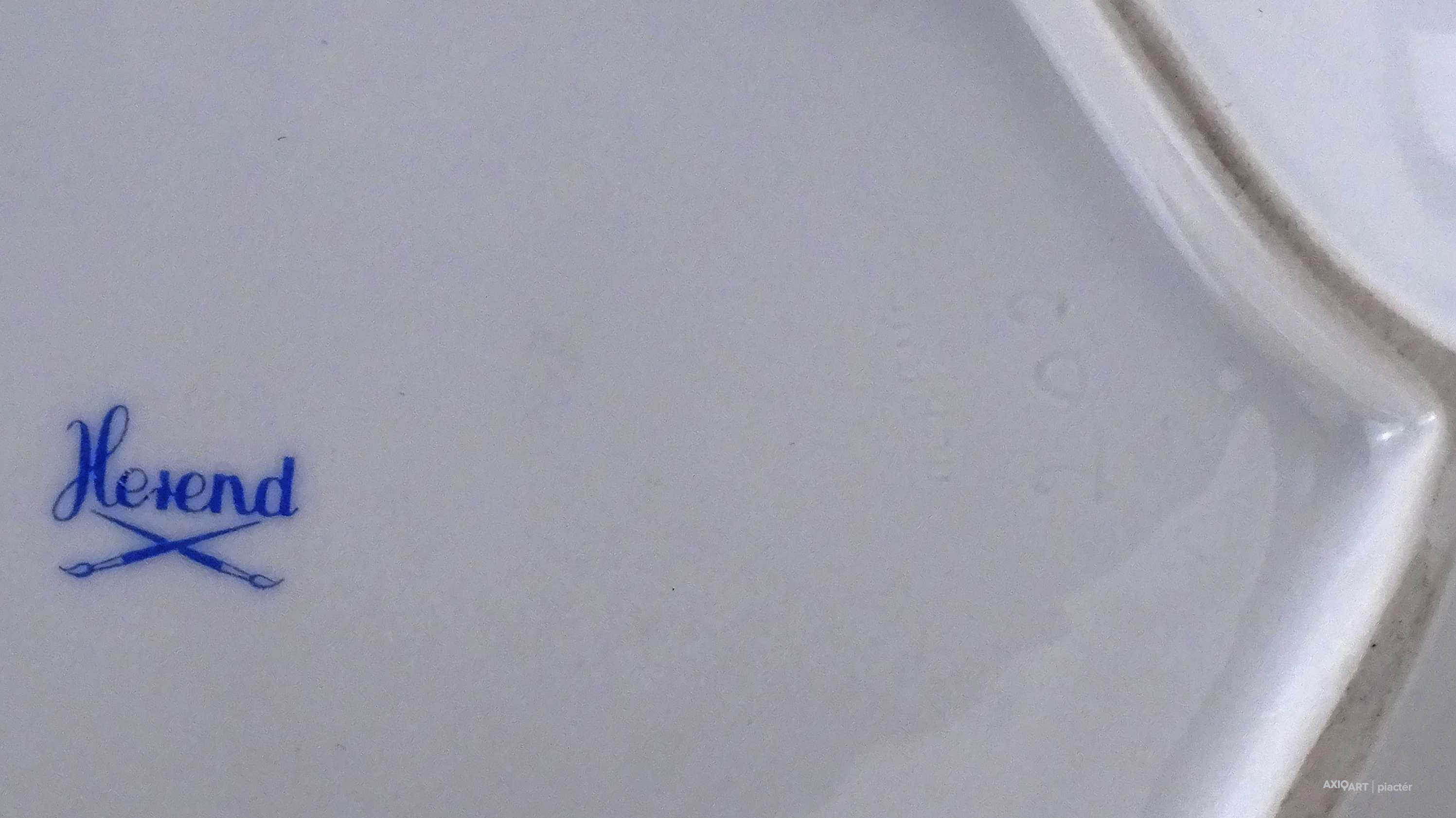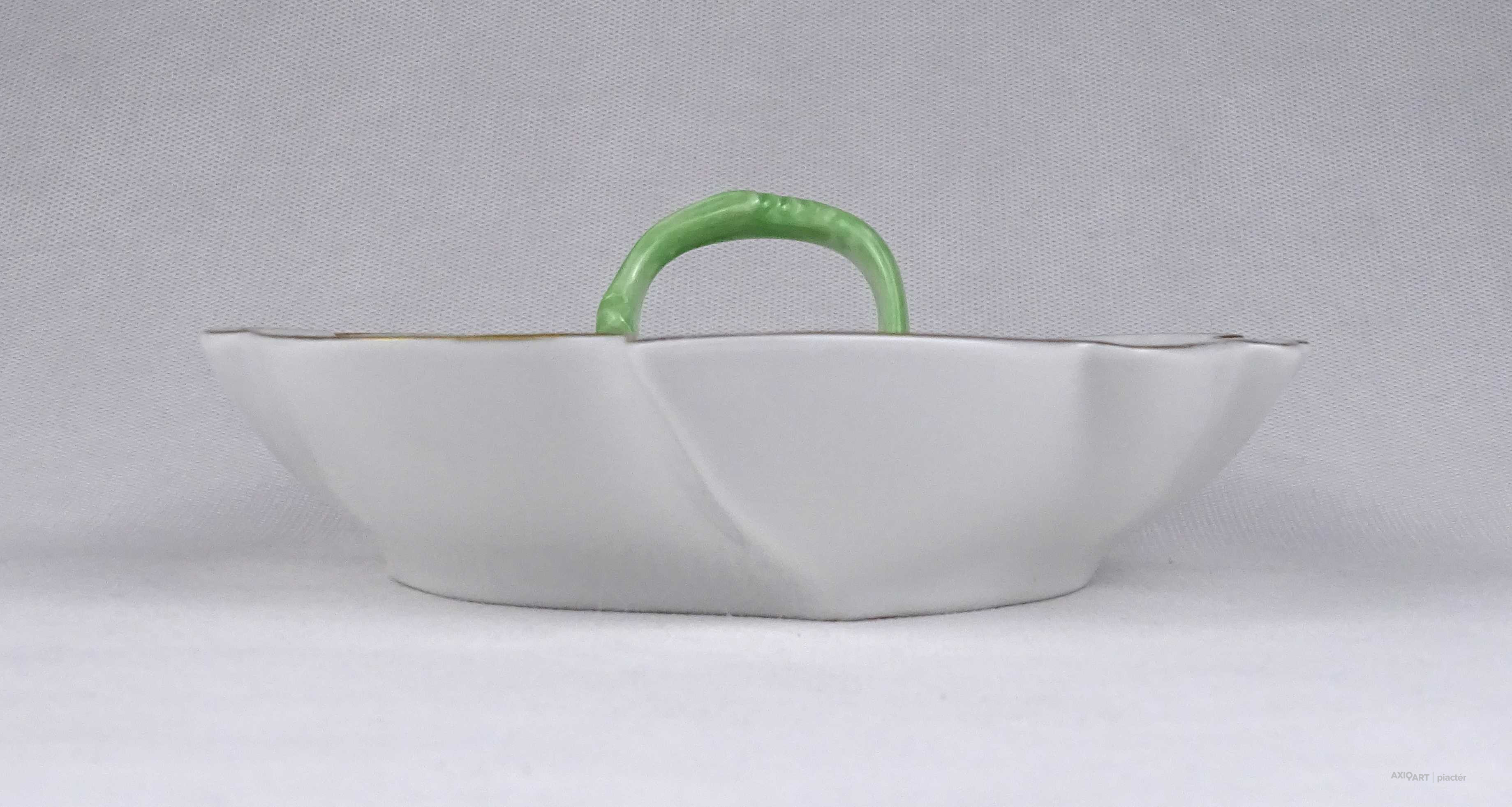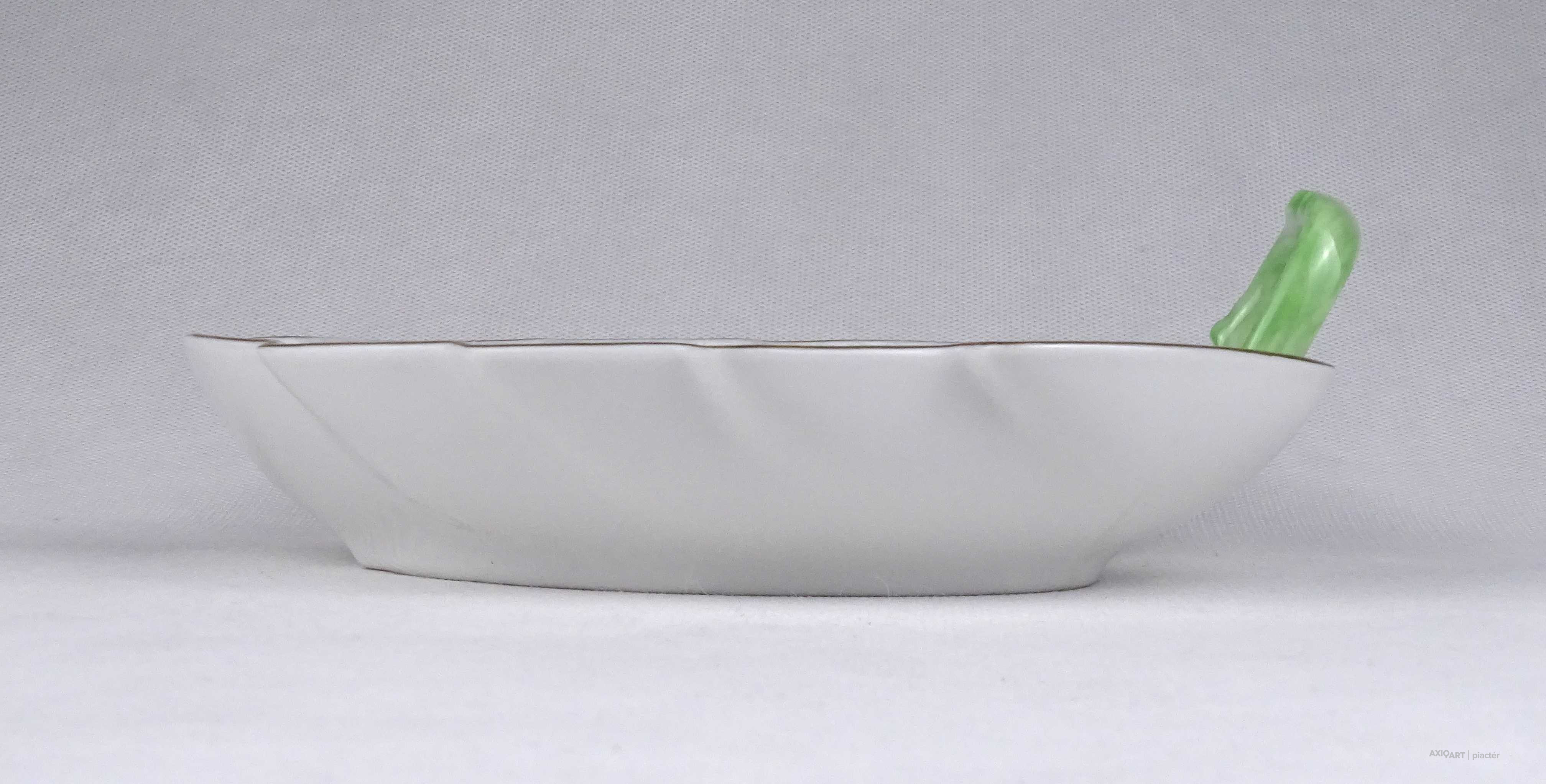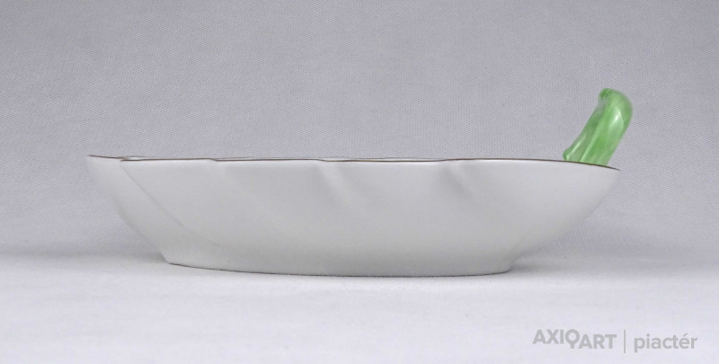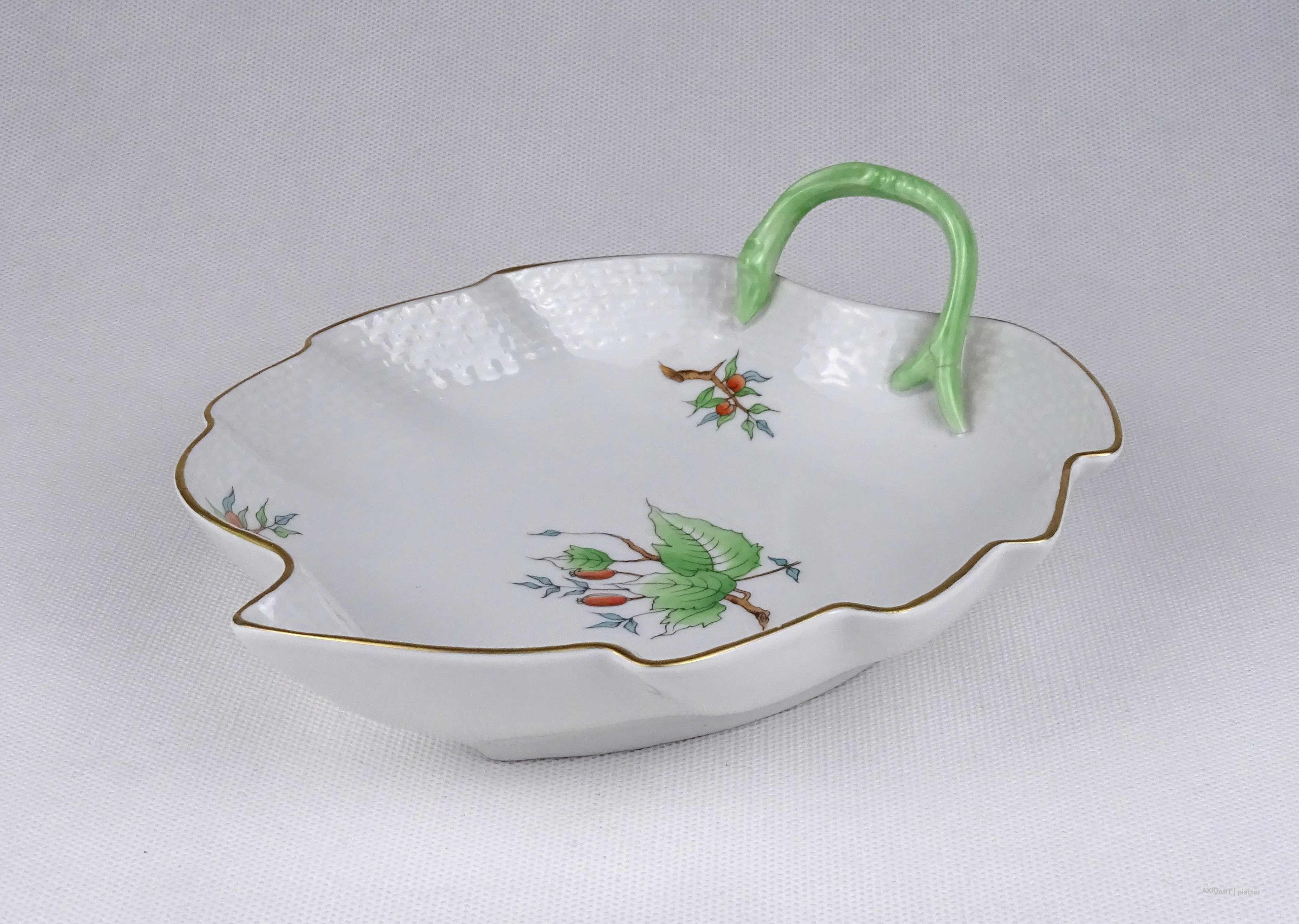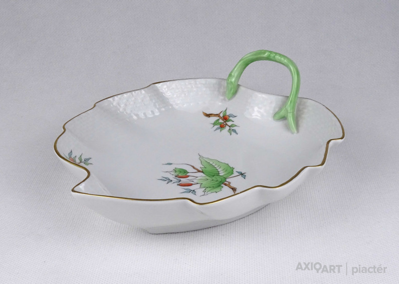 Hibátlan állapotú, kézzel festett aranyozott, hecsedli, csipkebogyó mintás, nagy levél alakú Herendi porcelán asztalközép kínáló tál.
