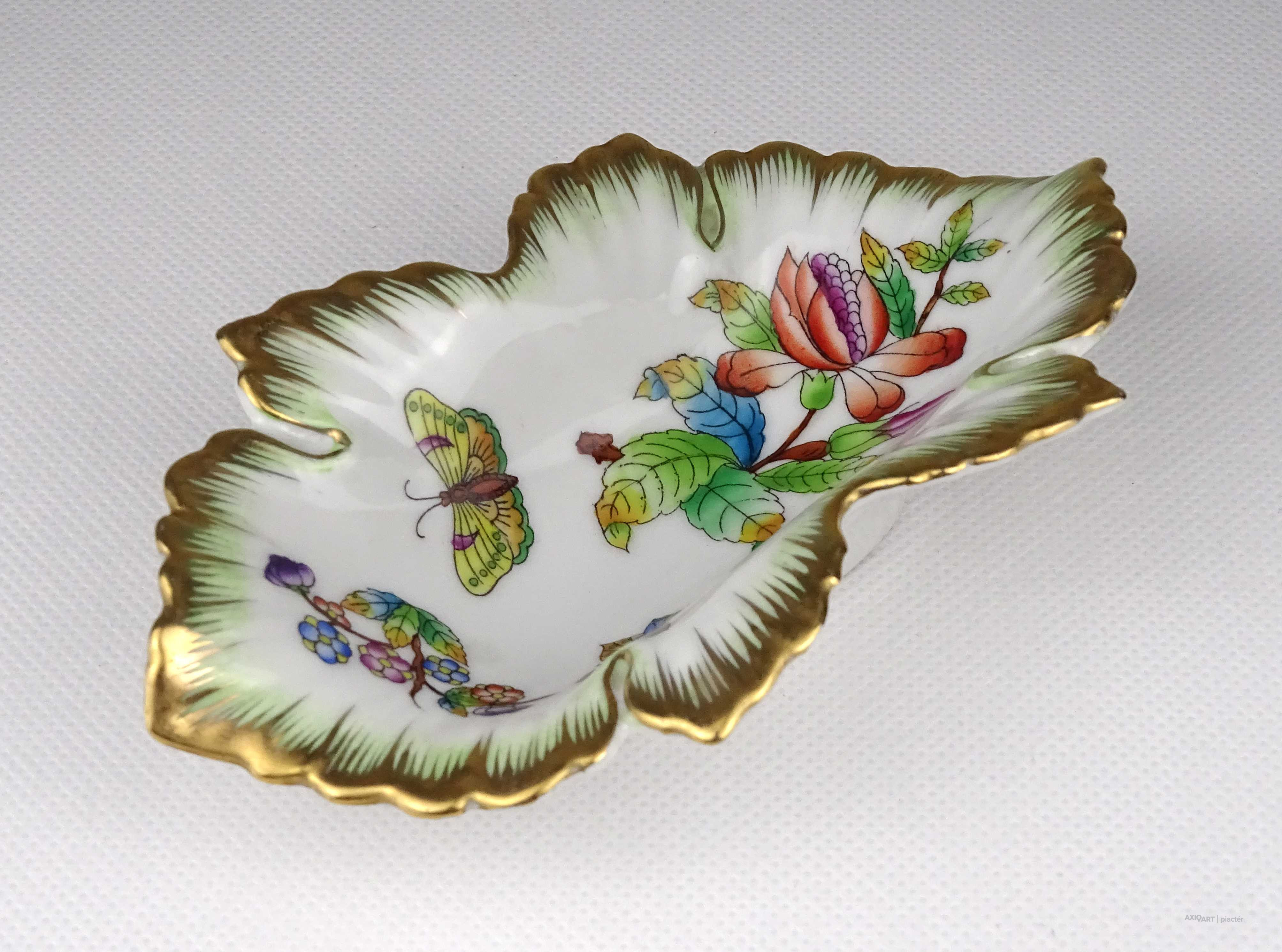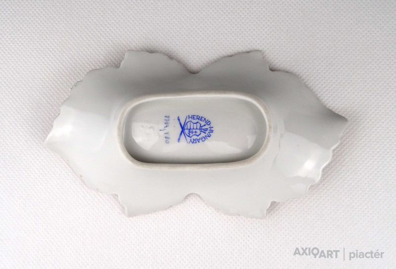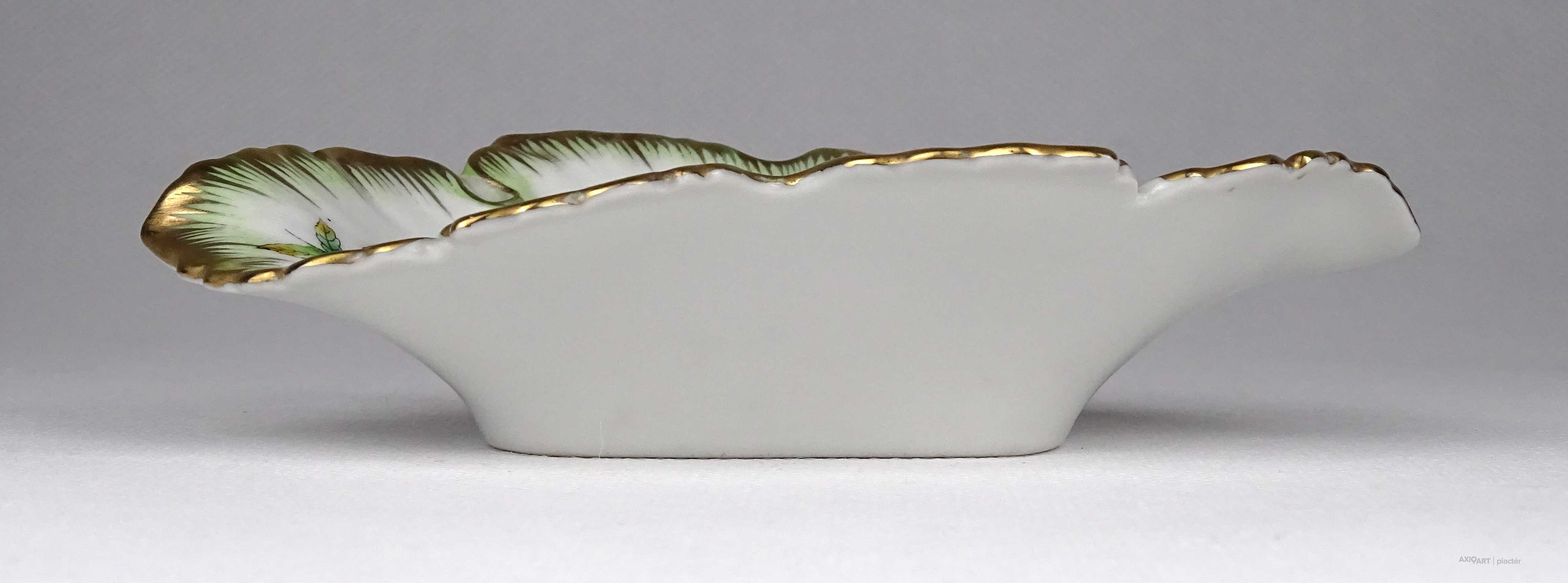 Hibátlan állapotú, Viktória mintás, levél alakú Herendi porcelán hamutál, tálka.