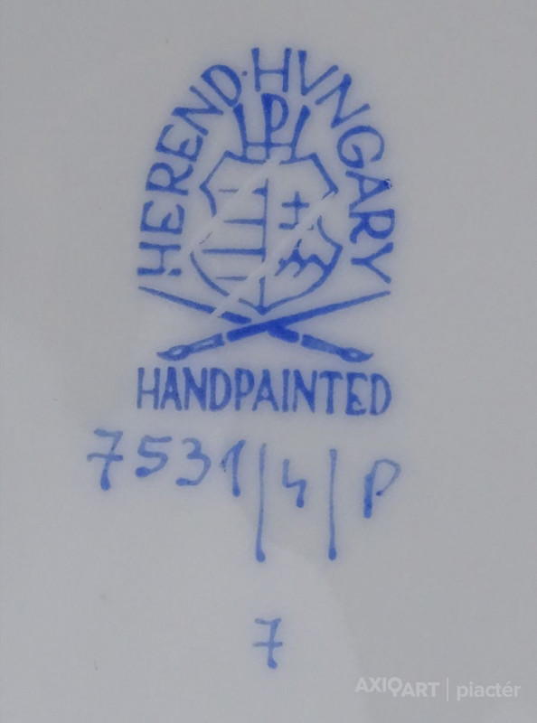Lila indiai kosaras madaras Herendi porcelán asztalközép kínáló tál