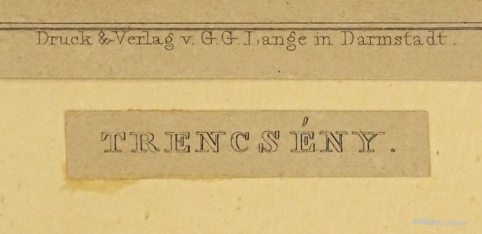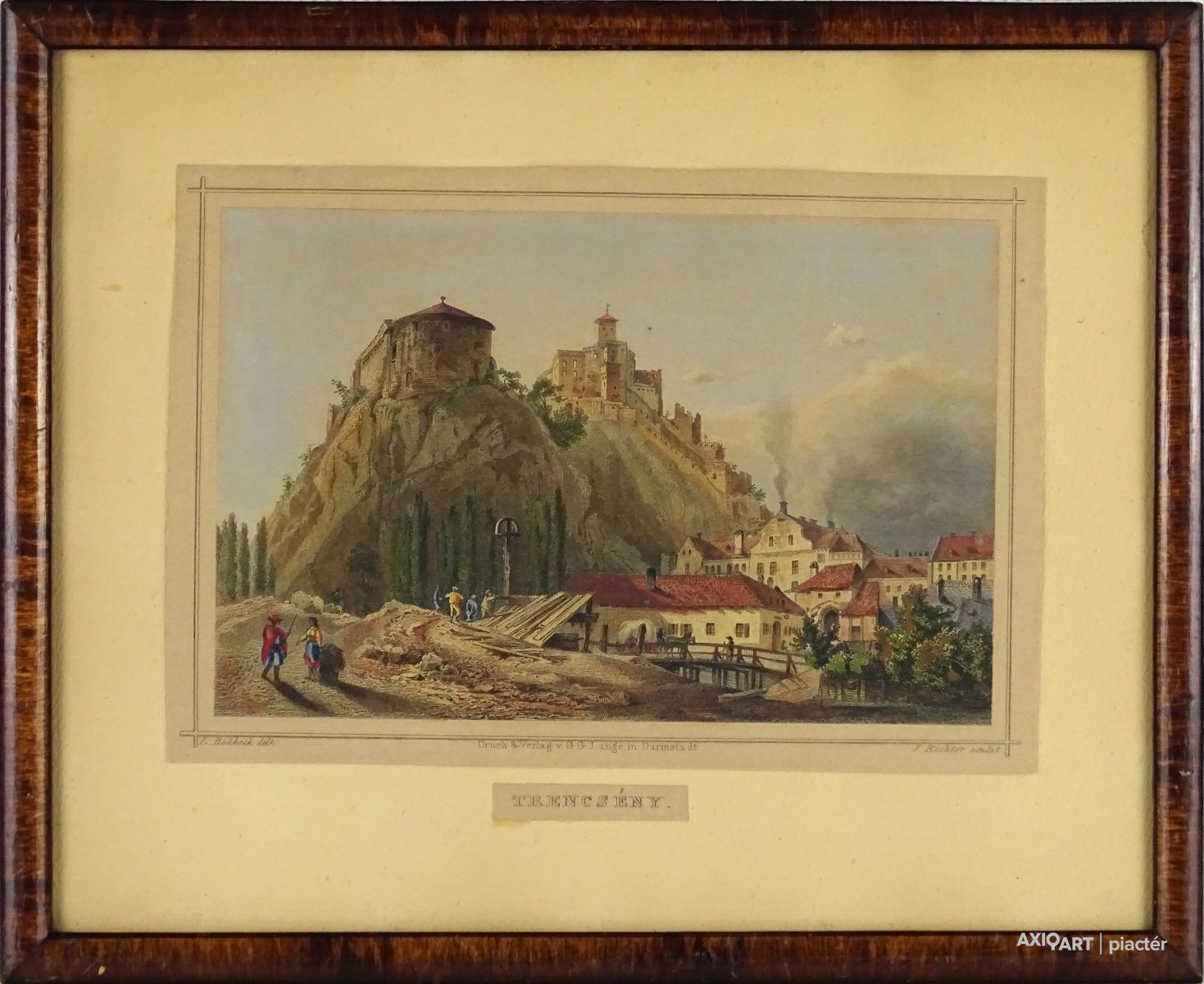 [1P030/129] Papír acélmetszet üveglap mögött, régi keretben, akasztási lehetőséggel rendelkezik. Feliratok: L. ROCHBOK DELT. DRUCK & VERLAG V.G.G. LANGE IN DARMSTADT J. RICHTER SCULPT TRENCSÉNY Hátoldalán korabeli keretezői címke: BOKOR LÁSZLÓ MŰARANYOZÓ ÉS KÉPKERETKÉSZÍTŐ BPEST VI. ARADI U. 31. Magasság: 19.5 cm Szélesség: 24 cm Súly: 0.245 kg