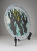 Szép állapotú, jelzett, ártéri fa díszítésű samott fali dísztál, dísztányér.