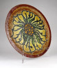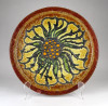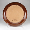 Szép állapotú, jelzett, virág díszítésű samott fali dísztál, dísztányér.