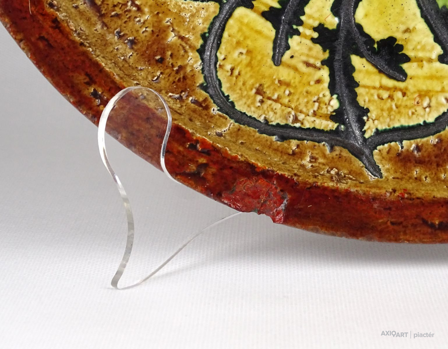 [1B999/Z064] 25% ÁRENGEDMÉNY MINDEN TERMÉKÜNKRE Dec. 13-ig Hibátlan állapotú jelzett iparművészeti mázas kerámia falitányér, fali dísz tál. Hátoldalán falra akasztási lehetőséggel. Jelzés: VIB Szélesség: 30 cm Súly: 0.855 kg Várdeák Ildikó keramikus Születési hely: Abony Születési dátum: 1929 Kiállítások az adatbázisban: Mesterei: Gádor István, Borsos Miklós. 1953-ban diplomázott a Magyar Iparművészeti Főiskolán Gádor István és Borsos Miklós növendékeként. 1971-ben és 1972-ben részt vett a Siklósi Kerámia Szimpóziumon. 1979: Faenza, aranyérem [Bődy Oszkárral]; 1980: Patikaedény-kiállítás, aranyérem, Gualdo Tadino. Kezdetben porcelán- és kerámiaedények tervezésével, kivitelezésével foglalkozott, majd kerti plasztikákat készített samottos agyagból. Jelenleg cserépkályhát, kandallót tervez és kivitelez, valamint régi épületkerámiák restaurálásával foglalkozik. Egyéni kiállítások 1971 • Népház, Budapest-Óbuda 1980 • Faipari Szakiskola, Budapest 1992 • Angelika Cukrászda, Budapest. Válogatott csoportos kiállítások 1955 • Fiatal Iparművészek Kiállítása, Ernst Múzeum, Budapest 1955, 1959, 1965 • 2., 4., 5. Országos Iparművészeti kiállítás, Műcsarnok, Budapest 1958 • Magyar Iparművészek Kiállítása, Világkiállítás, Brüsszel 1959 • Magyar Képzőművésznők II. kiállítása, Műcsarnok, Budapest 1960 • Képzőművésznők nemzetközi kiállítása, Műcsarnok, Budapest 1963 • Modern magyar kerámia, Royal Festival Hall, London 1966 • Gádor István és tanítványai kiállítása, Ernst Múzeum, Budapest 1967 • Kerámia kiállítás, Vármúzeum, Siklós 1968, 1972, 1975, 1978, 1980 • I., III-VI. Országos Kerámia Biennálé, Pécs 1968, 1972, 1977, 1979 • Nemzetközi Kerámia Kiállítás, Faenza 1971, 1972 • Kerámia Szimpozion, Siklós 1972 • Edénykultúra, Műcsarnok, Budapest 1974 • Mai Magyar Iparművészet II., Iparművészeti Múzeum, Budapest 1975 • Jubileumi Iparművészeti Kiállítás, Műcsarnok, Budapest 1979 • Nemzetközi Kerámia Kiállítás, Sopot 1980 • Művészek az üzemekben, Magyar Nemzeti Galéria, Budapest 1982 • Magyar Kerámia, Palazzo delle Esposizione, Faenza 1983 • Nemzetközi Kerámia Kiállítás, Perugia - Gualdo Tadino 1995 • XX. századi magyar keramikusok. Válogatás az Iparművészeti Múzeum gyűjteményéből, Iparművészeti Múzeum, Budapest 1998 • In Memoriam Tornyai, Tornyai János Múzeum, Hódmezővásárhely 1998 • Őszi kerámia kiállítás, Palme Ház, Budapest Művek közgyűjteményekben Köztéri művei kör alakú műemlék kályhamásolatok [Bődy Oszkárral] (fehér és zöld, 1991, Pécs, Jeszenszky-ház) külső kerámia ornamentika teljes rekonstrukciója [Bődy Oszkárral] (1993, Budapest, Dohány utcai zsinagóga). artportal.hu