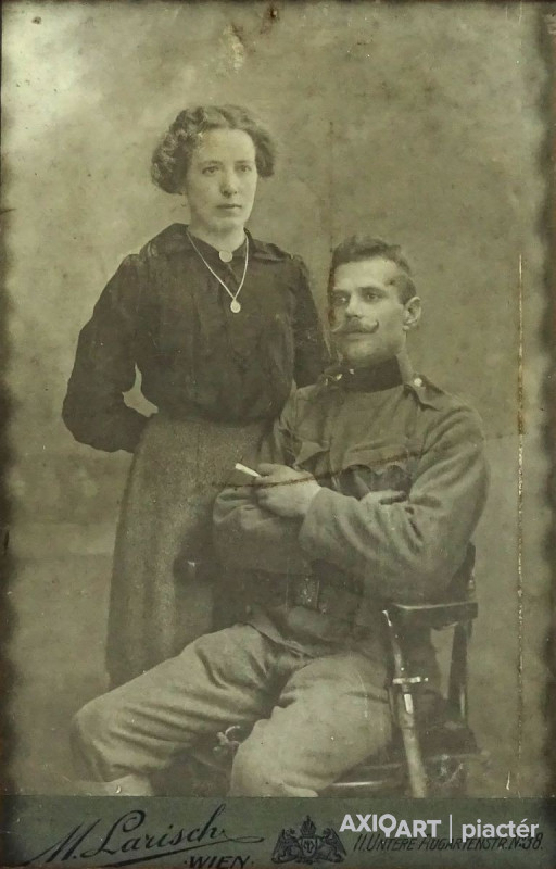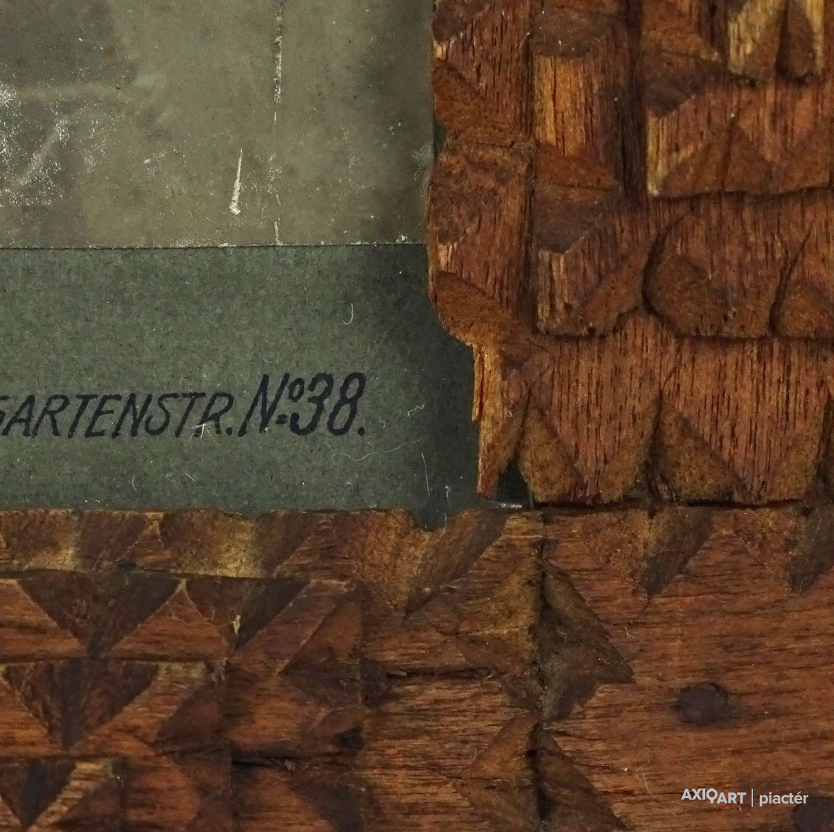M. Larisch Wien : Antik osztrák katona fotográfia faragott hadifogolymunka keretben