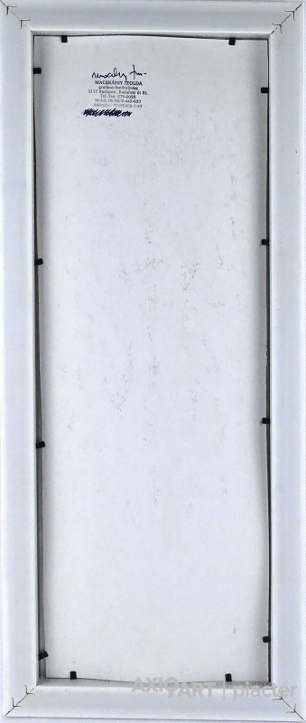 [1Z256/116] Keretezett, jelzett, selyemkollázs kép, üveglap mögött, fehér színű modern keretben. Jelzés jobbra lent: Macskássy Izolda Hátoldalán a művész pecsétje és szignója látható, lásd fotó. Magasság: 55 cm Szélesség: 23 cm Súly: 0.88 kg   A művész munkásságát bemutató publikációk: Magyar festők és grafikusok életrajzi lexikona I-II. Festő. Művészeti tanulmányait a kolozsvári Képzőművészeti Főiskolán, majd ösztöndíjjal Ausztriában végezte. 1971 óta Magyarországon él és dolgozik. Számos erdélyi, magyarországi és külföldi tárlaton szerepelt alkotásaival. Munkásságát több díjjal és kitüntetéssel jutalmazták. Derűs hangvételű, életörömet sugárzó textilgrafikái és festményei elismerést hoztak számára, úgy itthon, mint külföldön. (MFGA) Magyar festők és grafikusok adattára Tanulmányait Erdélyben, majd román ösztöndíjjal Ausztriában és Bulgáriában végezte. 1968-ban diplomázott. 1971 óta magyar állampolgár. Sok hazai és külföldi kiállítás mellett grafikai pályázatokon vett részt, ahol díjakat nyert. Hatvanban és Kiskőrösön rendezett kiállításokon bemutatott munkáit kivétel nélkül selyemre festette. Derűs hangvételű, életörömet sugárzó textilgrafikái nagy sikert arattak. ÖLK Magyar festők és grafikusok életrajzi lexikona I-II. Műgyűjtők és kereskedők kézikönyve Festő. Művészeti tanulmányait a kolozsvári Képzőművészeti Főiskolán, majd ösztöndíjjal Ausztriában végezte. 1971 óta Magyarországon él és dolgozik. Számos erdélyi, magyarországi és külföldi tárlaton szerepelt alkotásaival. Munkásságát több díjjal és kitüntetéssel jutalmazták. Derűs hangvételű, életörömet sugárzó textilgrafikái és festményei elismerést hoztak számára, úgy itthon, mint külföldön. (MFGA) Forrás: www.festmenyek.hu Macskássy Izolda  (Marosvásárhely, 1945 január 10. - )   Magyar festők és grafikusok életrajzi lexikona I-II.: Festő. Művészeti tanulmányait a kolozsvári Képzőművészeti Főiskolán, majd ösztöndíjjal Ausztriában végezte. 1971 óta Magyarországon él és dolgozik. Számos erdélyi, magyarországi és külföldi tárlaton szerepelt alkotásaival. Munkásságát több díjjal és kitüntetéssel jutalmazták. Derűs hangvételű, életörömet sugárzó textilgrafikái és festményei elismerést hoztak számára, úgy itthon, mint külföldön. (MFGA)   Magyar festők és grafikusok adattára: Tanulmányait Erdélyben, majd román ösztöndíjjal Ausztriában és Bulgáriában végezte. 1968-ban diplomázott. 1971 óta magyar állampolgár. Sok hazai és külföldi kiállítás mellett grafikai pályázatokon vett részt, ahol díjakat nyert. Hatvanban és Kiskőrösön rendezett kiállításokon bemutatott munkáit kivétel nélkül selyemre festette. Derűs hangvételű, életörömet sugárzó textilgrafikái nagy sikert arattak. ÖLK Magyar festők és grafikusok életrajzi lexikona I-II. Műgyűjtők és kereskedők kézikönyve: Festő. Művészeti tanulmányait a kolozsvári Képzőművészeti Főiskolán, majd ösztöndíjjal Ausztriában végezte. 1971 óta Magyarországon él és dolgozik. Számos erdélyi, magyarországi és külföldi tárlaton szerepelt alkotásaival. Munkásságát több díjjal és kitüntetéssel jutalmazták. Derűs hangvételű, életörömet sugárzó textilgrafikái és festményei elismerést hoztak számára, úgy itthon, mint külföldön. (MFGA)
