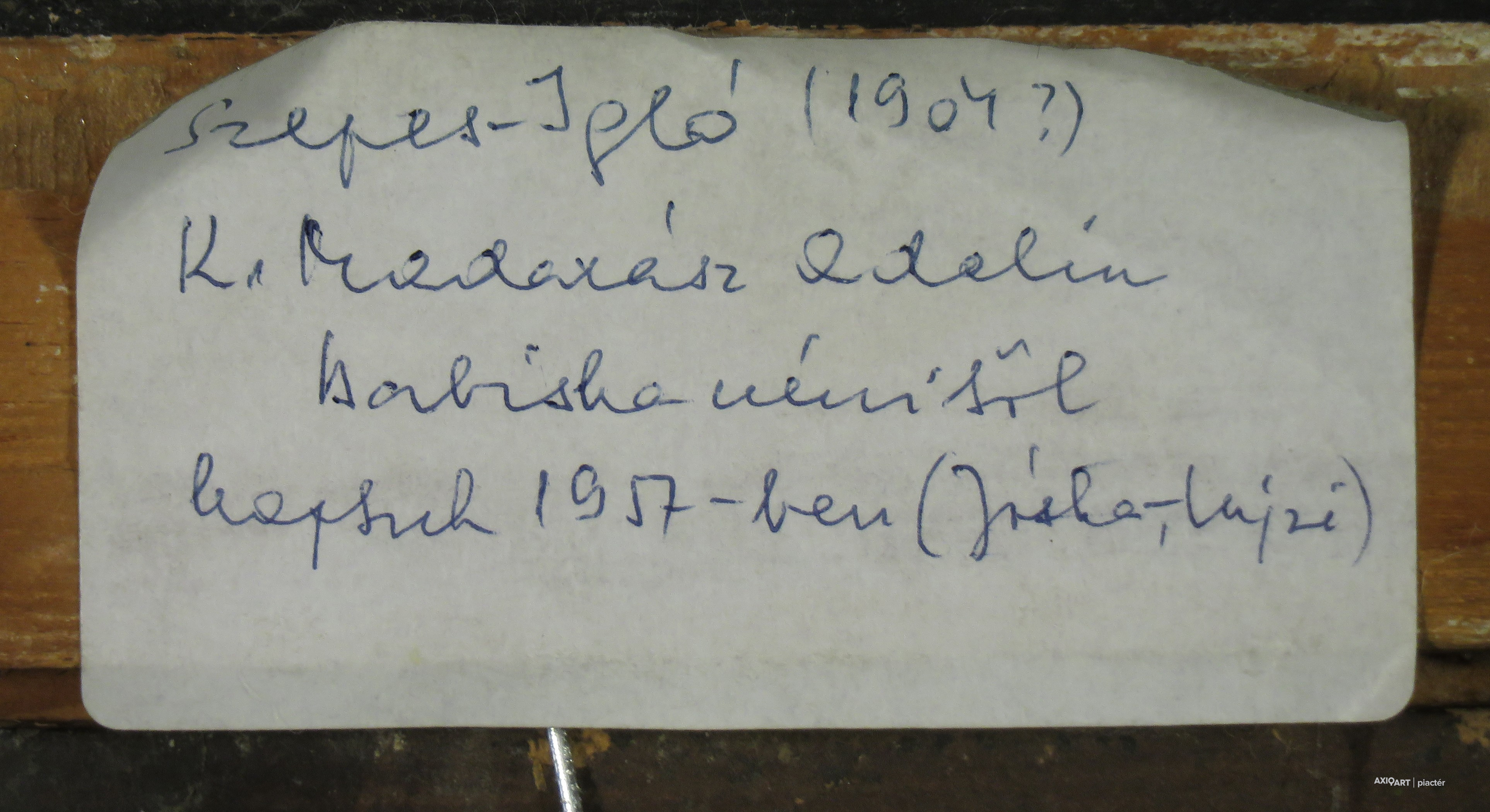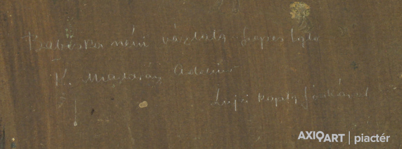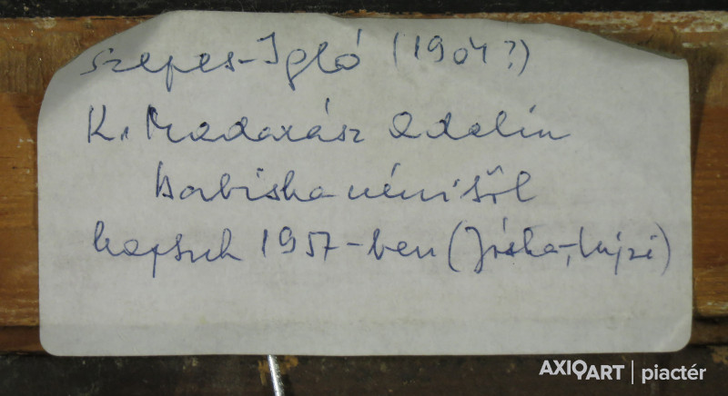[FKB730/Bp305/172] A kép mérete: 20 x 27 cm keret nélkül. Készült: Olaj, Karton A kép Madarász Adeline, Katona Béláné (Pest, 1871, Budapest, 1962) alkotása. Jelezve jobbra lent "K. Madarász Adelin" A festmény jó állapotban van. Keret: Ép Hátoldalon autográf írással: Babiska néni vázlata Szepes-Igló - K. Madarász Adelin - Lujzi kapta Jóskával Magyar festők és grafikusok életrajzi lexikona I-II. Madarász Viktor leánya. A Mintarajziskolában tanult, majd hosszabb ideig Párizsban élt, ahol a Julian Akadémián dolgozott. A Műcsarnokban és a Nemzeti Szalonban gyakran szerepelt táj-, élet- és csendéletképeivel. Művészi hagyatékát a rákospalotai múzeumnak adományozta. "Federoff anarchista" című festményét a Magyar Nemzeti Galéria őrzi. (ML, Éber) Magyar festők és grafikusok életrajzi lexikona I-II. Műgyűjtők és kereskedők kézikönyve Madarász Viktor leánya. A Mintarajziskolában tanult, majd hosszabb ideig Párizsban élt, ahol a Julian Akadémián dolgozott. A Műcsarnokban és a Nemzeti Szalonban gyakran szerepelt táj-, élet- és csendéletképeivel. Művészi hagyatékát a rákospalotai múzeumnak adományozta. "Federoff anarchista" c. olajfestményét a MNG őrzi. (ML, Éber) Magyar festők és grafikusok adattára Madarász Viktor leánya. Fiatal korában részt vett a szocialista nőmozgalomban. A Mintarajziskolában tanult, majd hosszabb ideig Párizsban élt, ahol a Julian Akadémián dolgozott. A Műcsarnokban és a Nemzeti Szalonban gyakran szerepelt táj-, csöndélet- és életképeivel. Művészi hagyatékát a rákospalotai múzeumnak adományozta. - ML Művészeti lexikon I-IV. Festő, Madarász Viktor leánya. Fiatal korában részt vett a szocialista nőmozgalomban. A Mintarajziskolában tanult, majd hosszabb ideig Párizsban élt, ahol a Julian Akadémián dolgozott. A Műcsarnokban és a Nemzeti Szalonban gyakran szerepelt táj-, csendélet- és életképeivel. Művészi hagyatékát a rákospalotai múzeumnak adományozta.