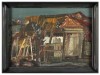 [1Y029/Z018] Olaj farost festmény, üveglap mögött, hibátlan képcsarnokos keretben. Hátoldalán Képcsarnok Vállalat papír címkéje: A művész neve: SCHÉNER MIHÁLY A kép címe: TÁJ Magasság: 66.5 cm Szélesség: 86 cm Súly: 6.54 kg Schéner Mihály festő, grafikus, szobrász, keramikus, bábtervező Medgyesegyháza, 1923-01-9 Elhalálozott: Budapest, 2009. május 11. Honlap: http://www.kormendigaleria.hu/kiadvany.html 1942-1947: Magyar Képzőművészeti Főiskola, tanára: Rudnay Gyula. 1978: Munkácsy-díj; 1984: érdemes művész; 1989: kiváló művész; 1995: Kossuth-díj. 1992-től a Magyar Művészeti Akadémia, 1993-tól a Széchenyi Irodalmi és Művészeti Akadémia tagja. 1956-ig tanított. 1982: Nagyatádi Faszobrász Alkotótelep, 1985: Nemzetközi Acélszobrász Alkotótelep, Dunaújváros. A stílusában felismerhető, mégis sokféle műtárgyat létrehozó ~ gazdag, állandóan alakuló életműve a folyton változó világban helyét kereső, az alkotói szabadságot megvalósító XX. századi képzőművész példázata lehetne. Magát expresszív-szürrealista alkotónak nevezi. Egyaránt dolgozik festékkel, textillel, fával, fémmel. Rajzol, szerkeszt, farag, épít, gyúr, varr és ragaszt, felhasználja a mézesbábok öntőformáit. Festő, rajzoló, textilszobor- és bábkészítő, fazekas, asztalos, esztergályos. Háromlépcsős folyamatban gondolkozik: rajzban tervez, majd fest, szobrot készít, “formába önt”, mindig a végső plasztikai megoldást keresi. Ami állandó és mégis játékosan változékony megjelenésű Schéner művészetében, az a gyermekkori emlékek által meghatározott népi mesterségek iránti tiszteletet kifejező motívumkincs, a tárgyi folklór formakészlete, amely már-már kézjegyként ismétlődik munkáin. Mitologikussá nőtt képzelete új lényeket teremt, pl: a Pigulát, amely disznótestű, emberfejű teremtmény. Schéner festményein a szürrealista motívumokat konstruktív szerkezetbe rendezi, a geometriát és az organikus természeti motívumokat egyaránt beépíti műveibe. A népi, népművészeti formakincsből merített lovas huszárok, betyárok, szegénylegények cifra szűr mentéje, piros csákója, fekete csizmája, az önálló életet élő zsinórdíszek és mézeskalács bábok, a kiskocsik a gyermekkori vásárok, búcsúk színes forgatagába vezet. A primér motívumokat aztán felváltják a vastagon felhordott felületbe karcolt jelek, vonalhálózatok, amelyek a játszó gyermek homokba rajzolt ábráit, a pásztorember fába vésett üzeneteit, az ősember barlang falába rótt mágikus jeleneteit idézik meg. A művész pillanatnyi érdeklődésének megfelelően a színek búvópatakként tűnnek el és jelennek meg ismét. A 60-as években leginkább a formákkal való játék érdekelte, a festmények felülete egyre gazdagodott: a táblaképek felületén applikációk jelentek meg, vagy lemállasztott rétegek hagyták maguk után hiányukat, motívumok nélküli ősformák, archetipikus képzetek bukkantak fel művészetében. A véletlenszerűnek látszó rétegekkel való játék azonban tudatos komponálás eredménye, amely később nyilvánvaló ritmusnak és formai szerkesztettségnek adja át a helyét, mint a Törvénytáblák c. sorozaton. A különböző művészi kifejezési formák egymásra termékenyítő hatással vannak, át- meg áthatják egymást. Textilszobrai, amelyekkel új műfajt teremtett, ugyanazzal az automatikus, expresszív-szürrealista módszerrel készülnek, mint festményei. A hagyományosan a népművészetben alkalmazott anyag, a filc lehetőséget ad a népi formakincs felelevenítésére, amely azonban a művész különös szürrealista átiratában jelenik meg. A szívekkel kivarrt, zsinórdíszes Posztókotlós c. művén mézesbábok lógnak, hátán huszárok lovagolnak. Egész sor textilből készült kéz-plasztikát alkot, amelyeket az ujjakra rávarrt díszekkel öltöztet, személyesít meg. A színes-különös világból aztán ~ újra puritán képi és formai rendbe juttatja el a nézőt, majd nemsokára tépett, gyűrt, vágott, csorgatott, repedezni hagyott szenvedélyesen vonagló képi felületeket hagy hátra. Schéner készített apró gyermekjátékokat, térstruktúra-tereket, mászókákat is. A magyar népi formák mellett szürreális játékaiban gyakran alkalmaz görög mitológiai alakokat, “elkentaurosodott” lovakat, Gorgó-fejeket, sellőket, hárpiákat, Pán-ábrázolásokat. Schéner nemcsak saját művészetéről publikál, hanem művésztársairól is számos írása jelenik meg, elsősorban az Új Auróra c. folyóiratban, amelynek egy ideig főmunkatársa volt. Irodalom kiállítása, Magyar Építőművészet, 1962/4. Húsz év után, Művészet, 1965/4. BOZÓKY M.: ~, Tiszatáj, 1968/5. PERNECZKY G.: Nincs uborkaszezon, Élet és Irodalom, 1969. augusztus 8. BARÁNSZKY-JÓB L.: ~, Művészet, 1969/9. LÁSZLÓ GY.: ~ kaposvári kiállítása, Jelenkor, 1969/4. MAJOR M.: Pásztorok, betyárok, huszárok - kezek, Tükör, 1970. szeptember 15. FRANK J.: Bemutatjuk ~t, Élet és Irodalom, 1972. május 6. ról kiállítása ürügyén, Képzőművészeti Almanach, Budapest, 1972 Sötétkék kokasok, Élet és Irodalom, 1973. szeptember 9. MAJOR M.: ~ játékai, Élet és Irodalom, 1974. július 27. BARTA J.: Egy különös művész, Alföld, 1974/6. VADAS J.: Szárnykészítők, Élet és Irodalom, 1975. október 4. JUHÁSZ F.: A halál ellen játszani, Élet és Irodalom, 1975. május 17. PAP G.: Kincsek és műkincsek, Művészet, 1975/6. P. SZŰCS J.: Az utak kettéválnak, Művészet, 1978/3. Békési művészet, Művészet, 1978/7. SZAMOSI F.: ~ [kismonográfia], Budapest, 1978 VADAS J.: Játék a játékkal, Élet és Irodalom, 1979. augusztus 18. NÉMETH L.: ~ műveiről, Művészet, 1979/4. MIKLÓS P.: Mit akar ez a múzeum?, Művésze