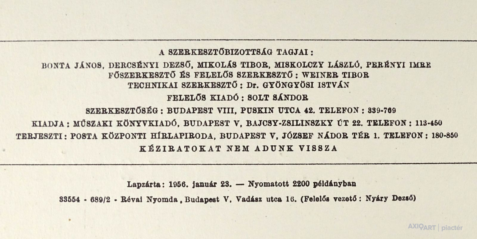 Jó állapotú, 64 oldalas 1956-os kiadású folyóirat. Összesen 2200 példányban jelent meg.