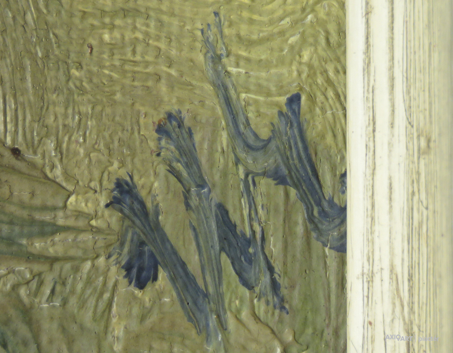 [FK0037/Z018] A kép mérete: 50 x 70 cm keret nélkül. Készült: Olaj, Vászon A kép Paizs László (Szentpéterúr, 1935) alkotása. Jelezve Jobbra lent "P. L." A festmény jó állapotban van. Keret: Ép A festmény hátoldalán a Képcsarnokvállalat címkéje található. Magyar festők és grafikusok életrajzi lexikona I-II. Festő. Tanulmányait a budapesti Iparművészeti Főiskolán végezte 1959-ben. Z. Gács György, Rákosy Zoltán és Szentiványi Lajos növendéke volt. A '60-as évek első felében hagyományosabb felfogású olajképeket festett, mozaikokat, freskókat, utóbb a pop-art körébe tartozó, a francia Arman munkáival rokon műveket alkotott. 1961 óta kiállító művész. Egyéni (Fényes Adolf Terem, Csók Galéria, Műcsarnok, Magyar Nemzeti Galéria, Halászbástya, Bástya Galéria, Vigadó Galéria, Budapest Galéria, Győr, Szombathely, Szeged, Zalaegerszeg, Duisburg, Aix-en-Provence, stb). és vegyes (Ernst Múzeum, Műcsarnok, Óbuda Galéria, Magyar Nemzeti Galéria, Csók Galéria, Vigadó Galéria, Székesfehérvár, Kaposvár, Pécs, Hódmezővásárhely, Firenze, Milano, Padova, Nápoly, Velence, Düsseldorf, Aachen, Genf, stb) tárlatokon vett részt. 1980-ban Munkácsy-díjjal jutalmazták, 1988-ban Érdemes Művész kitüntető elismerésben részesült. Munkáit őrzi a Magyar Nemzeti Galéria, a Fővárosi Képtár, a szombathelyi képtár, a pécsi Janus P. Múzeum, a székesfehérvári István Király Múzeum és a dunaszerdahelyi Kortárs Magyar Galéria. (H.B.: Műv, 1972/4, K.Gy.: Műv. 1977/2, K.G.: Műv. 1978/10, M.L.: Műv, 1983/5, R.G.: Műv, 1987/9, Sz.Gy.: Új Műv. 1995/4, MK) Magyar festők és grafikusok életrajzi lexikona I-II. Műgyűjtők és kereskedők kézikönyve Festő. Tanulmányait a bp.-i Iparművészeti Főiskolán végezte. Mozaikokat ferskókat, utóbb a pop-art körébe tartozó, a francia Arman műveivel rokon műveket alkotott. Mozaikok: a Szegedi Megyei Tanács, a Pécsi Óvoda, a Gödöllői Agrártudományi Egyetem. Freskók: Budapest - Csatárka úti Gyermekotthon. 1971-ben a Fényes Adolf Teremben volt kiállítása, 1983-ban pedig a szegedi Móra Ferenc Múzeumban nagyszabású tárlatokon mutatta be munkáit. 1988-ban érdemes művész kitüntető elismerésben részesült. (MK) Magyar festők és grafikusok adattára Az Iparművészeti Főiskolán végzett 1959-ben. Mozaikokat (Szeged, Megyei Tanács; Pécs, Óvoda; Gödöllő, Agrártudományi Egyetem), freskókat (Budapest, Csatárka úti Gyermekotthon), újabban a pop art körébe tartozó, a francia Arman műveivel rokon műveket alkotott. 1971-ben a Fényes Adolf Teremben nyílt kiállítása. 1983 februárjában a szegedi Móra Ferenc Múzeumban megrendezett nagyszabású tárlaton mutatta be alkotásait. 1988-ban érdemes művész kitüntető elismerésben részesült. - MK Művészeti lexikon I-IV. (Szentpéterur, 1935. dec. 26.- ): festő. Az Iparművészeti Főiskolán 1959-ben végzett Rákosy Zoltán, Z. Gách György és Szentiványi Lajos növendékeként. Épületdiszítő mozaikokat, (Szeged, Megyei Tanács, 1961; Pécs, Óvoda, 1964), műanyagfreskókat (Bp., Csatárka úti Gyermekotthon, 1964) és gobelinterveket készít. Kortárs magyar művészeti lexikon I-III. Festő, szobrász, grafikus. 1959: MIF, mesterei: Z. Gács György, Rákosy Zoltán, Szentiványi Lajos. 1980: Munkácsy-díj; 1988: érdemes művész. Főiskolás éveinek második felében, majd azt követően számos murális munka kivitelezésében vett részt, Fónyi Géza, Konecsni György, Z. Gács György, Rákosi Zoltán és Domanovszky Endre mellett dolgozva. A 60-as évek első felének hagyományosabb fölfogású olajképeket festett. 1964-ben a Velencei B.-n megismerkedett az amerikai pavilonban a pop art Európában akkor még újnak számító törekvésével, és részben ez inspirálta, hogy 1967-ben textil, fém, bőr anyagú "varrottas" képeket küldjön az FKS éves tárlatára; a megnyitó előtt többek között az ő munkáit is eltávolították a falról. A 70-es években pop art-os objekteket (A trónörököspár politikai gyilkosság áldozata lett, 1970, plexiüveg, újság, szarvasbogarak), majd konstruktív, átlátszó plexiüveg plasztikákat készített belső fénytörő határfelületekkel. A 80-as években készültek az anyagában színezett, konstruktív, nagyméretű poliészter szobrai, majd színes poliészter táblaképeket alkotott, mesterségesen roncsolt felületekkel, mintha régészeti leletek vagy atomtámadás utáni festmény-szurrogátumok lennének. Ekkor kezdett organikus plaszikájú bronzszobrokat is mintázni. A 90-es években, a táblaképek és szobrok mellett nagyméretű, egyedi grafikákat készített, formavilágában némileg a roncsolt táblaképekből kiindulva, de szinte kizárólag az emberi alakból elvonatkoztatott torzókat megjelenítve. Ek: 1966: Művészklub, Győr; 1971: Fényes A. T.; 1972: Bercsényi 28-30 G.; 1973: BME B-épület; 1976: Csók G.; 1977: G. Hildebrandt, Duisburg (NSZK); 1979: Bástya G., Halászbástya; Helyőrségi Műv. H., Nagyatád; József A. Műv. Közp., Szeged; Göcsej M., Zalaegerszeg; 1982: Bezzegh G., Küsnacht (CH); 1983: Móra F. M., Szeged; 1987: Műcsarnok (kat.); MNG; 1988: Pandora G., Badacsonytomaj; 1989: Parktheatter, Iserlohn (NSZK); Qualitas G.; Hevesi S. Színház, Zalaegerszeg; 1990: Vasarely Fondation (Ferdinánd Judittal, Fóth Ernővel), Aix-en-Provence (FR); 1994: Vigadó G.; 1997: Pest Center G.; 1998: Budapest G. (kat.); 1999: Pest Center G. (kat); G. Arcis, Sárvár; MMA, Bp.; 2001: SZK, Szhely; Ernst M. (kat.) Vcsk: 1961, 1964, 1966: FKS, Ernst M.; 1962: 9. Magyar Képzőműv. kiállítás, Műcsarnok; 1967: Mai magyar festészet, Új-Delhi; 1969: Vas megyei művészek, Savaria M., Szhely; V. Orsz. Grafikai B., Miskolc; 1971: Új művek, Műcsarnok; 1972: Fiatal művészek Budapestről. Likovni Salon, Újvidék (YU); 1972, 1973: Balatonboglár