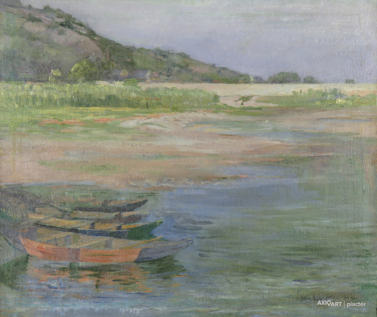 Magyar festő 1900 körül : Vízparti kikötő