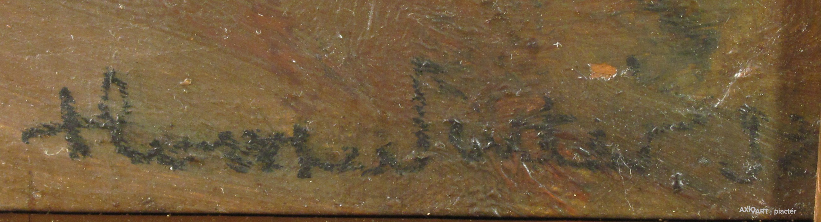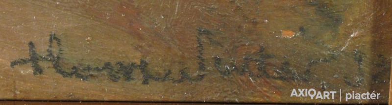 [FKB651/Z067] A kép mérete: 29 x 17 cm keret nélkül. Készült: Olaj, Falemez A kép Zeller Mihály (Nagypeleske, 1859) alkotása. Jelezve jobbra lent "Zeller M" A festmény jó állapotban van. Keret: Ép Magyar festők és grafikusok életrajzi lexikona I-II. Festő. A budapesti Mintarajziskolában, 1903-ban a nagybányai szabadiskolában, Münchenben és Berlinben végezte művészeti tanulmányait. Utóbb Párizsban is eltöltött egy évet. "Tisza partján" című képét 1906-ban Párizsban díszoklevéllel tüntették ki. 1908-ban Szatmárnémetiben kollektív kiállítást rendezett műveiből. Jelentősebb alkotásai: Sír a kislány a Balaton partján, Kertek alján, Áve Mária, stb. (Éber, RI-NM) Magyar festők és grafikusok adattára A Mintarajziskolában, Nagybányán és Berlinben tanult, utóbb Párizsban töltött egy évet. Tisza partján c. képét 1906-ban Párizsban díszoklevéllel tüntették ki. 1908-ban Szatmárnémetiben kollektív kiállítást rendezett műveiből. - MTA Magyar festők és grafikusok életrajzi lexikona I-II. Műgyűjtők és kereskedők kézikönyve Festő. A bp.-i Mintarajziskolában, Nagybányán, Münchenben és Berlinben végezte műv. tanulmányait. Utóbb Párizsban is töltött egy évet. "Tisza partján" c. képét 1906-ban Párizsban díszoklevéllel tüntették ki. 1908-ban Szatmárnémetiben koll. kiállítást rendezett műveiből. Jelentékenyebb alkotásai: Sír a kislány a Balaton partján, Kertek alján, Ave Maria. (Éber)