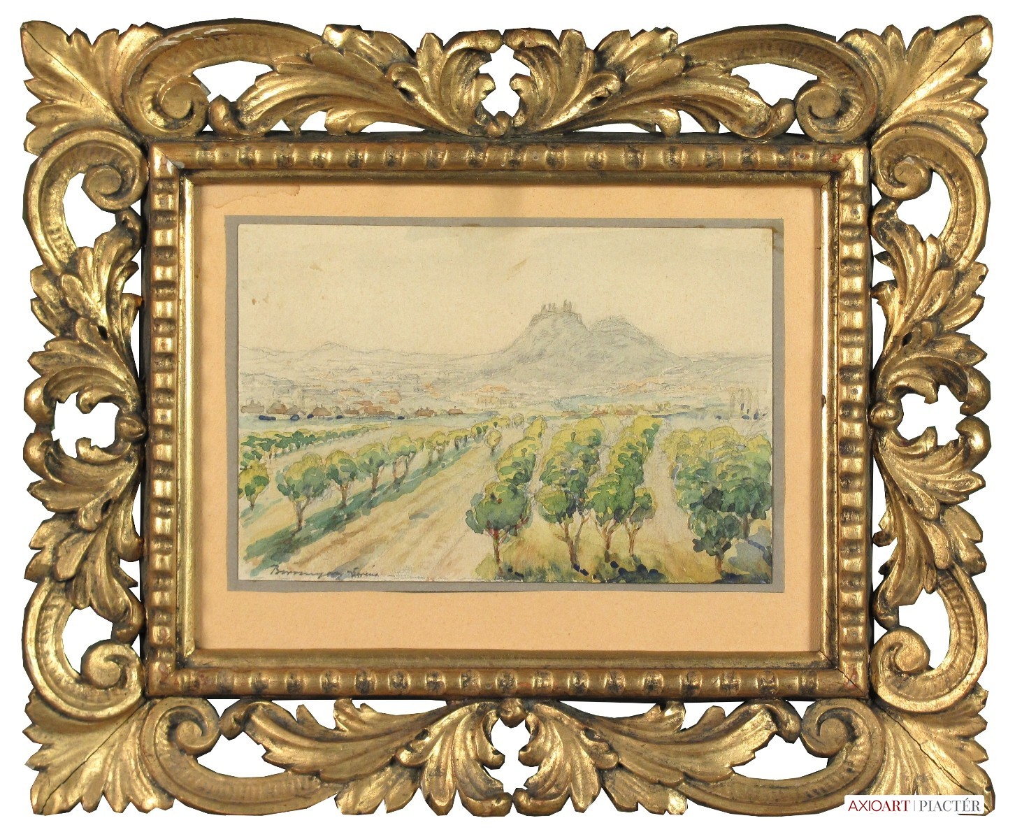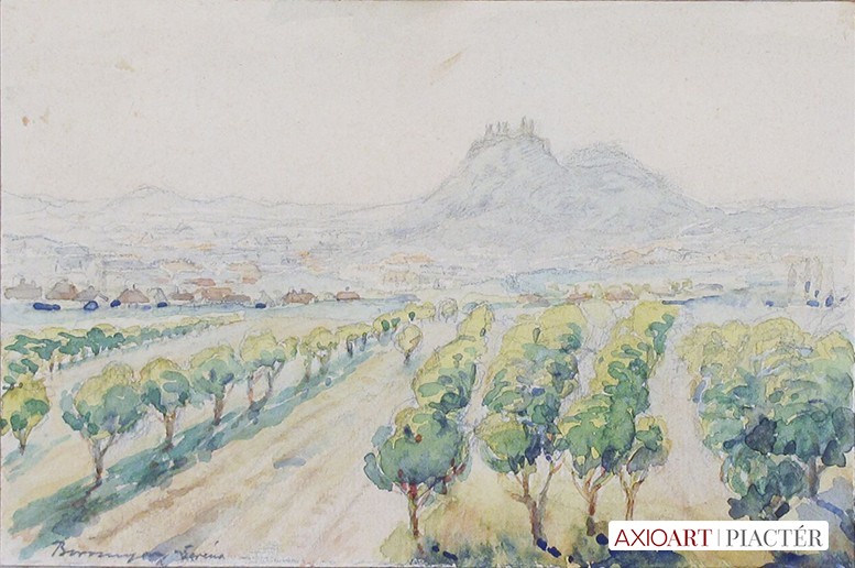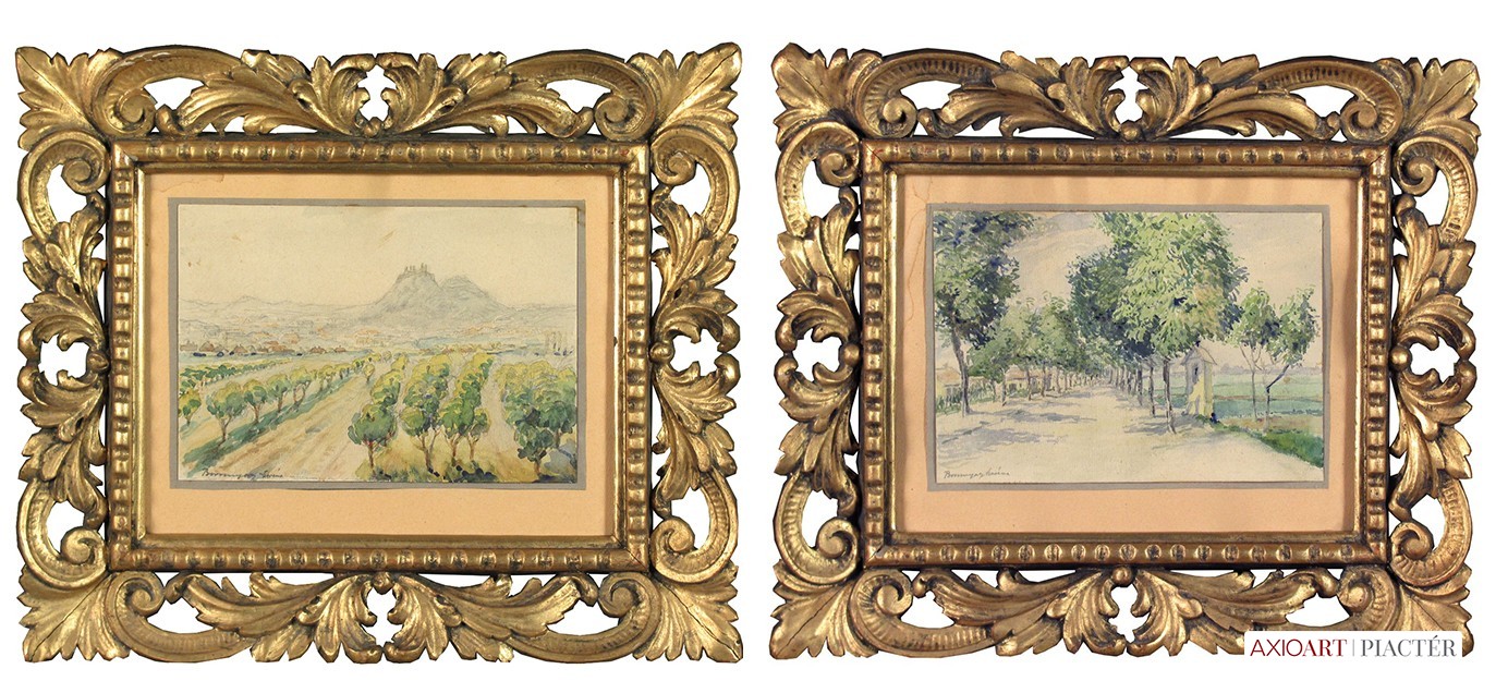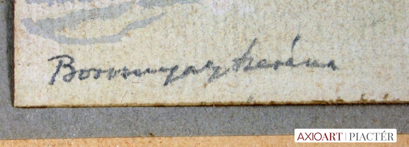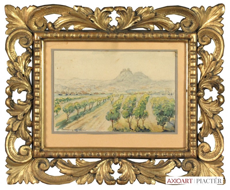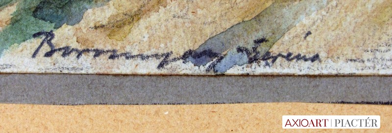 [FK1364/Bp302/45] A kép mérete: 23,5 x 18 cm keret nélkül. Készült: Akvarell, Papír A kép Bíró Béla (Makó, 1899) alkotása. Jelezve Jobbra lent "Bíró B 921." A festmény jó állapotban van. Keret: Új Magyar festők és grafikusok életrajzi lexikona I-II. Festő. A Magyar Képzőművészeti Főiskolán Csók István tanítványa volt, majd egy ideig ugyanitt mint tanársegéd tevékenykedett. Ezután rajztanárként dolgozott. 1943-ban a kolozsvári Egyetem magántanári címmel tüntette ki. 1955-ig a Szépművészeti Múzeum tudományos osztályvezetője volt. 1956-ban Los Angelesbe emigrált, ahol a Long Beach State College-ban a művészettörténelem tanárává nevezték ki. Tizenkét könyvet adott ki. Kiemelkedő műve a Bibliography of Art History. Főleg arcképeket festett. (KMHM) Magyar festők és grafikusok adattára A budapesti Képzőművészeti Főiskolán Csók István növendéke, majd tanársegédje. Középiskolai rajztanárként működött, majd művészettörténelemből doktorált. 1943-ban a kolozsvári egyetem magántanári címmel tüntette ki. 1955-ig a budapesti Szépművészeti Múzeum tudományos osztályvezetője volt. 1956-ban Los Angelesbe vándorolt, ahol a Long Beach State Collegeban a művészettörténelem tanárává nevezték ki. 12 könyvet publikált képzőművészeti- és pedagógiai tevékenysége mellett. Kiemelkedő művek a Bibliography of Art History c. könyve. Angolban ő sorozta be elsőnek az egyetemes művészettörténetbe a magyar művészeket. Arcképeket festett. - Irod.: GYKKL Magyar festők és grafikusok életrajzi lexikona I-II. Műgyűjtők és kereskedők kézikönyve Festő. A bp.-i Képzőművészeti Főiskolán Csók István növendéke volt, majd ugyanitt tanársegédként működött. Ezután rajztanárként dolgozott. 1943-ban a Kolozsvári Egyetem magántanári címmel tüntette ki. 1955-ig a Szépművészeti Múzeum tudományos osztályvezetője volt. 1956-ban Los Angelesbe vándorolt, hol a Long Beach State College-ban a művészettörténelem tanárává nevezték ki. Tizenkét könyvet adott ki. Kiemelkedő műve a Bibliography of Art History. Többnyire arcképeket festett. (KMHM)