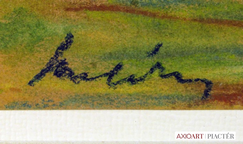 [FK1845/Z24/18] A kép mérete: 50 x 66 cm keret nélkül. Készült: pasztell, tempera, Papír A kép Kéri László (Budapest, 1949) alkotása. Jelezve Jobbra lent "Kéri László 76" A festmény jó állapotban van. Keret: Új A festmény hátoldalán a Képcsarnokvállalat raglapja látható. Magyar festők és grafikusok életrajzi lexikona I-II. Festő, grafikus. Tanulmányait a budapesti Képzőművészeti Főiskola festőszakán végezte 1976-ban. Sarkantyu Simon festőművész útmutatásai mellett képezte magát, de mesterének tartja Svády Lajost is. Évekig Szentesen dolgozott, majd Hódmezővásárhelyen telepedett le. 1977-ben tartotta első tárlatát. Ezt számos csoportos és egyéni bemutató követte. 1998-ban a Szegedi Táblaképfestészeti Biennálén szerepelt sikerrel. A Vásárhelyi Őszi Tárlatokon, valamint a békéscsabai Alföldi Tárlatokon nagyszámú díjat nyert el. Nem alföldi születésű, de tárgyi, valamint képi elemekkel kapcsolódik az alföldi hagyományokhoz. Rajzai, tusrajzai elementáris grafikusi tehetségről árulkodnak. Emberi viszonyokat, meghökkentő - alkalmasint - megdöbbentő emberi helyzeteket ábrázolnak rajzai. Festészetét illletően, pályakezdő korában erőteljesen érződött képein választott mesterének hatása, valamint a kései manierizimus és a korai barokk gomolygó, dinamikus rajzossága, erőteljes színvilága. A '80-as évek elején színei egyszerűbbek, tisztábbak lesznek. A '80-as, '90-es évtizedfordulón újból zaklatottan fest, diszharmonikus szín és tónuskontrasztokat használ. Az évtized vége felé újra higgadtabb megoldásokkat próbálkozik. Akvarellben és pasztellben is elismert művész, díszletterveket is készít. Számos köztéri munkája ismert (többnyire pannók). Alkotásai a Magyar Nemzeti Galéria és a hódmezővásárhelyi Tornyai J. Múzeum őrzi. (Pogány Gábor, MÉ, N.I.: Új Műv, 1992/5, Sz.P.: Új Műv. 1998/10) Magyar festők és grafikusok életrajzi lexikona I-II. Műgyűjtők és kereskedők kézikönyve Festő. Tanulmányait a bp.-i Képzőművészeti Főiskolán végezte, majd egy ideig Szentesen, később Hódmezővásárhelyen működött, ahol 1977-ben tartotta első tárlatát. Festészetének meghatározója az Alföld, de tárgyi és képi elemekkel kapcsolódik az alföldi hagyományokhoz. (MÉ) Magyar festők és grafikusok adattára Tanulmányait 1976-ban a Képzőművészeti Főiskolán végezte, a még ebben az évben Szentesre költözött. Jelenleg Hódmezővásárhelyen él, ahol 1977-ben tartotta első kiállítását. Festészetének meghatározója választott szűkebb hazája, az Alföld. Bár nem közvetlenül,inkább áttételesen, tárgyi és képi elemekkel kapcsolódik az alföldi hagyományokhoz. - Irod.: P. Sz. T.: Művész életrajzok. Bp. 1985. Művész életrajzok kortárs magyar képzőművészek 1976-ban végzett a Képzőművészeti Főiskolán, s még ez évben Szentesre költözött. Jelenleg Hódmezővásárhelyen él; első kiállítása e városban volt 1977-ben. - Festészetének meghatározója választott szűkebb pátriája, az Alföld; bár nem közvetlenül, inkább áttételesen, tárgyi és képi elemekkel kapcsolódik az alföldi festészeti hagyományokhoz. Kortárs magyar művészeti lexikon I-III. 1976: MKF, festő szak, mestere: Sarkanyú Simon, de Sváby Lajost is mesterének tartja. 1976-84-ig Szentesen él, azóta Hmvhelyen. A Vásárhelyi Őszi Tárlatokon és a bcsabai Alföldi Tárlatokon nagyszámú díjat nyert; 1980: PIM, József A.-pályázat HNF díja; 1978, 1984, 1986: Szegedi Nyári Tárlat díja; 1987: Tornyai Plakett; 1992: Akvarell B: Eger város Önkormányzat díja; 1998: Zene szemeimnek, MATÁV festészeti pályázat II. díja. Pályakezdő korában erőteljesen érződött képein választott mesterének hatása, valamint a kései manierizmus, és a korai barokk gomolygó, dinamikus rajzossága, erőteljes színvilága. A 80-as évek elején a színek egyszerűbbek, tisztábbak lesznek és előszeretettel alkalmaz a képen belső fényforrást. A 80-as, 90-es évtizedfordulón újból zaklatottaan fest, diszharmonikus szín és tónuskontrasztokat használ, szimbolikája áttételesebbé válik, majd kisméretű vásznakból sorozatokat készít, egy keretben álllítva ki azokat. Az évtized vége felé újra higgadtabb megoldásokat választ. Kéri László festészete mindvégig emberközpontú, figurális, az erőteljes emberi érzelmek közvetítője. Akvarellben és pasztellben is elismert művész, díszletterveket is készít. Ek: 1977: Medgyessy T., Hmvhely; 1979: Kisg. Szentes; 1981: Horváth E. G., Bgyarmat; 1983: Móra F. M. Képtára, Szeged; 1985: Vaszary T., Kaposvár; Gyöngyösi G., Gyöngyös; 1988: M. Historii, Lódz (PL); Magyar Int. Varsó; 1989: Art Service G., Párizs (kat.); 1990: Chateau d' Eguilly, Pouilly en Auxois (FR); 1991: Coll. Hung., Bécs; Műv. Közp., Nagykanizsa; 1993: Art Service G., Párizs; 1995: Wesselényi 70 G.; Tornyai J. M., Hmvhely; Bartók G., Szeged; 1996: G. de Meerse, Haarelmmermeer (NL); Hódtói Ált. Isk., Hmvhely; 1997: Tiszai G., Csongrád Vcsk: 1977-től Vásárhelyi Őszi Tárlatok, Szegedi Nyári Tárlatok, Alföldi Tárlatok, Bcsaba; 1981: Az út elején? Közben? Nyolc fiatal művész, Bartók 32 G.; 1982: I. Orsz. Rajzb., Salgótarján, Festőművészek a XI. kerületben, Bartók 32 G.; 1984: Vásárhelyi művészek, Zentai M. (Senta, YU), Vallomások az emberről, Juhász Gy. Műv. Közp., Szeged; 1987: Nközi Művésztelep, Iserlohn (NSZK); 1988: Görög Templom, Vác; Wilhelmshafen (D); 1994: Európa elrablása, Vigadó G.; 1997: Szimbiózis, Pest Center G.; 1998: Mednyánszky Társaság, S. Andrea G., Párma (OL); Belső rajz, Nádor G.; Kollázs, Vigadó G.; Zene szemeinknek, MATÁV pályázat, Pécs, Győr, Miskolc, Debrecen, Bp.; 1999: Ne vakolj a freskóra, Móra F. M. Képtára, Szeged; Mednyánszky Társaság, Koller G.; S