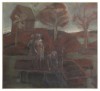 [1Y029/Z018] Olaj farost festmény, üveglap mögött, hibátlan képcsarnokos keretben. Hátoldalán Képcsarnok Vállalat papír címkéje: A művész neve: SCHÉNER MIHÁLY A kép címe: TÁJ Magasság: 66.5 cm Szélesség: 86 cm Súly: 6.54 kg Schéner Mihály festő, grafikus, szobrász, keramikus, bábtervező Medgyesegyháza, 1923-01-9 Elhalálozott: Budapest, 2009. május 11. Honlap: http://www.kormendigaleria.hu/kiadvany.html 1942-1947: Magyar Képzőművészeti Főiskola, tanára: Rudnay Gyula. 1978: Munkácsy-díj; 1984: érdemes művész; 1989: kiváló művész; 1995: Kossuth-díj. 1992-től a Magyar Művészeti Akadémia, 1993-tól a Széchenyi Irodalmi és Művészeti Akadémia tagja. 1956-ig tanított. 1982: Nagyatádi Faszobrász Alkotótelep, 1985: Nemzetközi Acélszobrász Alkotótelep, Dunaújváros. A stílusában felismerhető, mégis sokféle műtárgyat létrehozó ~ gazdag, állandóan alakuló életműve a folyton változó világban helyét kereső, az alkotói szabadságot megvalósító XX. századi képzőművész példázata lehetne. Magát expresszív-szürrealista alkotónak nevezi. Egyaránt dolgozik festékkel, textillel, fával, fémmel. Rajzol, szerkeszt, farag, épít, gyúr, varr és ragaszt, felhasználja a mézesbábok öntőformáit. Festő, rajzoló, textilszobor- és bábkészítő, fazekas, asztalos, esztergályos. Háromlépcsős folyamatban gondolkozik: rajzban tervez, majd fest, szobrot készít, “formába önt”, mindig a végső plasztikai megoldást keresi. Ami állandó és mégis játékosan változékony megjelenésű Schéner művészetében, az a gyermekkori emlékek által meghatározott népi mesterségek iránti tiszteletet kifejező motívumkincs, a tárgyi folklór formakészlete, amely már-már kézjegyként ismétlődik munkáin. Mitologikussá nőtt képzelete új lényeket teremt, pl: a Pigulát, amely disznótestű, emberfejű teremtmény. Schéner festményein a szürrealista motívumokat konstruktív szerkezetbe rendezi, a geometriát és az organikus természeti motívumokat egyaránt beépíti műveibe. A népi, népművészeti formakincsből merített lovas huszárok, betyárok, szegénylegények cifra szűr mentéje, piros csákója, fekete csizmája, az önálló életet élő zsinórdíszek és mézeskalács bábok, a kiskocsik a gyermekkori vásárok, búcsúk színes forgatagába vezet. A primér motívumokat aztán felváltják a vastagon felhordott felületbe karcolt jelek, vonalhálózatok, amelyek a játszó gyermek homokba rajzolt ábráit, a pásztorember fába vésett üzeneteit, az ősember barlang falába rótt mágikus jeleneteit idézik meg. A művész pillanatnyi érdeklődésének megfelelően a színek búvópatakként tűnnek el és jelennek meg ismét. A 60-as években leginkább a formákkal való játék érdekelte, a festmények felülete egyre gazdagodott: a táblaképek felületén applikációk jelentek meg, vagy lemállasztott rétegek hagyták maguk után hiányukat, motívumok nélküli ősformák, archetipikus képzetek bukkantak fel művészetében. A véletlenszerűnek látszó rétegekkel való játék azonban tudatos komponálás eredménye, amely később nyilvánvaló ritmusnak és formai szerkesztettségnek adja át a helyét, mint a Törvénytáblák c. sorozaton. A különböző művészi kifejezési formák egymásra termékenyítő hatással vannak, át- meg áthatják egymást. Textilszobrai, amelyekkel új műfajt teremtett, ugyanazzal az automatikus, expresszív-szürrealista módszerrel készülnek, mint festményei. A hagyományosan a népművészetben alkalmazott anyag, a filc lehetőséget ad a népi formakincs felelevenítésére, amely azonban a művész különös szürrealista átiratában jelenik meg. A szívekkel kivarrt, zsinórdíszes Posztókotlós c. művén mézesbábok lógnak, hátán huszárok lovagolnak. Egész sor textilből készült kéz-plasztikát alkot, amelyeket az ujjakra rávarrt díszekkel öltöztet, személyesít meg. A színes-különös világból aztán ~ újra puritán képi és formai rendbe juttatja el a nézőt, majd nemsokára tépett, gyűrt, vágott, csorgatott, repedezni hagyott szenvedélyesen vonagló képi felületeket hagy hátra. Schéner készített apró gyermekjátékokat, térstruktúra-tereket, mászókákat is. A magyar népi formák mellett szürreális játékaiban gyakran alkalmaz görög mitológiai alakokat, “elkentaurosodott” lovakat, Gorgó-fejeket, sellőket, hárpiákat, Pán-ábrázolásokat. Schéner nemcsak saját művészetéről publikál, hanem művésztársairól is számos írása jelenik meg, elsősorban az Új Auróra c. folyóiratban, amelynek egy ideig főmunkatársa volt. Irodalom kiállítása, Magyar Építőművészet, 1962/4. Húsz év után, Művészet, 1965/4. BOZÓKY M.: ~, Tiszatáj, 1968/5. PERNECZKY G.: Nincs uborkaszezon, Élet és Irodalom, 1969. augusztus 8. BARÁNSZKY-JÓB L.: ~, Művészet, 1969/9. LÁSZLÓ GY.: ~ kaposvári kiállítása, Jelenkor, 1969/4. MAJOR M.: Pásztorok, betyárok, huszárok - kezek, Tükör, 1970. szeptember 15. FRANK J.: Bemutatjuk ~t, Élet és Irodalom, 1972. május 6. ról kiállítása ürügyén, Képzőművészeti Almanach, Budapest, 1972 Sötétkék kokasok, Élet és Irodalom, 1973. szeptember 9. MAJOR M.: ~ játékai, Élet és Irodalom, 1974. július 27. BARTA J.: Egy különös művész, Alföld, 1974/6. VADAS J.: Szárnykészítők, Élet és Irodalom, 1975. október 4. JUHÁSZ F.: A halál ellen játszani, Élet és Irodalom, 1975. május 17. PAP G.: Kincsek és műkincsek, Művészet, 1975/6. P. SZŰCS J.: Az utak kettéválnak, Művészet, 1978/3. Békési művészet, Művészet, 1978/7. SZAMOSI F.: ~ [kismonográfia], Budapest, 1978 VADAS J.: Játék a játékkal, Élet és Irodalom, 1979. augusztus 18. NÉMETH L.: ~ műveiről, Művészet, 1979/4. MIKLÓS P.: Mit akar ez a múzeum?, Művésze