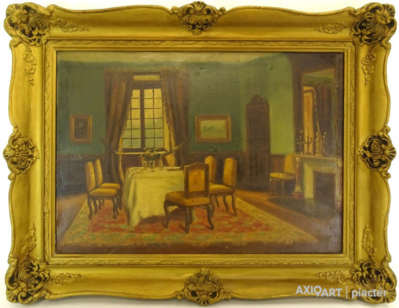 [FK3258/Bp47/17] A kép mérete: 50 x 60 cm keret nélkül. Készült: Olaj, Vászon A kép Szilvásy Margit (Sajókaza, 1898, Budapest, 1977) alkotása. Jelezve Jobbra lent "Szilvásy 954" A festmény jó állapotban van. Keret: Ép A festmény hátoldalán a Képcsarnokvállalat raglapja látható. Magyar festők és grafikusok életrajzi lexikona I-II. Festő. 1936-38 között a budapesti Iparművészeti Iskolában Orbán Antal, Domanovszky Endre és Lux Elek növendéke volt. 1938-42 között stúdiumait a Képzőművészeti Főiskolán végezte, ahol Szőnyi István és Elekfy Jenő irányítása mellett tanult. Első egyéni kállítását 1942-ben rendezte a Műbarát Galériában. Ezt követően a Fókusz Galériában, a Képcsarnokban, a Derkovits Teremben, az Ernst Múzeumban, Salgótartjánban, Helsinkiben, Orivesiben és Mentonban mutatta be önálló tárlaton műveit. Csoportos rendezvényeken a Műcsarnokban, a Nemzeti Szalonban, az Ernst Múzeumben, Sárospatakon és Egerben vett részt. Több európai országban járt tanulmányúton. Még a főiskola megkezdése előtti időkben Sárospatakon népművészeti alkotásokat tanulmányozott: a népi motívumkinccsel kapcsolatos élményeit későbbi művészpályájára nézve is fontosak voltak. Kezdeti alkotásait Rippl-Rónai József finom, visszafogott színvilágú periódusában keletkezett műveinek hatását mutatják. Későbbi munkáin palettája gazdálkodást, kiszínesedést mutat. Érett korszakában keletkezett munkáinak többsége figurális kompozíció. Képein főleg városi alakokat és munkásokat örökített meg. Készített portrékat (Szabó Lőrinc), tájképeket, csendéleteket is. Sz. páratlan színérzéke, festői alakítókedve, impulsív jelleme, tónusérzéke és természetelvűsége, főként a csendélet és a tájkép műfajában érvényesül. Elsősorban olajtemperával és akvarellel dolgozott. (Sz. M. kiállítás, Szabad művészet, 1947, Gyulai Gergely adatközlése nyomán) Magyar festők és grafikusok adattára Tanulmányait 1936-1943 között az Iparművészeti, majd a Képzőművészeti Főiskolán végezte, mesterei Domanovszky Endre, Szőnyi István és Elekfy Jenő voltak. Tanulmányutat Finnországban, Angliában, Olasz- és Franciaországban tett. Első gyűjteményes kiállítása 1942-ben a Műbarát Galériában, az utolsó 1973-ban az Ernst Múzeumban zajlott le. Külföldön Helsinkiben, Orivesi-ben és Mentonban mutatkozott be önállóan. - Páratlan színérzéke és festői alkotókedve, impulzív jelleme, tónusérzéke és természetelvűsége főként a csöndélet és a tájkép műfajában érvényesül, de mélyen érdeklik az emberi sajátosságok kifejeződései, a portrék is. - Irod.: Oelmacher Anna: Durray Tibor és Szilvásy Margit kiállítása. Szabad művészet, 1947. Magyar festők és grafikusok életrajzi lexikona I-II. Műgyűjtők és kereskedők kézikönyve Festő. Tanulmányait a bp.-i Iparművészeti Főiskolán és a Képzőművészeti Főiskolán végezte. Domanovszky Endre, Szőnyi István, Elekfy Jenő növendéke volt. Tanulmányúton járt számos nyugat-európai országban. Több kiállítása volt itthon (Műbarát Galéria, Ernst Múzeum), valamint Helsinkiben, Orivesiben és Mentonban. Páratlan színérzéke és festői alakítókedve, impulzív jelleme, tónusérzéke és természetelvűsége főként a csendélet és tájkép műfajában érvényesül, azonban mélyen érdeklik az emberi sajátosságok kifejeződései, a portrék is. (Sz. M. kiáll./Szabad Műv.-1947) Művészeti lexikon I-IV. Festő. 1936-tól az Iparművészeti Iskolában Orbán Antal, Lux Elek és Domanovszky Endre, 1938-től a Képzőművészeti Főiskolán Szőnyi István és Elekfy Jenő növendéke volt. Máramarosi és balatoni tájképeiből első kollektív kiállítását 1942-ben rendezte. A felszabadulás óta számos országos és csoportkiállításon s több önálló kiállításon mutatta be tartózkodó színekkel megoldott tájábrázolásait, a nagyváros, a gyárak, bányászok, parasztok életét megjelenítő figurális kompozícióit és jó karakterérzékéről tanúskodó portréit. 1959-ben és 1963-ban a Derkovits Teremben fiával, Szilvásy György keramikussal közösen állított ki. 1960-ban Finno.-ban mutatta be akvarelljeit. Kortárs magyar művészeti lexikon I-III. 1936-1943 között az Iparművészeti, majd a Képzőművészeti Főiskolán tanult, mesterei Domanovszky Endre, Szőnyi István és Elekfy Jenő voltak. Többször megfordult Angliában, Olasz- és Franciaországban, Finnországban. 10 gyűjteményes kiállítást rendezett életében, a legutóbbit 1973-ban az Ernst Múzeumban. Külföldön Olaszországban, Finnországban és Franciaországban mutatkozott be. - Impulzív alkatú, kiváló színérzékű mester volt, adottságait a csendéleti és tájképi témákban tudta leginkább kamatoztatni.