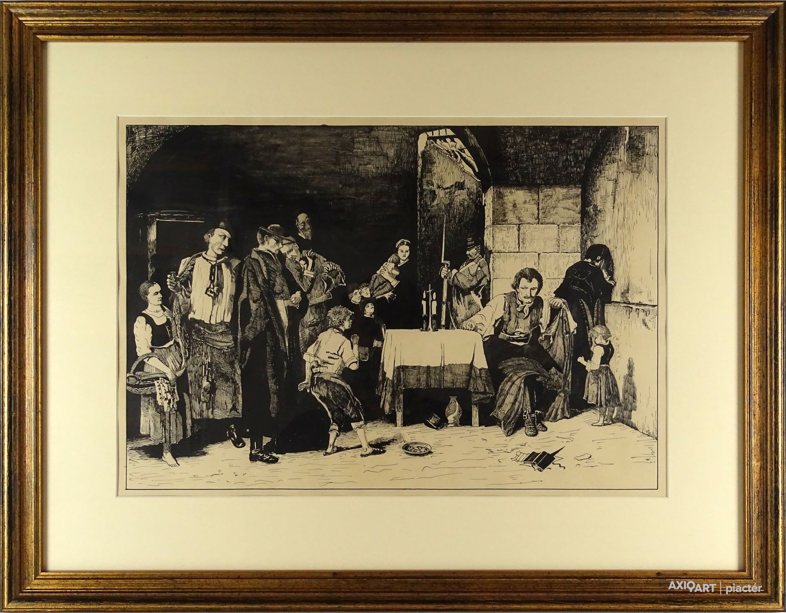 [1B948/091] Papír tusrajz, üveglap mögött, szépen keretezve. Azonnal falra akasztható, ajándékozható állapotban. Magasság: 53.5 cm Szélesség: 69 cm Súly: 2.31 kg