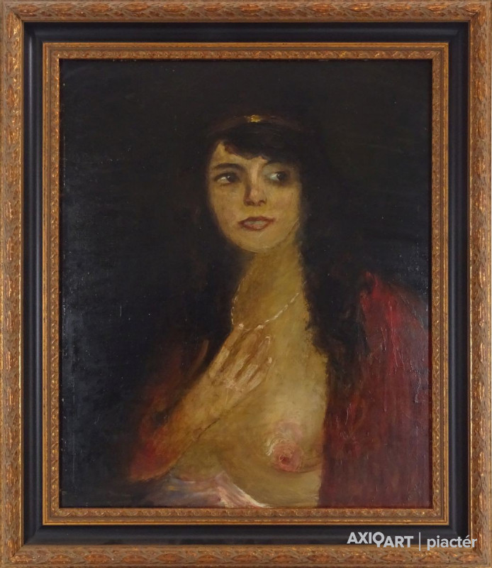 [1T107/Z029] 25% ÁRENGEDMÉNY MINDEN TERMÉKÜNKRE Dec. 14-ig Régi, szép állapotú kézzel festett három darab orientalista terrakotta kisplasztika, mellszobor. - 1 darab sárga ruhás, turbános szerecsen férfi büszt (20 x 12 x 23 cm) Vállán jelzés: IFJ. VASTAGH GY. - 1 darab kék ruhás, turbános szerecsen férfi büszt (17.5 x 15 x 23.5 cm) Vállán repedés, lásd fotó. - 1 darab barna ruhás szerecsen férfi büszt (19 x 15 x 23.5 cm) Vállán pecsételt és kopottas jelzés: IFJ. VASTAGH GY. ALGIR 1898 Súly: 3.945 kg Vastagh György (szobrász) Vastagh György Született 1868. szeptember 18. Kolozsvár Elhunyt 1946. június 3. (77 évesen) Budapest Állampolgársága magyar Nemzetisége magyar Házastársa Benczúr Olga Gyermekei Vastagh Éva Vastagh László Szülei Vastagh György Foglalkozása szobrász Sírhelye Fiumei Úti Sírkert (37/1-1-32) A Wikimédia Commons tartalmaz Vastagh György témájú médiaállományokat. Sablon • Wikidata • Segítség Ifjabb alsó-torjai Vastagh György (Kolozsvár, 1868. szeptember 18. – Budapest, 1946. június 3.) magyar szobrászművész. Az erdélyi Háromszékről származó Vastagh művészcsalád különböző műfajokban alkotó tagjai három generáción keresztül, százhúsz éven át voltak jelen a 19-20. század magyar képzőművészetében.  Családja Alsó-torjai székely lófő eredetű családból származott. Ősei 1661 körül a tatárdúlást követő pestis elől menekülve Szegeden telepedtek le, az ottani anyakönyvekben először 1667-ben fordul elő nevük. Nagyapja Vastagh János szegedi hajósgazda, apja id. Vastagh György festőművész, édesanyja Schell Jozefin, bátyja Vastagh Béla jogász és Vastagh Géza festőművész, sógora Kenyeres Balázs orvosprofesszor. Ifjabb Vastagh György 1900-ban kötött házasságot Benczúr Gyula lányával, Benczúr Olga képző- és iparművésszel. Három gyermekük született. Lánya, Vastagh Éva és fia, Vastagh László szobrászművészek voltak, kisebbik fia, Pál (közlekedési mérnök) a második világháborúban halt meg.  Tanulmányai Első mestere a nála mindössze egy évtizeddel idősebb Zala György volt. 1889 és 1891 között Münchenben a Képzőművészeti Akadémián tanult, előbb rajzot Gabriel Hacklnál, majd mintázást Syrius Eberlénél. 1893-ban tanulmányúton járt Párizsban, ahol Emmanuel Fremiet és Alexandre Falguere  szobrászokkal állt kapcsolatban. 1898-ban  négy hónapot töltött Algériában és Tunéziában, állami ösztöndíjjal ott tevékenykedő bátyjához, Gézához csatlakozva. Itt mintázta arab és néger portréit, továbbá egy teveszobrot.  Művészi pályafutása Tevehajcsár, 1893. Ifj. Vastagh György műtermének részlete az Árpád szoborral Első nyilvánosan felállított munkája a Pápai honvédemlék (1889), az ihászi csatát idéző bronz reliefjével és oszlop tetején szétterjesztett szárnyú turulszobrával. Részt vett a Kolozsvár város által kiírt Mátyás király szoborpályázaton, melyet Fadrusz János nyert meg. A Millenniumi kiállításra ötven tenyészállatszobor készítésével bízta meg a Földművelési Minisztérium. Ezeket az állami ménesbirtokokon – Bábolna, Kisbér, Mezőhegyes, Fogaras – mintázta. Az 1900-as párizsi világkiállításra a minisztériumtól újabb megrendelést kapott, a legkiválóbb nagy- és kistenyésztők állatainak megmintázását. Szobrait aranyéremmel jutalmazták. 1902-ben avatták fel a Budavári Palota területén, a lovarda előtt felállított másfélszeres életnagyságú Csikós szobrát, egyik főművét. Talapzatát a palota építésze Hauszmann Alajos tervezte. A II. világháborúban megsérült szobor restaurálás után 1983-ban került jelenlegi helyére, a Magyar Nemzeti Galéria B épülete előtti Hunyadi-udvarra. Fél életnagyságú változatát Párizsban a világkiállításon aranyéremmel díjazták. A londoni British Museum is vásárolt állatszobraiból, ezek egy része ma a Londoni Természettudományi Múzeum (Natural History Museum) gyűjteményében található. 1901-ben kapott megbízást Bethlen Gábor szobrának elkészítésére, melyet 1903-ban a Köröndön állítottak fel, ma a Hősök terén a millenniumi emlékmű egyik alakja. Ez időszakban az Állatorvosi Főiskolán lóanatómiai tanulmányokat készített grafikában és plasztikában, ezeket Zimmermann Ágoston szemléltető tananyagként alkalmazta. Ekkor készültek anatómiai tanulmányai Kincsemről, ott őrzött csontváza alapján. A nemzetközi vadászati kiállításon (1910, Bécs) kutyaszobraival aratott sikert. Részt vett a budapesti Bazilika szobrászati díszítésében (1905), a budapesti Széchenyi gyógyfürdő kupolacsarnokának egyik tritónja (1909–1913) is az ő nevéhez fűződik. II. Rákóczi Ferenc lovas szobrát Szegeden, a Széchenyi téren állították fel 1912-ben. Árpád fejedelem lovas szobrának felállítása Munkácson az I. világháború miatt meghiúsult, kisplasztikai változata a Magyar Mezőgazdasági Múzeumban látható. A múzeum felkérésére mintázta a Négyesfogat szoborcsoportot Dőry Vilmosné leperdi birtokán 1912-ben, a Négyökrös szántást Mezőhegyesen 1913-ban, továbbá szintén a Dőry-birtokon, a Mezőgazdasági kiállításon díjnyertes Cepedli tehén szobrát 1925-ben. Ez évben készült Pázmány Péter emlékszobra a nevét viselő tudományegyetem számára (központi épület), ma Piliscsabán a katolikus egyetemen található. Lourdes-i Mária szoborpályázaton nyertes alkotása (1925) a Gellért-hegyi Sziklatemplomban állt (eltűnt). A létrehozandó kairói Mezőgazdasági Múzeum számára 1931-32-ben közel 50 egyiptomi juh-, szarvasmarha- és lószobrot mintázott fiával, Lászlóval együtt. Görgey Artúr 