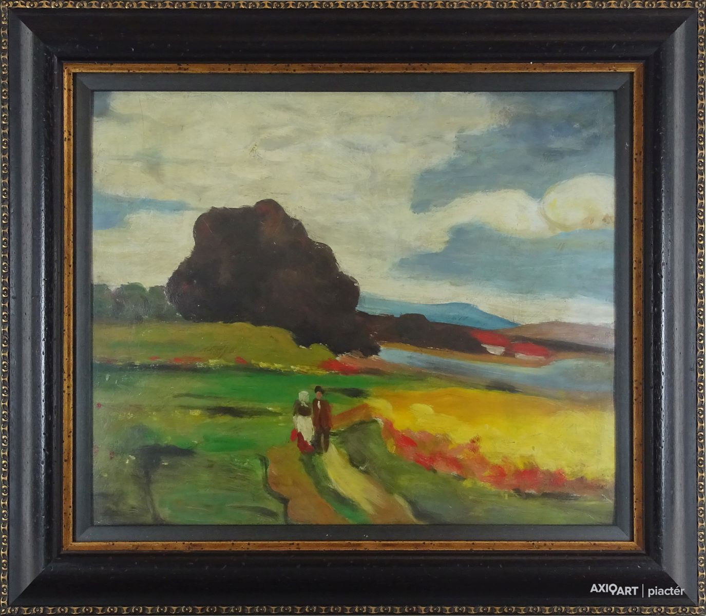 Olaj karton festmény üveglap mögött, hibátlan fekete keretben. Azonnal falra akasztható, ajándékozható állapotban.