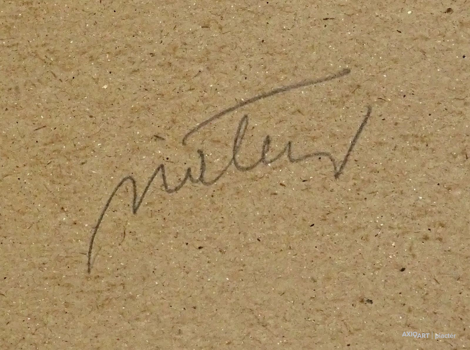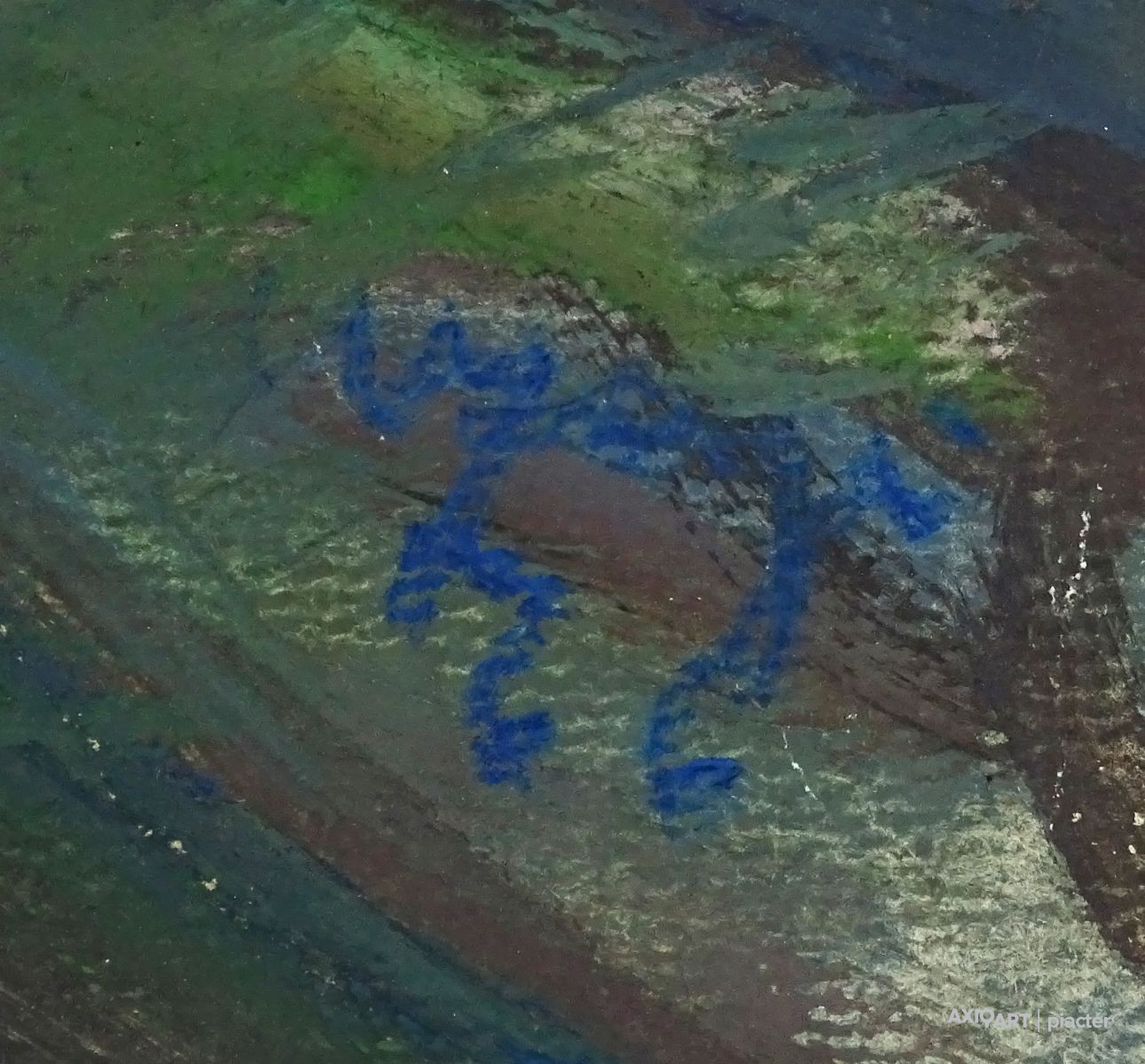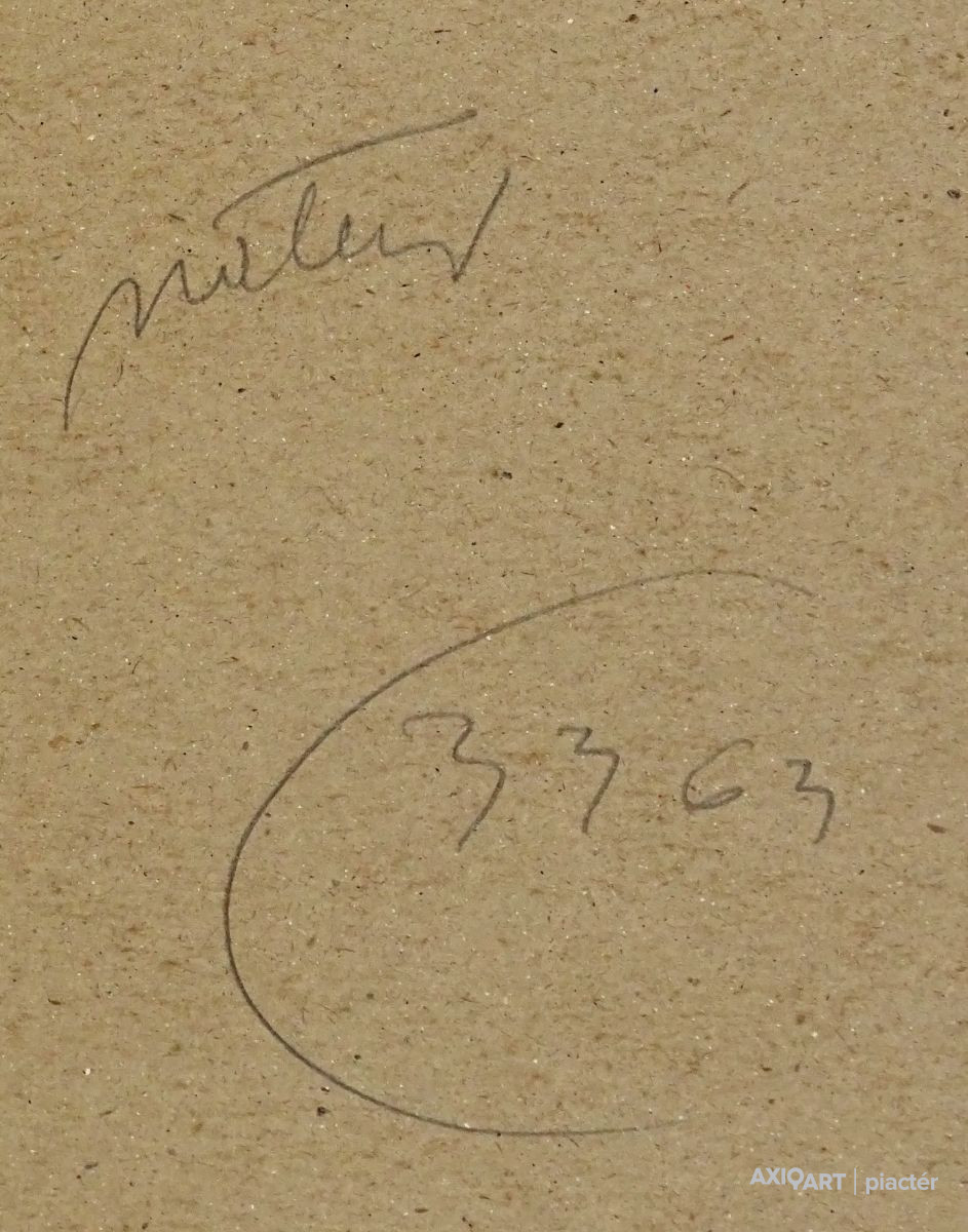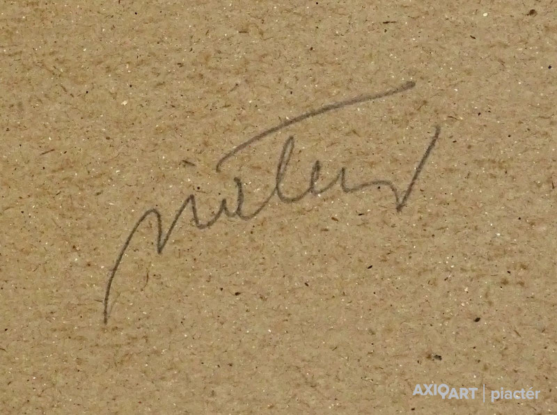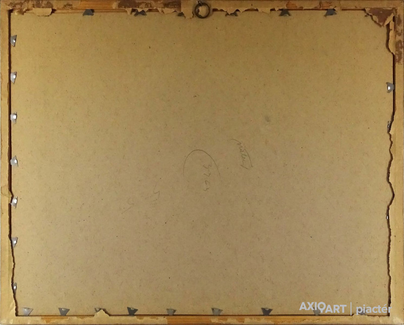 [FK0037/Z018] A kép mérete: 50 x 70 cm keret nélkül. Készült: Olaj, Vászon A kép Paizs László (Szentpéterúr, 1935) alkotása. Jelezve Jobbra lent "P. L." A festmény jó állapotban van. Keret: Ép A festmény hátoldalán a Képcsarnokvállalat címkéje található. Magyar festők és grafikusok életrajzi lexikona I-II. Festő. Tanulmányait a budapesti Iparművészeti Főiskolán végezte 1959-ben. Z. Gács György, Rákosy Zoltán és Szentiványi Lajos növendéke volt. A '60-as évek első felében hagyományosabb felfogású olajképeket festett, mozaikokat, freskókat, utóbb a pop-art körébe tartozó, a francia Arman munkáival rokon műveket alkotott. 1961 óta kiállító művész. Egyéni (Fényes Adolf Terem, Csók Galéria, Műcsarnok, Magyar Nemzeti Galéria, Halászbástya, Bástya Galéria, Vigadó Galéria, Budapest Galéria, Győr, Szombathely, Szeged, Zalaegerszeg, Duisburg, Aix-en-Provence, stb). és vegyes (Ernst Múzeum, Műcsarnok, Óbuda Galéria, Magyar Nemzeti Galéria, Csók Galéria, Vigadó Galéria, Székesfehérvár, Kaposvár, Pécs, Hódmezővásárhely, Firenze, Milano, Padova, Nápoly, Velence, Düsseldorf, Aachen, Genf, stb) tárlatokon vett részt. 1980-ban Munkácsy-díjjal jutalmazták, 1988-ban Érdemes Művész kitüntető elismerésben részesült. Munkáit őrzi a Magyar Nemzeti Galéria, a Fővárosi Képtár, a szombathelyi képtár, a pécsi Janus P. Múzeum, a székesfehérvári István Király Múzeum és a dunaszerdahelyi Kortárs Magyar Galéria. (H.B.: Műv, 1972/4, K.Gy.: Műv. 1977/2, K.G.: Műv. 1978/10, M.L.: Műv, 1983/5, R.G.: Műv, 1987/9, Sz.Gy.: Új Műv. 1995/4, MK) Magyar festők és grafikusok életrajzi lexikona I-II. Műgyűjtők és kereskedők kézikönyve Festő. Tanulmányait a bp.-i Iparművészeti Főiskolán végezte. Mozaikokat ferskókat, utóbb a pop-art körébe tartozó, a francia Arman műveivel rokon műveket alkotott. Mozaikok: a Szegedi Megyei Tanács, a Pécsi Óvoda, a Gödöllői Agrártudományi Egyetem. Freskók: Budapest - Csatárka úti Gyermekotthon. 1971-ben a Fényes Adolf Teremben volt kiállítása, 1983-ban pedig a szegedi Móra Ferenc Múzeumban nagyszabású tárlatokon mutatta be munkáit. 1988-ban érdemes művész kitüntető elismerésben részesült. (MK) Magyar festők és grafikusok adattára Az Iparművészeti Főiskolán végzett 1959-ben. Mozaikokat (Szeged, Megyei Tanács; Pécs, Óvoda; Gödöllő, Agrártudományi Egyetem), freskókat (Budapest, Csatárka úti Gyermekotthon), újabban a pop art körébe tartozó, a francia Arman műveivel rokon műveket alkotott. 1971-ben a Fényes Adolf Teremben nyílt kiállítása. 1983 februárjában a szegedi Móra Ferenc Múzeumban megrendezett nagyszabású tárlaton mutatta be alkotásait. 1988-ban érdemes művész kitüntető elismerésben részesült. - MK Művészeti lexikon I-IV. (Szentpéterur, 1935. dec. 26.- ): festő. Az Iparművészeti Főiskolán 1959-ben végzett Rákosy Zoltán, Z. Gách György és Szentiványi Lajos növendékeként. Épületdiszítő mozaikokat, (Szeged, Megyei Tanács, 1961; Pécs, Óvoda, 1964), műanyagfreskókat (Bp., Csatárka úti Gyermekotthon, 1964) és gobelinterveket készít. Kortárs magyar művészeti lexikon I-III. Festő, szobrász, grafikus. 1959: MIF, mesterei: Z. Gács György, Rákosy Zoltán, Szentiványi Lajos. 1980: Munkácsy-díj; 1988: érdemes művész. Főiskolás éveinek második felében, majd azt követően számos murális munka kivitelezésében vett részt, Fónyi Géza, Konecsni György, Z. Gács György, Rákosi Zoltán és Domanovszky Endre mellett dolgozva. A 60-as évek első felének hagyományosabb fölfogású olajképeket festett. 1964-ben a Velencei B.-n megismerkedett az amerikai pavilonban a pop art Európában akkor még újnak számító törekvésével, és részben ez inspirálta, hogy 1967-ben textil, fém, bőr anyagú "varrottas" képeket küldjön az FKS éves tárlatára; a megnyitó előtt többek között az ő munkáit is eltávolították a falról. A 70-es években pop art-os objekteket (A trónörököspár politikai gyilkosság áldozata lett, 1970, plexiüveg, újság, szarvasbogarak), majd konstruktív, átlátszó plexiüveg plasztikákat készített belső fénytörő határfelületekkel. A 80-as években készültek az anyagában színezett, konstruktív, nagyméretű poliészter szobrai, majd színes poliészter táblaképeket alkotott, mesterségesen roncsolt felületekkel, mintha régészeti leletek vagy atomtámadás utáni festmény-szurrogátumok lennének. Ekkor kezdett organikus plaszikájú bronzszobrokat is mintázni. A 90-es években, a táblaképek és szobrok mellett nagyméretű, egyedi grafikákat készített, formavilágában némileg a roncsolt táblaképekből kiindulva, de szinte kizárólag az emberi alakból elvonatkoztatott torzókat megjelenítve. Ek: 1966: Művészklub, Győr; 1971: Fényes A. T.; 1972: Bercsényi 28-30 G.; 1973: BME B-épület; 1976: Csók G.; 1977: G. Hildebrandt, Duisburg (NSZK); 1979: Bástya G., Halászbástya; Helyőrségi Műv. H., Nagyatád; József A. Műv. Közp., Szeged; Göcsej M., Zalaegerszeg; 1982: Bezzegh G., Küsnacht (CH); 1983: Móra F. M., Szeged; 1987: Műcsarnok (kat.); MNG; 1988: Pandora G., Badacsonytomaj; 1989: Parktheatter, Iserlohn (NSZK); Qualitas G.; Hevesi S. Színház, Zalaegerszeg; 1990: Vasarely Fondation (Ferdinánd Judittal, Fóth Ernővel), Aix-en-Provence (FR); 1994: Vigadó G.; 1997: Pest Center G.; 1998: Budapest G. (kat.); 1999: Pest Center G. (kat); G. Arcis, Sárvár; MMA, Bp.; 2001: SZK, Szhely; Ernst M. (kat.) Vcsk: 1961, 1964, 1966: FKS, Ernst M.; 1962: 9. Magyar Képzőműv. kiállítás, Műcsarnok; 1967: Mai magyar festészet, Új-Delhi; 1969: Vas megyei művészek, Savaria M., Szhely; V. Orsz. Grafikai B., Miskolc; 1971: Új művek, Műcsarnok; 1972: Fiatal művészek Budapestről. Likovni Salon, Újvidék (YU); 1972, 1973: Balatonboglár