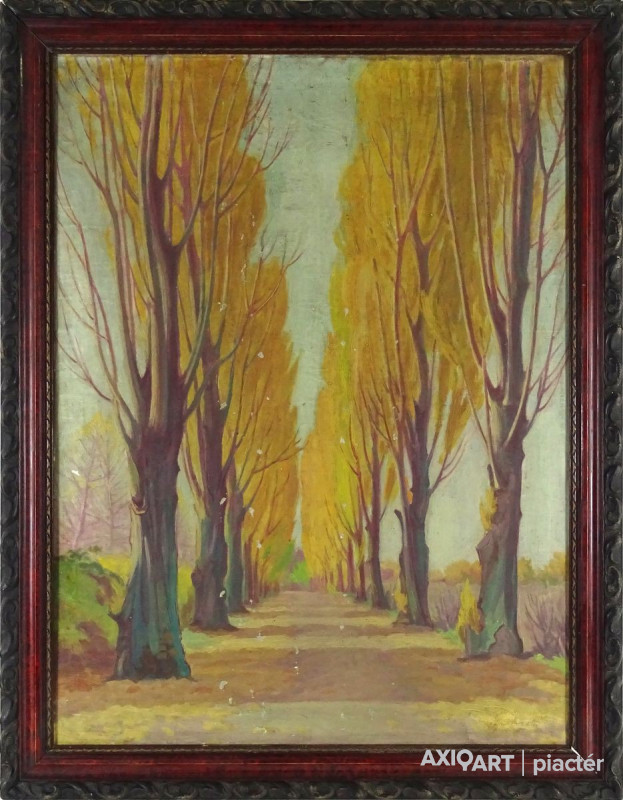 [FK0037/Z018] A kép mérete: 50 x 70 cm keret nélkül. Készült: Olaj, Vászon A kép Paizs László (Szentpéterúr, 1935) alkotása. Jelezve Jobbra lent "P. L." A festmény jó állapotban van. Keret: Ép A festmény hátoldalán a Képcsarnokvállalat címkéje található. Magyar festők és grafikusok életrajzi lexikona I-II. Festő. Tanulmányait a budapesti Iparművészeti Főiskolán végezte 1959-ben. Z. Gács György, Rákosy Zoltán és Szentiványi Lajos növendéke volt. A '60-as évek első felében hagyományosabb felfogású olajképeket festett, mozaikokat, freskókat, utóbb a pop-art körébe tartozó, a francia Arman munkáival rokon műveket alkotott. 1961 óta kiállító művész. Egyéni (Fényes Adolf Terem, Csók Galéria, Műcsarnok, Magyar Nemzeti Galéria, Halászbástya, Bástya Galéria, Vigadó Galéria, Budapest Galéria, Győr, Szombathely, Szeged, Zalaegerszeg, Duisburg, Aix-en-Provence, stb). és vegyes (Ernst Múzeum, Műcsarnok, Óbuda Galéria, Magyar Nemzeti Galéria, Csók Galéria, Vigadó Galéria, Székesfehérvár, Kaposvár, Pécs, Hódmezővásárhely, Firenze, Milano, Padova, Nápoly, Velence, Düsseldorf, Aachen, Genf, stb) tárlatokon vett részt. 1980-ban Munkácsy-díjjal jutalmazták, 1988-ban Érdemes Művész kitüntető elismerésben részesült. Munkáit őrzi a Magyar Nemzeti Galéria, a Fővárosi Képtár, a szombathelyi képtár, a pécsi Janus P. Múzeum, a székesfehérvári István Király Múzeum és a dunaszerdahelyi Kortárs Magyar Galéria. (H.B.: Műv, 1972/4, K.Gy.: Műv. 1977/2, K.G.: Műv. 1978/10, M.L.: Műv, 1983/5, R.G.: Műv, 1987/9, Sz.Gy.: Új Műv. 1995/4, MK) Magyar festők és grafikusok életrajzi lexikona I-II. Műgyűjtők és kereskedők kézikönyve Festő. Tanulmányait a bp.-i Iparművészeti Főiskolán végezte. Mozaikokat ferskókat, utóbb a pop-art körébe tartozó, a francia Arman műveivel rokon műveket alkotott. Mozaikok: a Szegedi Megyei Tanács, a Pécsi Óvoda, a Gödöllői Agrártudományi Egyetem. Freskók: Budapest - Csatárka úti Gyermekotthon. 1971-ben a Fényes Adolf Teremben volt kiállítása, 1983-ban pedig a szegedi Móra Ferenc Múzeumban nagyszabású tárlatokon mutatta be munkáit. 1988-ban érdemes művész kitüntető elismerésben részesült. (MK) Magyar festők és grafikusok adattára Az Iparművészeti Főiskolán végzett 1959-ben. Mozaikokat (Szeged, Megyei Tanács; Pécs, Óvoda; Gödöllő, Agrártudományi Egyetem), freskókat (Budapest, Csatárka úti Gyermekotthon), újabban a pop art körébe tartozó, a francia Arman műveivel rokon műveket alkotott. 1971-ben a Fényes Adolf Teremben nyílt kiállítása. 1983 februárjában a szegedi Móra Ferenc Múzeumban megrendezett nagyszabású tárlaton mutatta be alkotásait. 1988-ban érdemes művész kitüntető elismerésben részesült. - MK Művészeti lexikon I-IV. (Szentpéterur, 1935. dec. 26.- ): festő. Az Iparművészeti Főiskolán 1959-ben végzett Rákosy Zoltán, Z. Gách György és Szentiványi Lajos növendékeként. Épületdiszítő mozaikokat, (Szeged, Megyei Tanács, 1961; Pécs, Óvoda, 1964), műanyagfreskókat (Bp., Csatárka úti Gyermekotthon, 1964) és gobelinterveket készít. Kortárs magyar művészeti lexikon I-III. Festő, szobrász, grafikus. 1959: MIF, mesterei: Z. Gács György, Rákosy Zoltán, Szentiványi Lajos. 1980: Munkácsy-díj; 1988: érdemes művész. Főiskolás éveinek második felében, majd azt követően számos murális munka kivitelezésében vett részt, Fónyi Géza, Konecsni György, Z. Gács György, Rákosi Zoltán és Domanovszky Endre mellett dolgozva. A 60-as évek első felének hagyományosabb fölfogású olajképeket festett. 1964-ben a Velencei B.-n megismerkedett az amerikai pavilonban a pop art Európában akkor még újnak számító törekvésével, és részben ez inspirálta, hogy 1967-ben textil, fém, bőr anyagú "varrottas" képeket küldjön az FKS éves tárlatára; a megnyitó előtt többek között az ő munkáit is eltávolították a falról. A 70-es években pop art-os objekteket (A trónörököspár politikai gyilkosság áldozata lett, 1970, plexiüveg, újság, szarvasbogarak), majd konstruktív, átlátszó plexiüveg plasztikákat készített belső fénytörő határfelületekkel. A 80-as években készültek az anyagában színezett, konstruktív, nagyméretű poliészter szobrai, majd színes poliészter táblaképeket alkotott, mesterségesen roncsolt felületekkel, mintha régészeti leletek vagy atomtámadás utáni festmény-szurrogátumok lennének. Ekkor kezdett organikus plaszikájú bronzszobrokat is mintázni. A 90-es években, a táblaképek és szobrok mellett nagyméretű, egyedi grafikákat készített, formavilágában némileg a roncsolt táblaképekből kiindulva, de szinte kizárólag az emberi alakból elvonatkoztatott torzókat megjelenítve. Ek: 1966: Művészklub, Győr; 1971: Fényes A. T.; 1972: Bercsényi 28-30 G.; 1973: BME B-épület; 1976: Csók G.; 1977: G. Hildebrandt, Duisburg (NSZK); 1979: Bástya G., Halászbástya; Helyőrségi Műv. H., Nagyatád; József A. Műv. Közp., Szeged; Göcsej M., Zalaegerszeg; 1982: Bezzegh G., Küsnacht (CH); 1983: Móra F. M., Szeged; 1987: Műcsarnok (kat.); MNG; 1988: Pandora G., Badacsonytomaj; 1989: Parktheatter, Iserlohn (NSZK); Qualitas G.; Hevesi S. Színház, Zalaegerszeg; 1990: Vasarely Fondation (Ferdinánd Judittal, Fóth Ernővel), Aix-en-Provence (FR); 1994: Vigadó G.; 1997: Pest Center G.; 1998: Budapest G. (kat.); 1999: Pest Center G. (kat); G. Arcis, Sárvár; MMA, Bp.; 2001: SZK, Szhely; Ernst M. (kat.) Vcsk: 1961, 1964, 1966: FKS, Ernst M.; 1962: 9. Magyar Képzőműv. kiállítás, Műcsarnok; 1967: Mai magyar festészet, Új-Delhi; 1969: Vas megyei művészek, Savaria M., Szhely; V. Orsz. Grafikai B., Miskolc; 1971: Új művek, Műcsarnok; 1972: Fiatal művészek Budapestről. Likovni Salon, Újvidék (YU); 1972, 1973: Balatonboglár