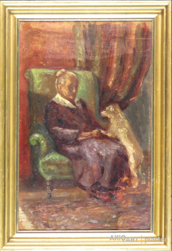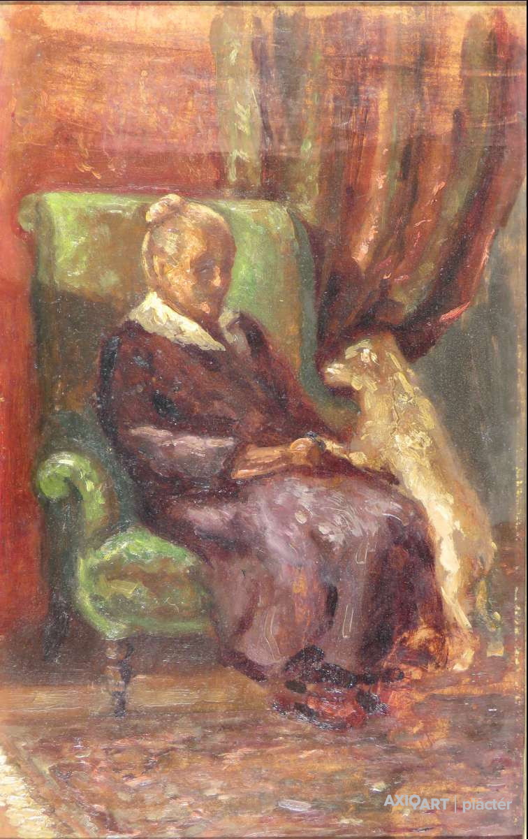 Magyar festő XX. század : Pihenő hölgy kutyával