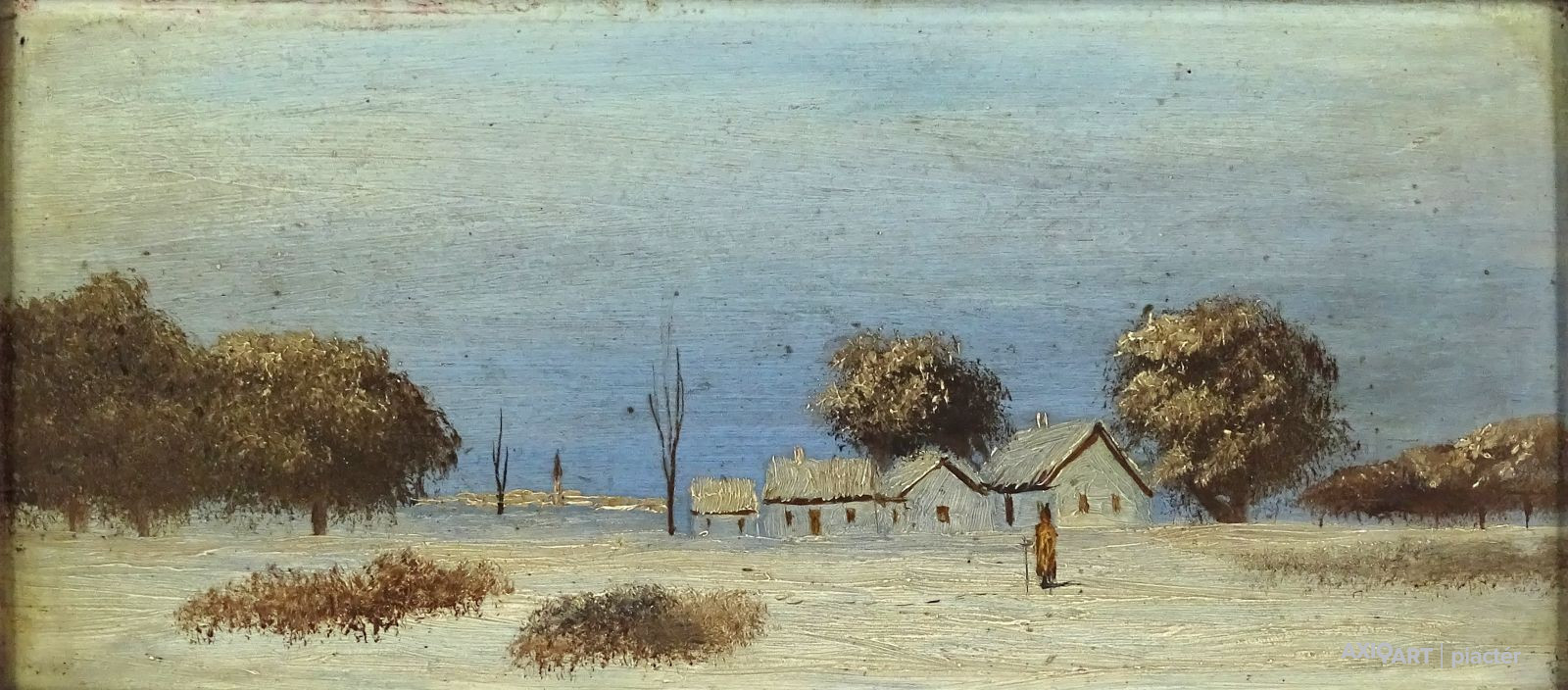 [1F094/033] 25% ÁRENGEDMÉNY MINDEN TERMÉKÜNKRE Dec. 14-ig Olaj falemez festmény üveglap mögött, régi fekete keretben. Jelzés balra lent: ...póczky Á Magasság: 23 cm Szélesség: 27 cm Súly: 0.71 kg