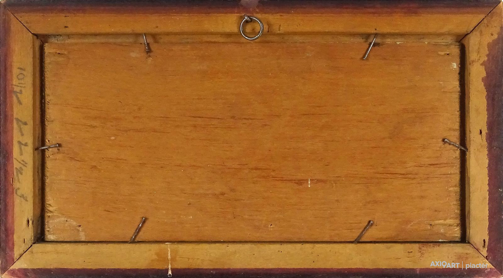 [1F018/X320] 25% ÁRENGEDMÉNY MINDEN TERMÉKÜNKRE Dec. 14-ig Olaj falemez festmény, régi keretben. Magasság: 14.5 cm Szélesség: 26 cm Súly: 0.19 kg
