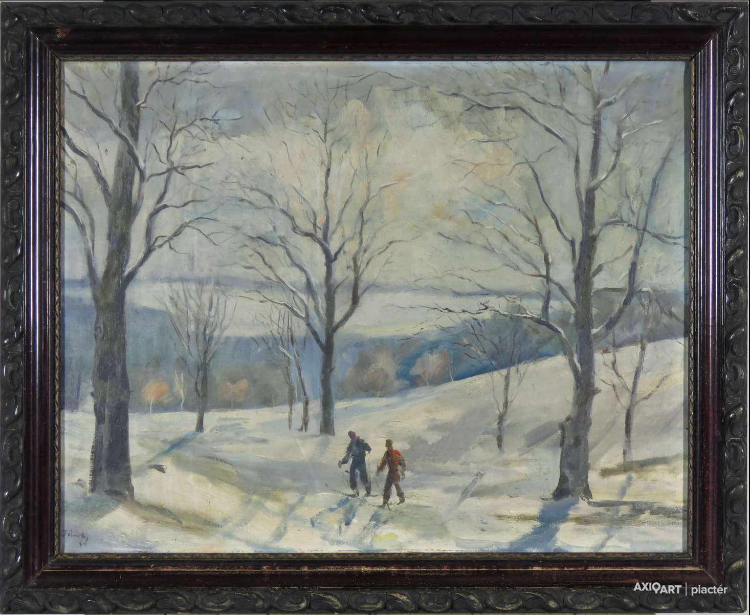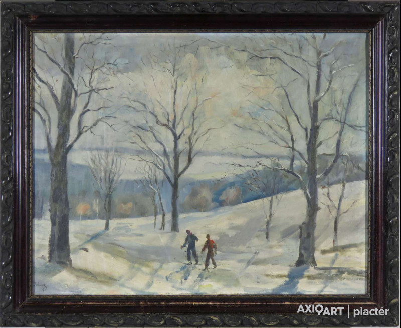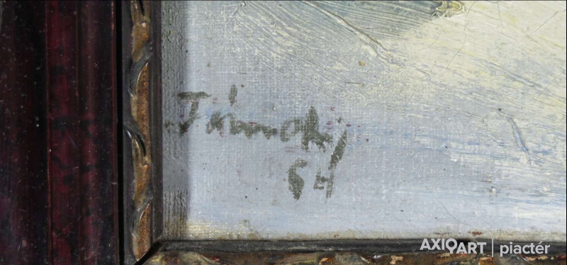 [FK0037/Z018] A kép mérete: 50 x 70 cm keret nélkül. Készült: Olaj, Vászon A kép Paizs László (Szentpéterúr, 1935) alkotása. Jelezve Jobbra lent "P. L." A festmény jó állapotban van. Keret: Ép A festmény hátoldalán a Képcsarnokvállalat címkéje található. Magyar festők és grafikusok életrajzi lexikona I-II. Festő. Tanulmányait a budapesti Iparművészeti Főiskolán végezte 1959-ben. Z. Gács György, Rákosy Zoltán és Szentiványi Lajos növendéke volt. A '60-as évek első felében hagyományosabb felfogású olajképeket festett, mozaikokat, freskókat, utóbb a pop-art körébe tartozó, a francia Arman munkáival rokon műveket alkotott. 1961 óta kiállító művész. Egyéni (Fényes Adolf Terem, Csók Galéria, Műcsarnok, Magyar Nemzeti Galéria, Halászbástya, Bástya Galéria, Vigadó Galéria, Budapest Galéria, Győr, Szombathely, Szeged, Zalaegerszeg, Duisburg, Aix-en-Provence, stb). és vegyes (Ernst Múzeum, Műcsarnok, Óbuda Galéria, Magyar Nemzeti Galéria, Csók Galéria, Vigadó Galéria, Székesfehérvár, Kaposvár, Pécs, Hódmezővásárhely, Firenze, Milano, Padova, Nápoly, Velence, Düsseldorf, Aachen, Genf, stb) tárlatokon vett részt. 1980-ban Munkácsy-díjjal jutalmazták, 1988-ban Érdemes Művész kitüntető elismerésben részesült. Munkáit őrzi a Magyar Nemzeti Galéria, a Fővárosi Képtár, a szombathelyi képtár, a pécsi Janus P. Múzeum, a székesfehérvári István Király Múzeum és a dunaszerdahelyi Kortárs Magyar Galéria. (H.B.: Műv, 1972/4, K.Gy.: Műv. 1977/2, K.G.: Műv. 1978/10, M.L.: Műv, 1983/5, R.G.: Műv, 1987/9, Sz.Gy.: Új Műv. 1995/4, MK) Magyar festők és grafikusok életrajzi lexikona I-II. Műgyűjtők és kereskedők kézikönyve Festő. Tanulmányait a bp.-i Iparművészeti Főiskolán végezte. Mozaikokat ferskókat, utóbb a pop-art körébe tartozó, a francia Arman műveivel rokon műveket alkotott. Mozaikok: a Szegedi Megyei Tanács, a Pécsi Óvoda, a Gödöllői Agrártudományi Egyetem. Freskók: Budapest - Csatárka úti Gyermekotthon. 1971-ben a Fényes Adolf Teremben volt kiállítása, 1983-ban pedig a szegedi Móra Ferenc Múzeumban nagyszabású tárlatokon mutatta be munkáit. 1988-ban érdemes művész kitüntető elismerésben részesült. (MK) Magyar festők és grafikusok adattára Az Iparművészeti Főiskolán végzett 1959-ben. Mozaikokat (Szeged, Megyei Tanács; Pécs, Óvoda; Gödöllő, Agrártudományi Egyetem), freskókat (Budapest, Csatárka úti Gyermekotthon), újabban a pop art körébe tartozó, a francia Arman műveivel rokon műveket alkotott. 1971-ben a Fényes Adolf Teremben nyílt kiállítása. 1983 februárjában a szegedi Móra Ferenc Múzeumban megrendezett nagyszabású tárlaton mutatta be alkotásait. 1988-ban érdemes művész kitüntető elismerésben részesült. - MK Művészeti lexikon I-IV. (Szentpéterur, 1935. dec. 26.- ): festő. Az Iparművészeti Főiskolán 1959-ben végzett Rákosy Zoltán, Z. Gách György és Szentiványi Lajos növendékeként. Épületdiszítő mozaikokat, (Szeged, Megyei Tanács, 1961; Pécs, Óvoda, 1964), műanyagfreskókat (Bp., Csatárka úti Gyermekotthon, 1964) és gobelinterveket készít. Kortárs magyar művészeti lexikon I-III. Festő, szobrász, grafikus. 1959: MIF, mesterei: Z. Gács György, Rákosy Zoltán, Szentiványi Lajos. 1980: Munkácsy-díj; 1988: érdemes művész. Főiskolás éveinek második felében, majd azt követően számos murális munka kivitelezésében vett részt, Fónyi Géza, Konecsni György, Z. Gács György, Rákosi Zoltán és Domanovszky Endre mellett dolgozva. A 60-as évek első felének hagyományosabb fölfogású olajképeket festett. 1964-ben a Velencei B.-n megismerkedett az amerikai pavilonban a pop art Európában akkor még újnak számító törekvésével, és részben ez inspirálta, hogy 1967-ben textil, fém, bőr anyagú "varrottas" képeket küldjön az FKS éves tárlatára; a megnyitó előtt többek között az ő munkáit is eltávolították a falról. A 70-es években pop art-os objekteket (A trónörököspár politikai gyilkosság áldozata lett, 1970, plexiüveg, újság, szarvasbogarak), majd konstruktív, átlátszó plexiüveg plasztikákat készített belső fénytörő határfelületekkel. A 80-as években készültek az anyagában színezett, konstruktív, nagyméretű poliészter szobrai, majd színes poliészter táblaképeket alkotott, mesterségesen roncsolt felületekkel, mintha régészeti leletek vagy atomtámadás utáni festmény-szurrogátumok lennének. Ekkor kezdett organikus plaszikájú bronzszobrokat is mintázni. A 90-es években, a táblaképek és szobrok mellett nagyméretű, egyedi grafikákat készített, formavilágában némileg a roncsolt táblaképekből kiindulva, de szinte kizárólag az emberi alakból elvonatkoztatott torzókat megjelenítve. Ek: 1966: Művészklub, Győr; 1971: Fényes A. T.; 1972: Bercsényi 28-30 G.; 1973: BME B-épület; 1976: Csók G.; 1977: G. Hildebrandt, Duisburg (NSZK); 1979: Bástya G., Halászbástya; Helyőrségi Műv. H., Nagyatád; József A. Műv. Közp., Szeged; Göcsej M., Zalaegerszeg; 1982: Bezzegh G., Küsnacht (CH); 1983: Móra F. M., Szeged; 1987: Műcsarnok (kat.); MNG; 1988: Pandora G., Badacsonytomaj; 1989: Parktheatter, Iserlohn (NSZK); Qualitas G.; Hevesi S. Színház, Zalaegerszeg; 1990: Vasarely Fondation (Ferdinánd Judittal, Fóth Ernővel), Aix-en-Provence (FR); 1994: Vigadó G.; 1997: Pest Center G.; 1998: Budapest G. (kat.); 1999: Pest Center G. (kat); G. Arcis, Sárvár; MMA, Bp.; 2001: SZK, Szhely; Ernst M. (kat.) Vcsk: 1961, 1964, 1966: FKS, Ernst M.; 1962: 9. Magyar Képzőműv. kiállítás, Műcsarnok; 1967: Mai magyar festészet, Új-Delhi; 1969: Vas megyei művészek, Savaria M., Szhely; V. Orsz. Grafikai B., Miskolc; 1971: Új művek, Műcsarnok; 1972: Fiatal művészek Budapestről. Likovni Salon, Újvidék (YU); 1972, 1973: Balatonboglár