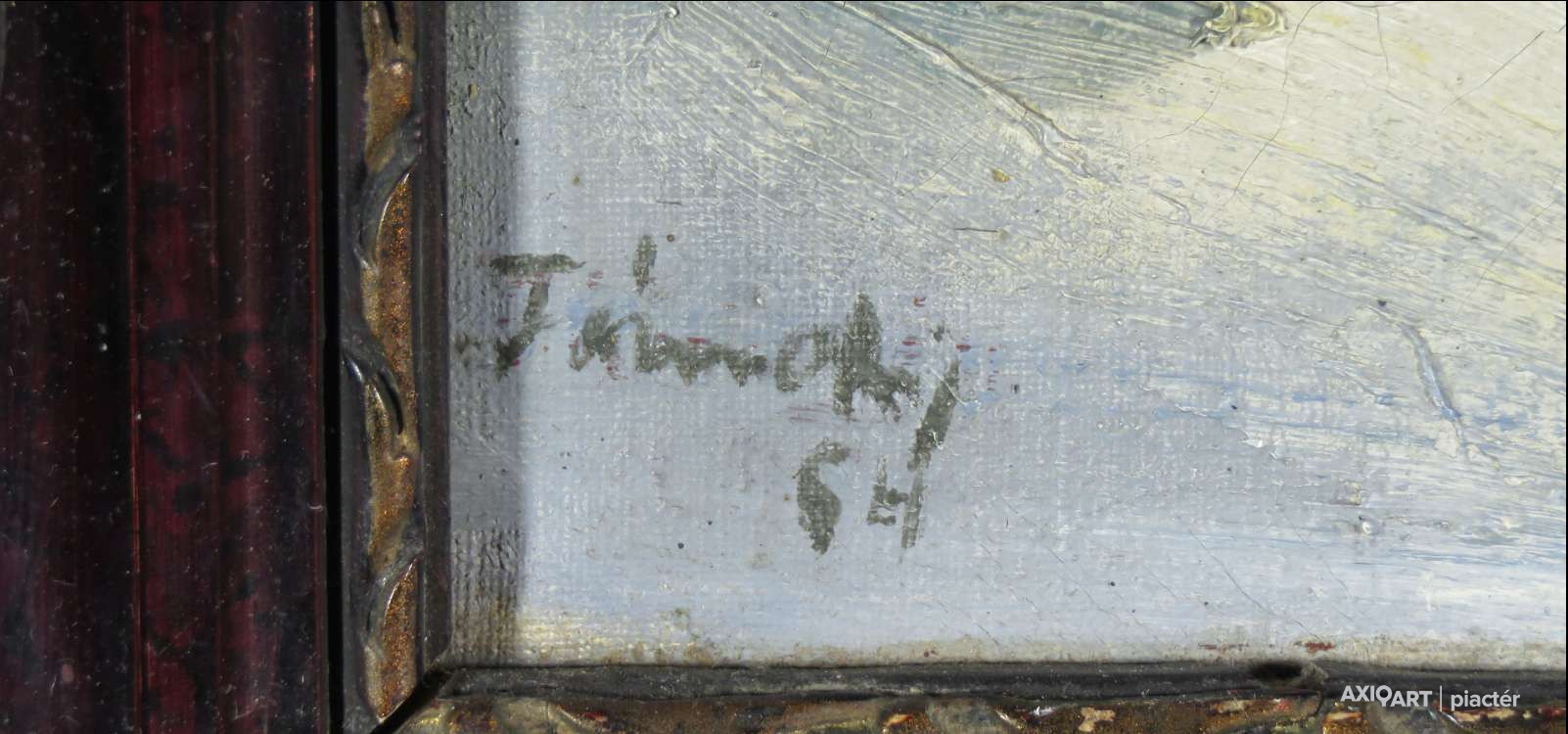 [FKC917/Bp2/58] A kép mérete: 50 x 63 cm keret nélkül. Készült: Olaj, Vászon A kép Magyar festőművész 1964 alkotása. Jelezve balra lent "olvashatatlan" A festmény jó állapotban van. Keret: Ép