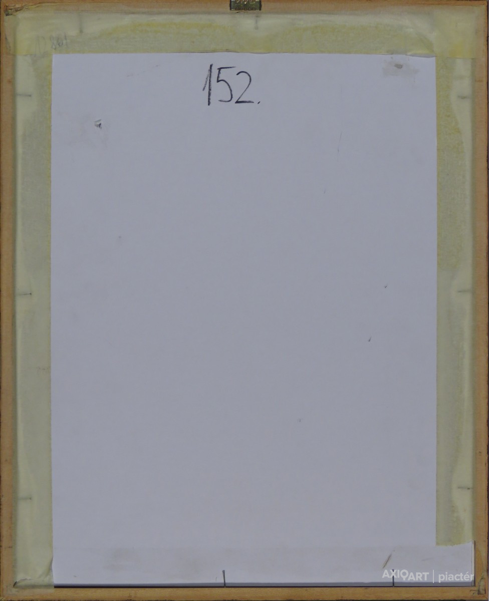 [FKA030/Bp305/55] A kép mérete: 29 x 24 cm keret nélkül. Készült: Szén, Papír A kép Sarkantyu Simon (Pincehely, 1921, Budapest, 1989) alkotása. Jelezve jobbra lent "Sarkantyú" A festmény jó állapotban van. Keret: Ép Magyar festők és grafikusok életrajzi lexikona I-II. Festő, grafikus. 1941-1944 között Rudnay Gyula növendékeként tanult a budapesti Képzőművészeti Főiskolán. 1946-ban fejezte be stúdiumait a Derkovits Kollégiumban. 1947-53 között a népi kollégium igazgatója volt Dombóváron, illetve Budapesten. 1960-81 között a Magyar Képzőművészeti Főiskola adjunktusa-, majd docenseként tevékenykedett. Tanulmányúton járt több nyugat- és kelet-európai országban. Budapesten működött. Számos egyéni tárlaton szerepelt (Csók Galéria, Csontváry Terem, Dombóvár, Kölesd, Nagykanizsa, Szeged, Szekszárd, Szombathely, stb.). 1950-től rendszeresen jelen volt a magyar művészet hazai és külhoni csoportos rendezvényein (VElencei Biennále, Párizs Antwerpen, Prága, Stockholm, kisázsiai országok, Tokió, Moszkva, stb.). A Kilencek egyik alapító tagja és tárlataik aktív résztvevője volt. Sarkantyu festői felfogása a posztnagybányai hagyománykör folytatója, viszont az irányzat lírai kolorizmusa nála a képi elemek bizonyos megszerkesztettségével, illetve az előadás nagyvonalúságával párosul, ami stílusának eleven, dekoratív jelleget kölcsönöz. Problematikái zömmel a mindennapokban gyökereznek, elsősorban a modern szellemi élet szerkezetének, a kor életérzésének megragadása foglalkoztatta. Előszeretettel festett csendéleteket, melyeknek kis világából a valóság nagyobb összefüggéseire utalt, de tájképein, sőt alakos kompozícióin is az ábrázolt élmény vagy jelenség egyetemes érvényű vonásait emelte ki. Díjak: 1956-59 között Derkovits-ösztöndíj; 1960-ban és 1967-ben Munkácsy-díj; Prix d''Honneur, Salon Populistae, Párizs; MAOE-nívódíj. Sarkantyu művelője volt a murális műfajoknak is, több pannót a szekkót készített. Műveit őrzi a Magyar Nemzeti Galéria, a Fővárosi Képtár, a miskolci képtár és a szekszárdi Wosinszky M. Múzeum. (K.Gy.: Műv. 1984/4, ML) Magyar festők és grafikusok adattára Rudnay Gyula növendékeként végzett a főiskolán, 1960 óta ugyanitt docens. Tanulmányúton járt több népi demokratikus országba, a Szovjetunióban is, valamint Olasz- és Franciaországban, Hollandiában, Belgiumban és Ausztriában. 1950 óta szerepel a hazai és külföldi tárlatokon, kiállított többek között az 1962-es Velencei Biennálén, Párizsban, Moszkvában, Antwerpenben, Varsóban, Prágában, Szófiában, a kisázsiai országokban, Stockholmban és Tokióban. Önálló tárlatai voltak Budapesten a Kulturális Kapcsolatok Intézetében (1959) és a Csók Galériában (1974), Nagykanizsán (1969), Szegeden (1970) és Szekszárdon (1972). A Kilencek alapító tagja és valamennyi kiállításuk résztvevője. 1956-1959-ben Derkovits-ösztöndíjat, 1960-ban és 1967-ben Munkácsy-díjat valamint a Miskolci Ország Kiállítás nagydíját. - Korszerűsége formanyelvében is megmutatkozik: a summázó előadás döntő stílusjegyévé vált. Művelője a murális műfajoknak, több pannót, szekkót készített középületek számára. (Házasságkötőterem, Szekszárd; Madách Színház, Budapest; MSZMP székház, Gödöllő stb.) - Irod.: P. Sz. T.: Művészi életrajzok. Bp. 1985. Magyar festők és grafikusok életrajzi lexikona I-II. Műgyűjtők és kereskedők kézikönyve Festő. Rudnay Gyula növendékeként végzett a budapesti Képzőművészeti Főiskolán. 1960 óta ugyanitt docensként működött. Tanulmányúton járt több európai országban. 1950-től szerepel hazai és külhoni tárlatakon (Velencei Biennálé-1962, Párizs, Antwerpen, Prága, kisázsiai országok, Stockholm, Tokió, Moszkva, stb.). A KILENCEK alapító tagja és kiállításaik aktív résztvevője. 1956-59 k. Derkovits-ösztöndíjat, 1960-ban és 1967-ben Munkácsy-díjat kapott. 1958-ban Párizsban elnyerte a Salon Populiste Prix d'Honneur-jét. Korszerűsége formanyelvében is megmutatkozik: summázó előadás döntő stílusjegyévé vált. Művelője a murális műfajoknak is, több pannót és szekkót készített (Szekszárdi Házasságkötőterem, bp.-i Madách Színház). (ML) Művészeti lexikon I-IV. Festő, Munkácsy-díjas. 1941-44 között a Képzőművészeti Főiskolán Rudnay Gyula növendéke volt. 1945 után magániskolákban tanult tovább. 1960 óta a Képzőművészeti Főiskola tanára. Történelmi festményeket, tájképeket, csendéleteket fest, stílusára Domanovszky Endre és Szentiványi Lajos hatott. 1958-ban Párizsban a Salon Populiste-ben kiállított műveivel díjat nyert. 1959-ben gyűjt. kiállításon mutatta be újabb képeit. 1960-ban a Velencei Biennalén vett részt. Sgraffitóját Oroszlányban, két nagyméretű pannóját a bp.-i Madách Színházban helyezték el.