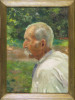 [1Y034/Z018] Olaj vászon festmény, üveglap mögött, szép állapotú képcsarnokos keretben. Akasztási lehetőséggel rendelkezik. Jelezve jobbra lent: Balog A. Hátoldalán a kereten Képcsarnok Vállalat címke töredék látható, rajta felirat: A művészeti alkotás címe: LEÁNY Magasság: 86 cm Szélesség: 66 cm Súly: 5.37 kg Balogh András (képei szignóján az 1960-as évektől Balog) (Budapest, 1919. március 14. — Budapest, 1992. március 18.) festőművész, kerttervező, művészeti szakíró, c. egyetemi tanár. Életpályája és munkássága Apai ágon a géresi Baloghok Szatmár megyéből a dél-erdélyi Alsó-Fehér megyébe származtak, anyai fölmenői a Székelyföldön: Csíkban, ill. Háromszéken éltek. Szülei az 1900-as évek elején költöztek Budapestre. A Képzőművészeti Főiskolán 1937-ben kezdte meg tanulmányait Burghardt Rezső tanítványaként. 1950-töl 1980-ig a Kertészeti Főiskolán (később Kertészeti Egyetem) tanított a kerttervezési tanszéken művészettörténetet, szabadkézi rajzot, ábrázoló geometriát és kertesztétikát. Az Iparművészeti Főiskolán óraadóként kertesztétikát adott elő. 1971-ben részt vett a firenzei Palazzo Strozziban rendezett biennálén, ahol aranyéremmel tüntették ki. Rendszeres önálló és csoportos kiállítások sora következett ezután nemcsak Magyarországon, hanem Olaszország és Németország számtalan városában, kiállított Finnországban, Kanadában is. Egyéni kiállításai gyakran katalógusokkal jelentek meg.[1][2][3] Nyaranként Tihanyban vagy Zsennyén alkotott. Festészetét poétikus realizmus jellemzi, dekoratív elrendezésű kompozíciói és lágy színvilága bensőséges hangulatot, szépséget, harmóniát árasztanak. (Lány egyszarvúval; Alvó, Emberpár és táj, stb.) Nagyon sok tájképet és portrét festett, történelmi személyiségekről is, 1978 és 1989 közt megfestette Mindszenty József bíboros portréját. Képei a Magyar Nemzeti Galériában, vidéki múzeumainkban, olasz, német, finn, észak-amerikai, kanadai, ausztráliai gyűjteményekben vannak.