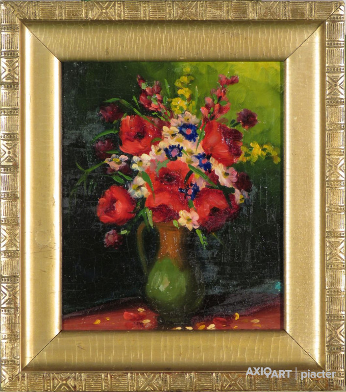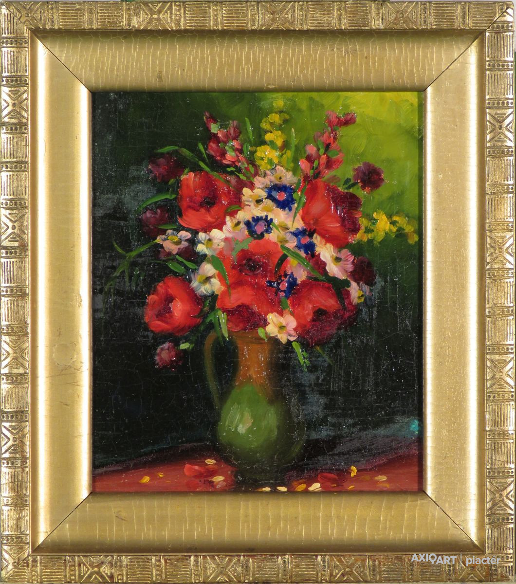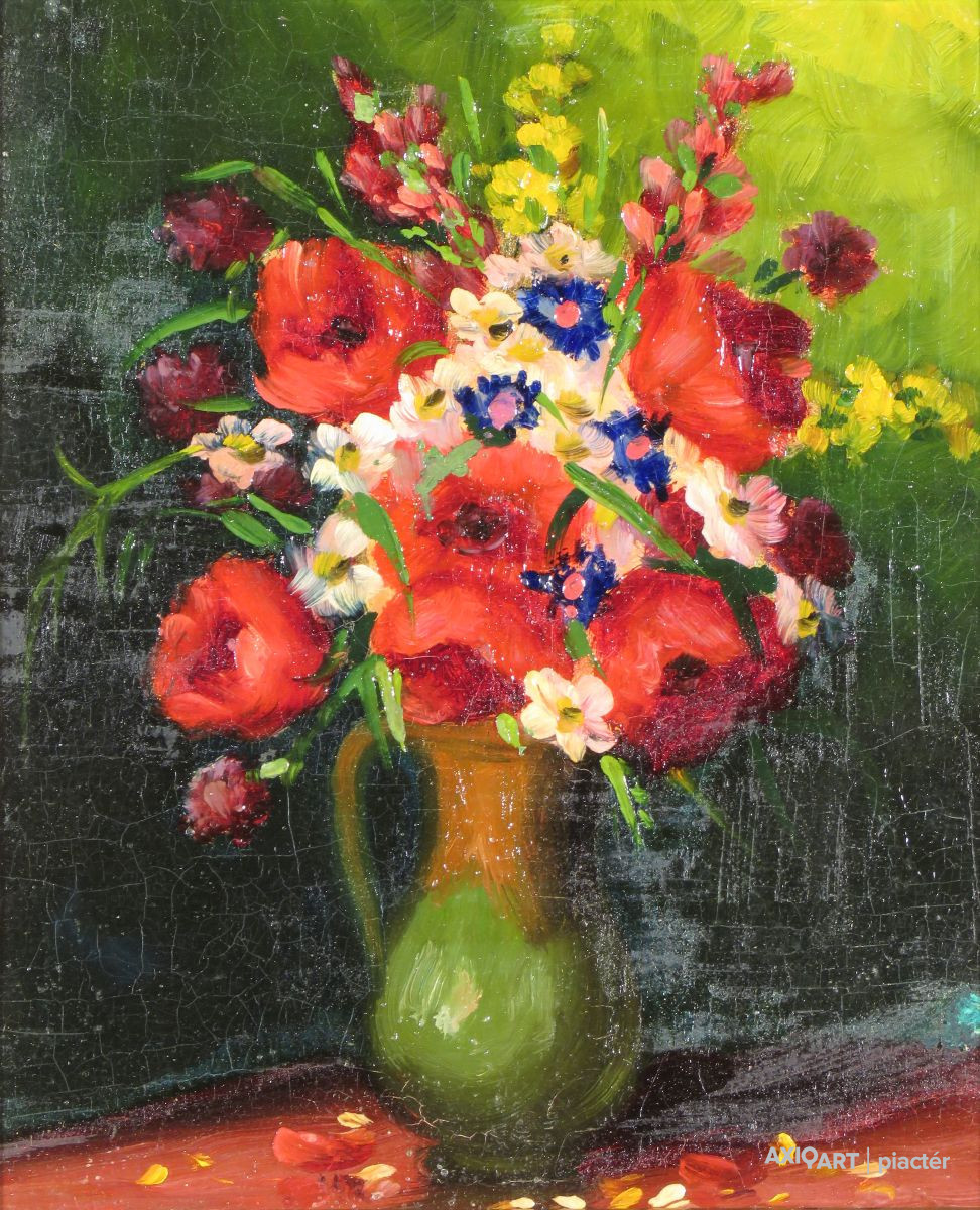 Magyar művész 1940 körül : Nyári virágok bokályban