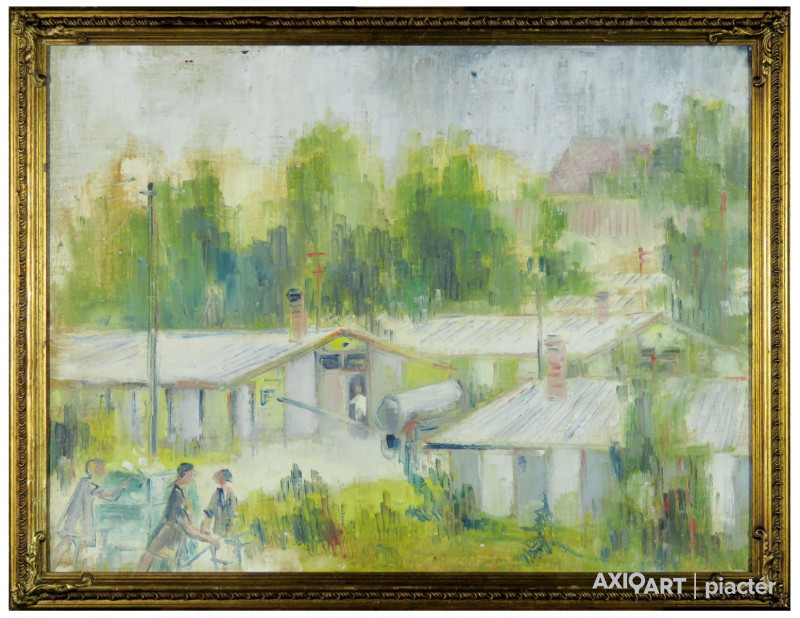 [FKB687/Bp30/35] A kép mérete: 60 x 80 cm keret nélkül. Készült: Olaj, Vászon (kasírozva) A kép Magyar művész 1960 körül alkotása. Jelezve: jelzés nélkül A festmény jó állapotban van. Keret: Sérült