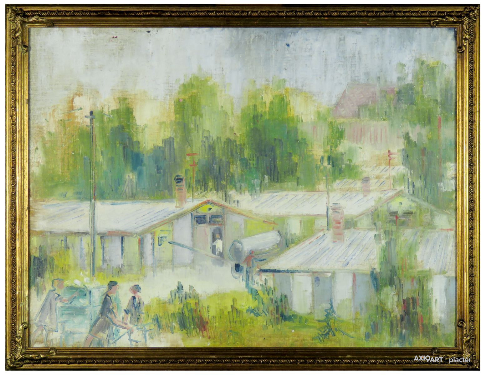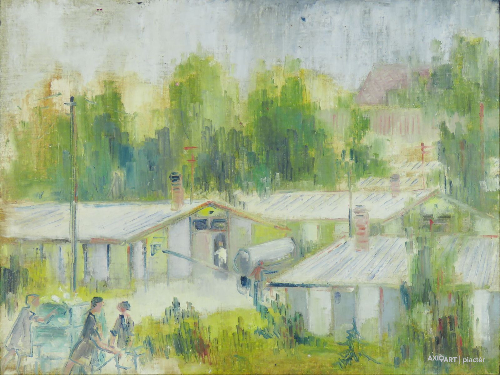 [FK3377/FL-2] A kép mérete: 55 x 75 cm keret nélkül. Készült: Olaj, Vászon A kép Hénel Gusztáv (Bustyaháza, 1887, Pápa, 1966) alkotása. Jelezve Jobbra lent "Hénel Gusztáv Ótátrafüred (töredékes) 1934 (?)" A festmény jó állapotban van. Keret: Ép Magyar festők és grafikusok életrajzi lexikona I-II. Festő. Szinyei Merse Pál, Révész Imre és Aggházy Gyula tanítványa volt, Münchenben pedig Walter Thor iskolájában tanult. Legnagyobb szeretettel és megbecsüléssel azonban Mednyánszky Lászlót emlegette élete során, akivel hosszabb ideig dolgozott együtt a tízes évek elején. Másfél évtizedig mint rajztanár tevékenykedett. Tátrai képeire felfigyelt a szakma és ösztöndíjjal Svájcba ment havasokat festeni. Segantini piktúrájának hatását fedezhetjük fel gazdag színvilágú svájci festményein. Svájci, olasz, holland stb. városok voltak külhoni tanulmányútjainak, kiállításainak színhelyei. Itthon is főleg tájképeket festett, de alkotott figurális kompozíciókat és csendéletképeket is. 1913-tól sűrűn szerepelt fővárosi és vidéki bemutatókon. Utolsó éveit Pápán töltötte és többnyire oktatással foglalkozott. (Műv. 1966/4, Éber) Magyar festők és grafikusok életrajzi lexikona I-II. Műgyűjtők és kereskedők kézikönyve Festő. Szinyei Merse Pál, Révész Imre és Aggházy Gyula tanítványa volt. Münchenben pedig Walter Thor iskolájában tanult. Legnagyobb szeretettel és megbecsűléssel azonban Mednyánszky Lászlót emlegette élete során, akivel hosszabb ideig dolgozott együtt a tizes évek elején. Másfél évtizedig mint rajztanár dolgozott. Tátrai képeire felfigyelt a szakma és ösztöndíjjal ment Svájcba havasokat festeni. Se gantini piktúrájának hatását fedezhetjük fel gazdag színvilágú svájci festményein. Svájci, olasz, holland, stb. városok voltak külföldi tanulmányútjainak, kiállításainak színhelyei. Itthon is elsősorban tájakat festett, de alkotott alakos kompozíciókat és csendéletképeket is. 1913-tól sűrűn szerepelt fővárosi és vidéki bemutatókon. Utolsó éveit Pápán töltötte és többnyire oktatással foglalkozott. (Műv. - 1966/4) Magyar festők és grafikusok adattára Budapesten tanult s azután mint rajztanár működött. Táj- és csöndéletképeivel 1913 óta sűrűn vett részt a budapesti és vidéki tárlatokon. - Irod.: MTA, Jelencsik Sándor, Jókai Mór Városi Könyvtár, Pápa, 1985. nov. 14-i levele. Művészeti lexikon I-II. Budapesten tanult s azután mint rajztanár működött. Pápán él. Táj- és csendéletképeivel 1913 óta sűrűn vett részt a bpesti és vidéki tárlatokon.
