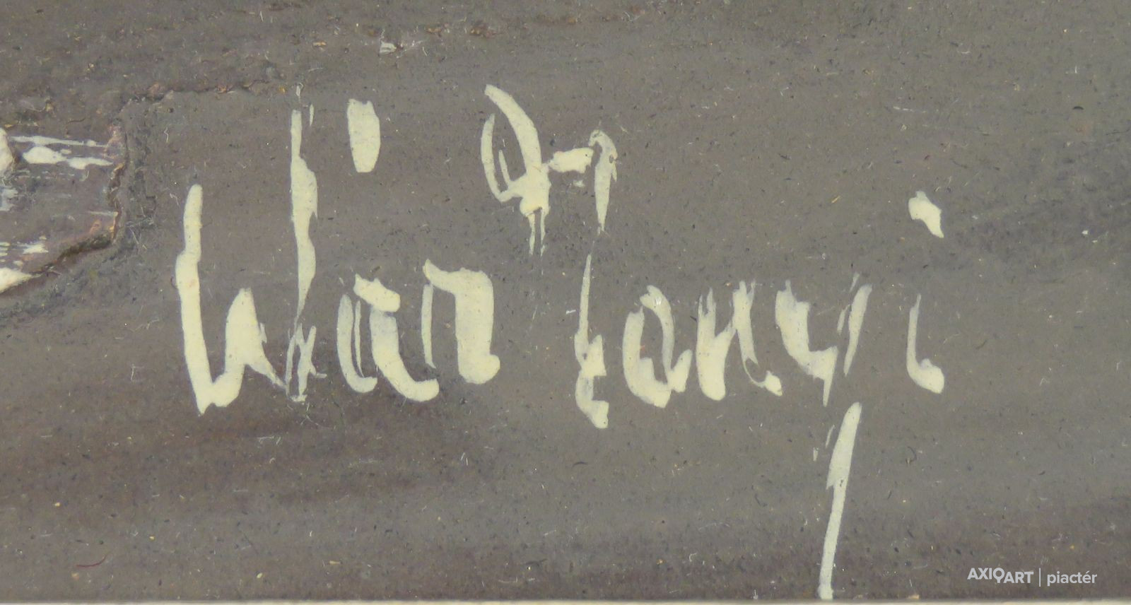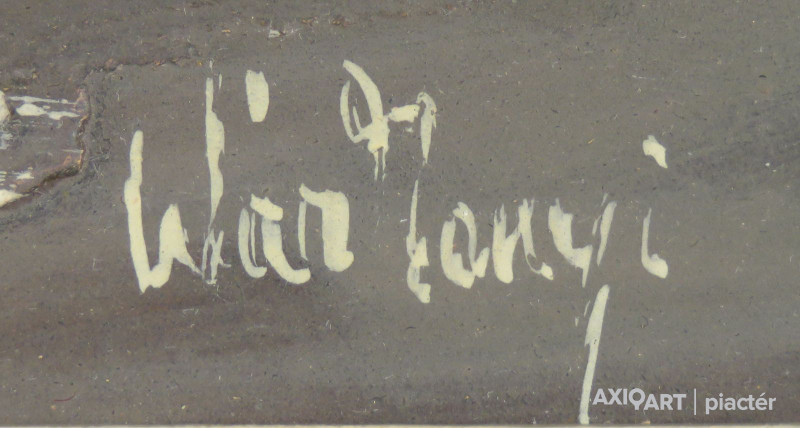 [FK3264/FL-4] A kép mérete: 31,5 x 70,5 cm keret nélkül. Készült: Olaj, tempera, Farostlemez A kép Kurucz D. István (Hódmezővásárhely, 1914, Budapest, 1996) alkotása. Jelezve Jobbra lent "Kurucz 977" A festmény jó állapotban van. Keret: Ép A festmény hátoldalán a Képcsarnokvállalat raglapja látható. Magyar festők és grafikusok életrajzi lexikona I-II. Festő, grafikus. Vásárhelyről, ahol Darvasy István festőművész figyelt fel tehetségére, került Szőnyi István magániskolájába. A fővárosi Képzőművészeti Főiskolának, ahol Rudnay Gyula, Réti István, Benkhard Ágost, Szőnyi István voltak a tanítómesterei 1940-ig volt a tanítványa. A monumentális festészetet Nagy Sándor tanította. Tanulmányúton járt több kelet- és nyugat-európai államban, Mongóliában, Japánban, Algériában. 1940-ben Hódmezővásárhelyen telepedett le, 1943-1947 között bekapcsolódott szülővárosa művészeti és közéletébe. A Vásárhely Népe c. lap munkatársa volt. 1949-59 között Szőnyi tanársegédjeként freskótechnikát tanított a főiskolán. 1951-52-ben megszervezte a Honvédségi Képzőművészeti Stúdiót, majd kinevezték a Honvéd Képzőművészeti Iskola igazgatójának. A vásárhelyi iskola reprezentáns egyéniségeként jelentős szerepe volt a Vásárhelyi Őszi Tárlatok elindításában. Megszervezete és vezette a Mednyánszky Társaságot, s haláláig művészeti vezetője volt a Hajdúböszörményi Nemzetközi Művésztelepnek. Évekig elnöke volt a Hortobágyi Alkotótábornak. Az alföldi parasztok életét megörökítő képei a falképek összefoglaló stílusában a népi realizmus és a dekoratív sommázás szellemében készültek. Számos falképet festett (Kossuth Akadémia, hódmezővásárhelyi iskola, stb.). 1941-től számos kisebb-nagyobb egyéni kiállítása volt, bemutatkozott több hazai és külhoni városban. 1941-től minden jelentősebb országos rendezvény és a magyar művészek külföldi bemutatóinak résztvevője. Rendszeresen szerepelt a Vásárhelyi Őszi Tárlatokon, a Hatvani Tájkép és Portrébiennálékon, a Szegedi Nyári Tárlatokon. Képei bemutatásra kerültek a vásárhelyi iskola jubileumi rendezvényein. 1962-ben több alkotásával szerepelt a Velencei Biennálén. Díjak: SZOT-díj, Munkácsy-díj, Érdemes és Kiváló Művész kitüntetés, Tornyai-plakett, római ösztöndíj, a Munka Érdemrend arany fokozata, Káplár Miklós-díj és emlékplakett, Kossuth-díj. Művei megtalálhatók minden jelentősebb hazai, több olasz és japán közgyűjteményben. (ML, D.J.: Műv. 1985/5, Tasnádi Attila adatközlése nyomán, L.L.: Műv. 1983/3) Magyar festők és grafikusok életrajzi lexikona I-II. Műgyűjtők és kereskedők kézikönyve Festő, grafikus. Vásárhelyről, ahol Darvasy István festőművész figyelt fel tehetségére, került Szőnyi István magániskolájába. A fővárosi Képzőművészeti Főiskolának, ahol Rudnay Gyula, Réti István, Benkhard Ágost, Szőnyi István voltak a tanítómesterei 1941-ig volt a növendéke. A monumentális festészetet Nagy Sándor tanította. Egy ideig tanársegédként működött Szőnyi mellett. Több ízben járt Itáliában tanulmányúton. Évekig művészeti vezetője volt a Hajdúböszörményi Nemzetközi Művésztelepnek. Az alföldi parasztok életét megörökítő képei a falképek összefoglaló stílusában a népi realizmus és a dekoratív sommázás szellemében készülnek. A II. világháború alatt szerepet vállalt a Szocialista Képzőművészek Csoportjának akcióiban. 1949-1960 k. a Képzőművészeti Főiskola falképtanszékének tanára volt. Több falképet festett (Kossuth Akadémia, hódmezővásárhelyi iskola, stb.). 1962-ben több alkotásával szerepelt a Velencei Biennálén, SZOT-díjas, Munkácsy-díjas, érdemes és kiváló művész kitüntető elismerésében részesült. (ML, D.J.: Műv.-1985/5, L.L: Műv.-1983/3) Magyar festők és grafikusok adattára Tanulmányait a Képzőművészeti Főiskolán végezte, ahol Rudnay Gyula és Réti István voltak a mesterei. 1941-1943-ban ösztöndíjas Rómában. 1943-1947 között Hódmezővásárhelyen dolgozik, egyidejűleg a Vásárhelyi Hétfő c. hetilap szerkesztője. 1949-1960 közötti években a budapesti Képzőművészeti Főiskola freskó tanszékének tanára. Az 1940-es évek eleje óta kiállító művész. 1962-ben a Velencei Biennálén állították ki műveit. 1970-ben Csók István Galériában volt kiállítása. A Vásárhelyi Őszi Tárlatok és a Szegedi Nyári Tárlatok rendszeres kiállító művésze. Az alföldi festészet egyéni hangú továbbfejlesztője. Táblaképeket, freskókat és kerámia falképeket alkot. Munkácsy-díjas, érdemes és kiváló művész kitüntető elismerésében részesült. A SZOT a legelső képzőművészek közt, 1962-ben tüntette ki díjával. A 70. születésnapját ünneplő művész 1984 decemberében életmű kiállítást rendezett műveiből a hódmezővásárhelyi Tornyai János Múzeumban. 1986-ban a budapesti Hollósy Galériában nyílt kiállítása. - Irod.: Szij Rezső: Kurucz Dezső István festőművész. Bp. 1967.; Kulcsár Ödön: SZOT-díjasok. Bp., 1981.; Lóska Lajos: Mindig freskót szerettem volna festeni. Beszélgetés Kurucz Dezső Istvánnal. Művészet, 1984. 3. Művészeti lexikon I-IV. Festő, Munkácsy-díjas. A Képzőművészeti Főiskolán Rudnay Gyula, Réti István, Benkhard Ágost, Szőnyi István növendéke volt 1934-40 között. Több ízben járt külföldi tanulmányúton. Az alföldi parasztok életét megörökítő képei a falképek összefoglaló stílusában a népi realizmus és a dekoratív sommázás szellemében készülnek. 1949-60 között a Képzőművészeti Főiskola falképtanszékének tanára volt. Több falképet festett (Kossuth Akadémia; Hódmezővásárhely, iskola, pápai pártház, 1965). Legutóbb 195