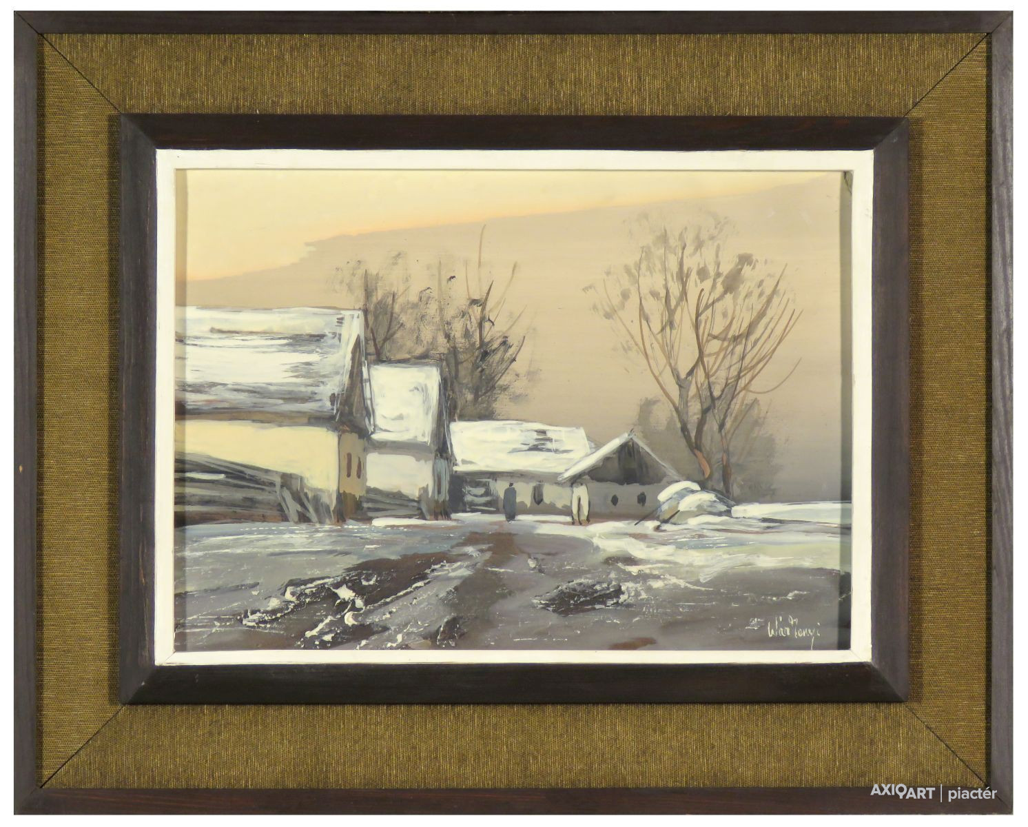 [FKB989/Bp101/41] 25% ÁRENGEDMÉNY MINDEN TERMÉKÜNKRE Dec. 14-ig A kép mérete: 22 x 30 cm keret nélkül. Készült: Olaj, Farostlemez A kép Magyar művész 1970 körül alkotása. Jelezve Jobbra lent "Várkonyi" A festmény jó állapotban van. Keret: Ép