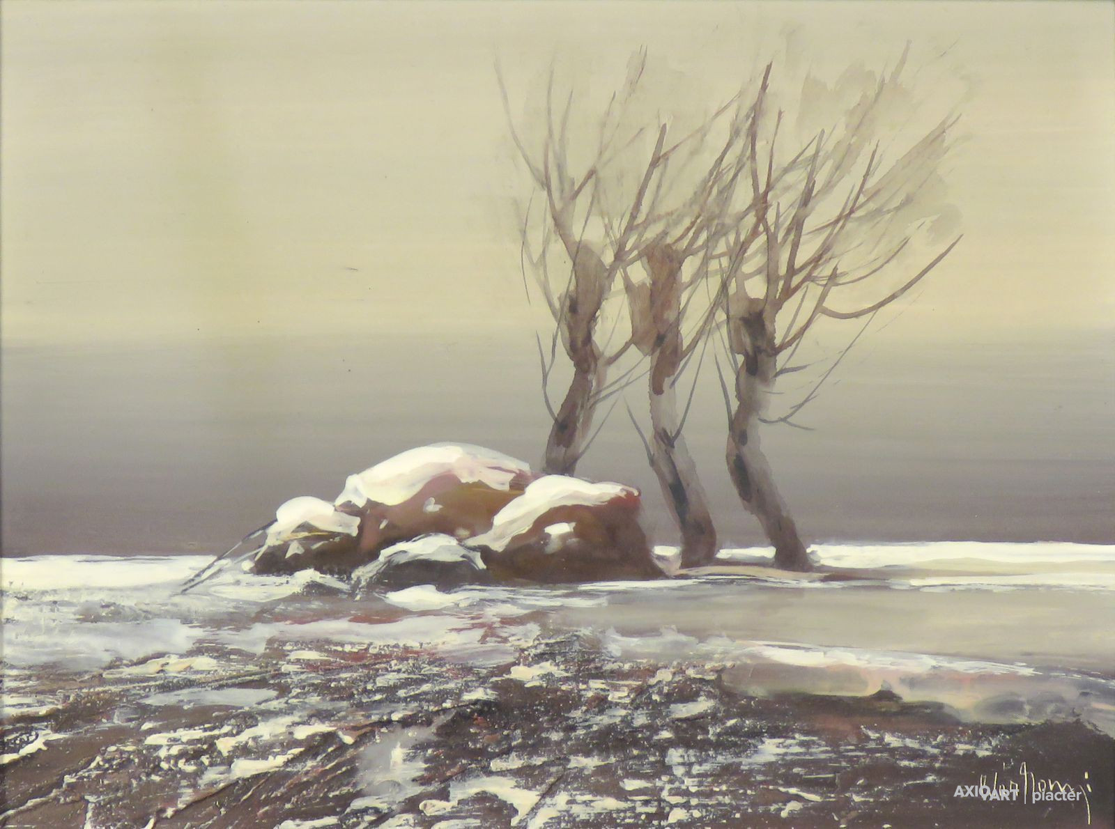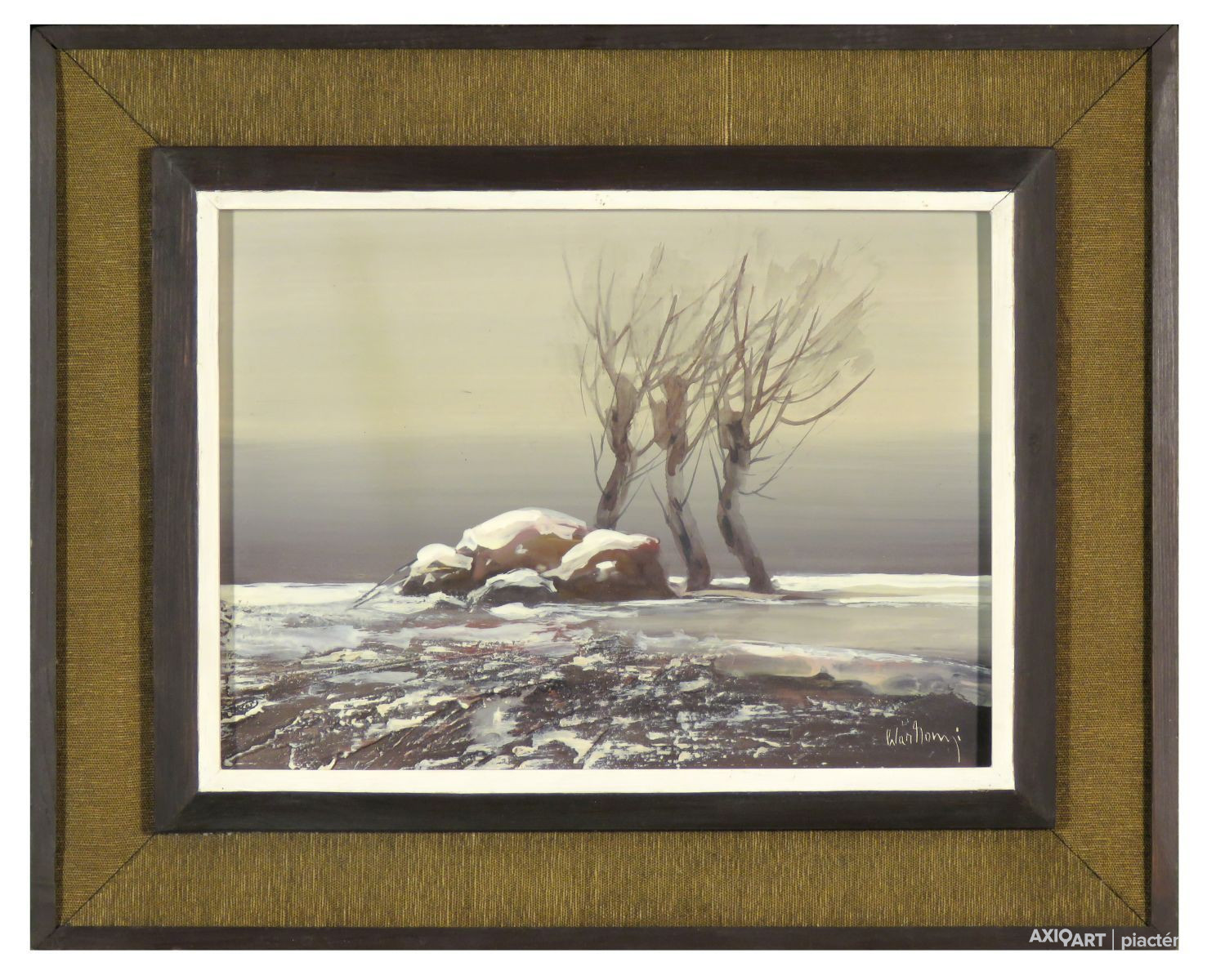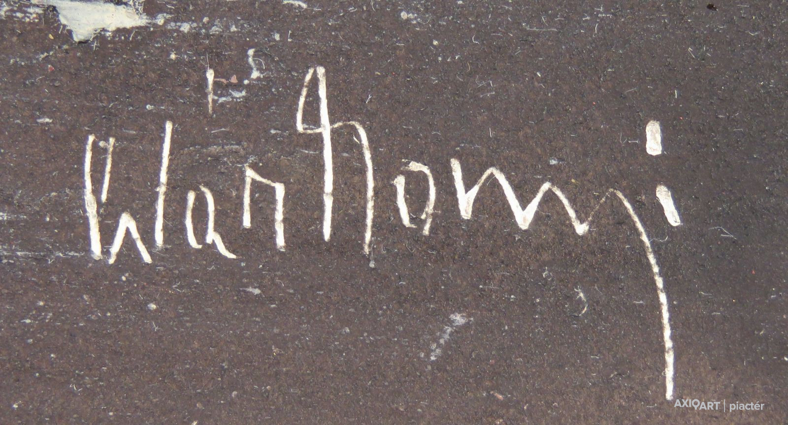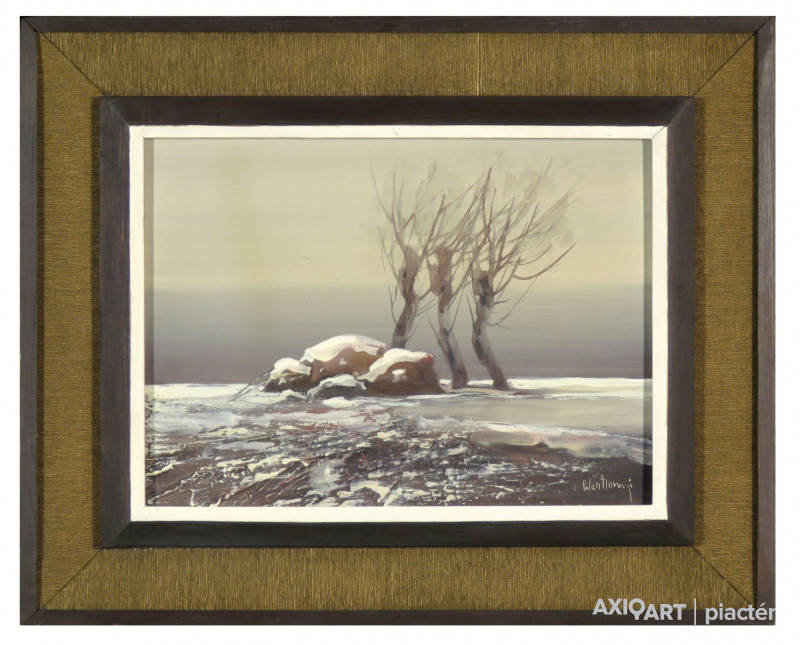 Hátoldalon autográf írással: 50x90 cm, olaj/farost Puskás Imre