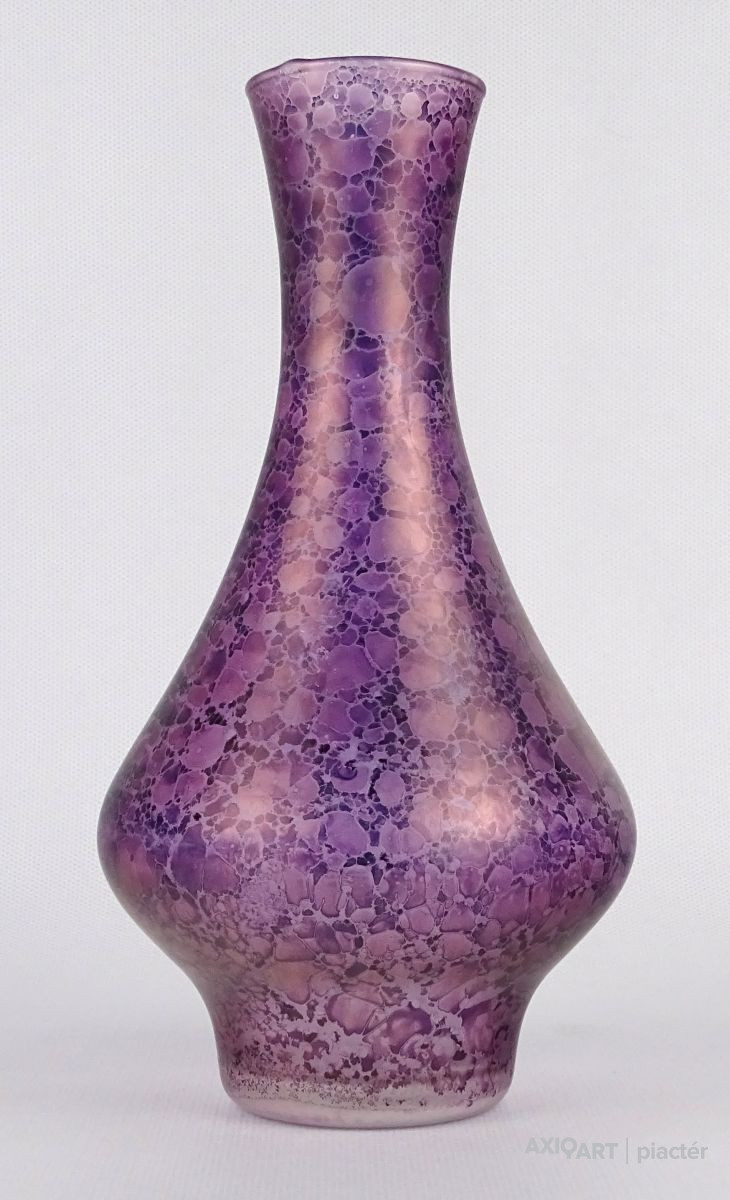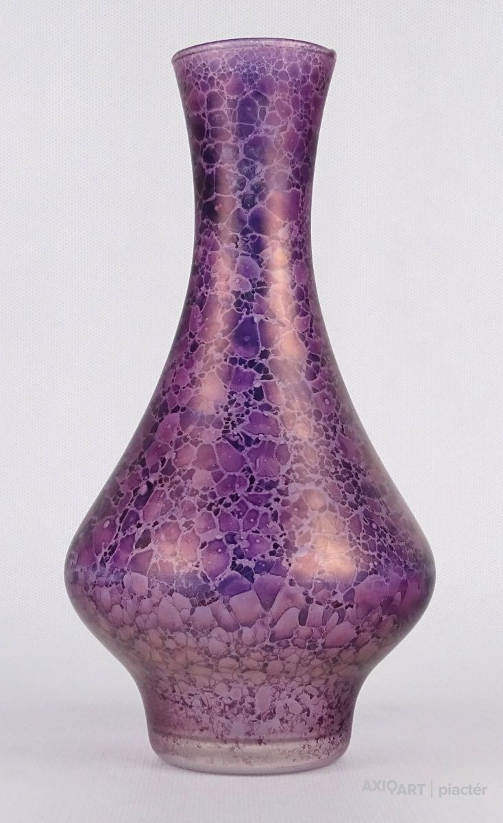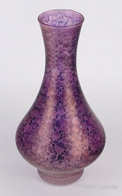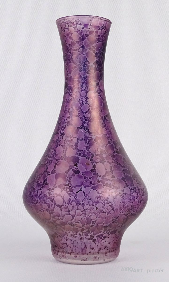 Mályva színű foltos mintás mid century művészi üveg váza 21 cm
