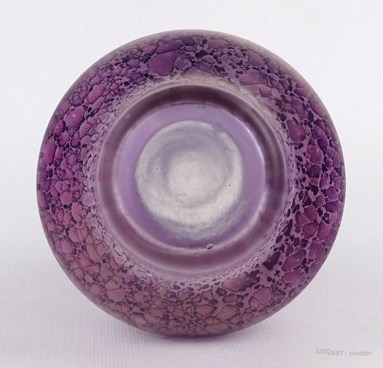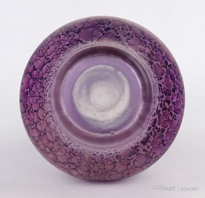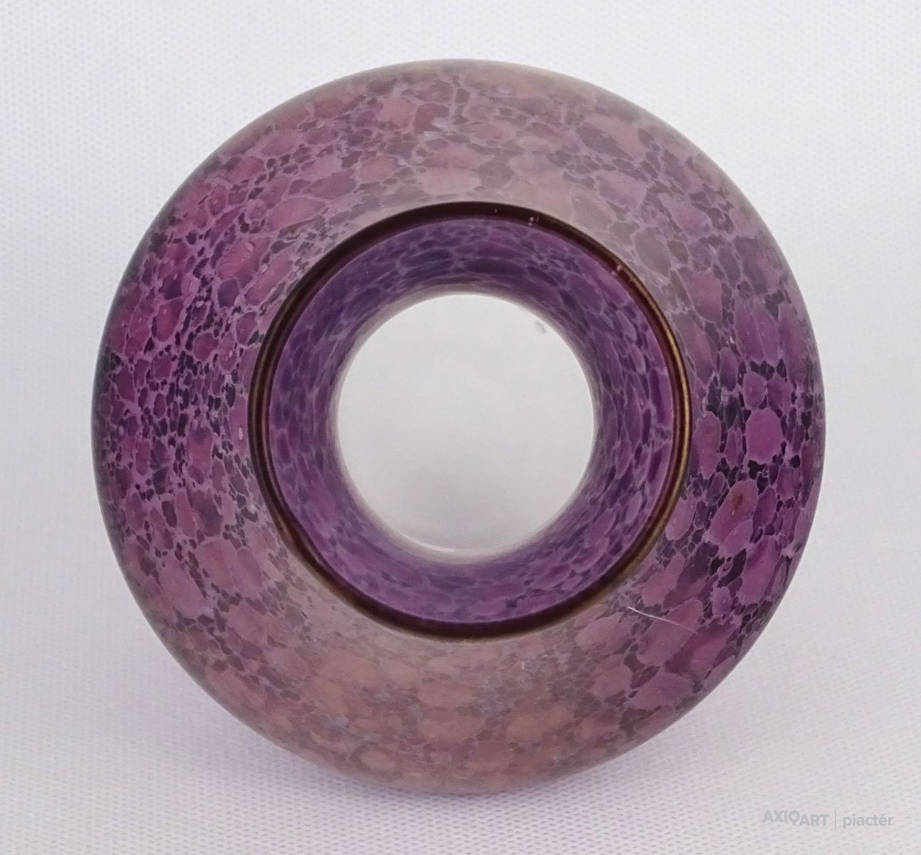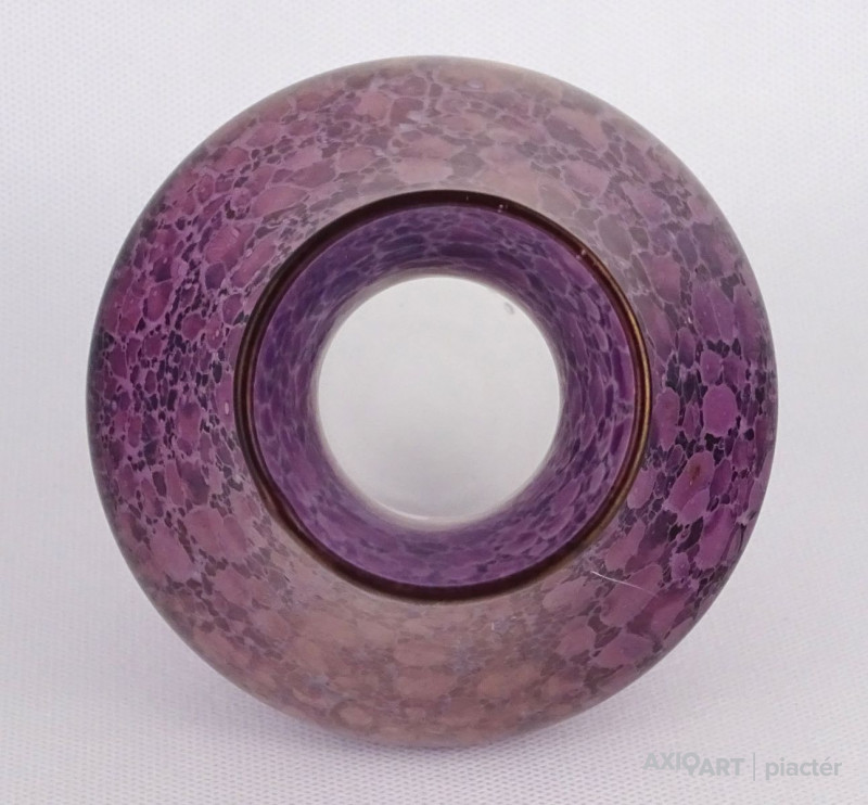 Mályva színű foltos mintás mid century művészi üveg váza 21 cm