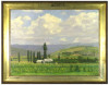 [1Y029/Z018] Olaj farost festmény, üveglap mögött, hibátlan képcsarnokos keretben. Hátoldalán Képcsarnok Vállalat papír címkéje: A művész neve: SCHÉNER MIHÁLY A kép címe: TÁJ Magasság: 66.5 cm Szélesség: 86 cm Súly: 6.54 kg Schéner Mihály festő, grafikus, szobrász, keramikus, bábtervező Medgyesegyháza, 1923-01-9 Elhalálozott: Budapest, 2009. május 11. Honlap: http://www.kormendigaleria.hu/kiadvany.html 1942-1947: Magyar Képzőművészeti Főiskola, tanára: Rudnay Gyula. 1978: Munkácsy-díj; 1984: érdemes művész; 1989: kiváló művész; 1995: Kossuth-díj. 1992-től a Magyar Művészeti Akadémia, 1993-tól a Széchenyi Irodalmi és Művészeti Akadémia tagja. 1956-ig tanított. 1982: Nagyatádi Faszobrász Alkotótelep, 1985: Nemzetközi Acélszobrász Alkotótelep, Dunaújváros. A stílusában felismerhető, mégis sokféle műtárgyat létrehozó ~ gazdag, állandóan alakuló életműve a folyton változó világban helyét kereső, az alkotói szabadságot megvalósító XX. századi képzőművész példázata lehetne. Magát expresszív-szürrealista alkotónak nevezi. Egyaránt dolgozik festékkel, textillel, fával, fémmel. Rajzol, szerkeszt, farag, épít, gyúr, varr és ragaszt, felhasználja a mézesbábok öntőformáit. Festő, rajzoló, textilszobor- és bábkészítő, fazekas, asztalos, esztergályos. Háromlépcsős folyamatban gondolkozik: rajzban tervez, majd fest, szobrot készít, “formába önt”, mindig a végső plasztikai megoldást keresi. Ami állandó és mégis játékosan változékony megjelenésű Schéner művészetében, az a gyermekkori emlékek által meghatározott népi mesterségek iránti tiszteletet kifejező motívumkincs, a tárgyi folklór formakészlete, amely már-már kézjegyként ismétlődik munkáin. Mitologikussá nőtt képzelete új lényeket teremt, pl: a Pigulát, amely disznótestű, emberfejű teremtmény. Schéner festményein a szürrealista motívumokat konstruktív szerkezetbe rendezi, a geometriát és az organikus természeti motívumokat egyaránt beépíti műveibe. A népi, népművészeti formakincsből merített lovas huszárok, betyárok, szegénylegények cifra szűr mentéje, piros csákója, fekete csizmája, az önálló életet élő zsinórdíszek és mézeskalács bábok, a kiskocsik a gyermekkori vásárok, búcsúk színes forgatagába vezet. A primér motívumokat aztán felváltják a vastagon felhordott felületbe karcolt jelek, vonalhálózatok, amelyek a játszó gyermek homokba rajzolt ábráit, a pásztorember fába vésett üzeneteit, az ősember barlang falába rótt mágikus jeleneteit idézik meg. A művész pillanatnyi érdeklődésének megfelelően a színek búvópatakként tűnnek el és jelennek meg ismét. A 60-as években leginkább a formákkal való játék érdekelte, a festmények felülete egyre gazdagodott: a táblaképek felületén applikációk jelentek meg, vagy lemállasztott rétegek hagyták maguk után hiányukat, motívumok nélküli ősformák, archetipikus képzetek bukkantak fel művészetében. A véletlenszerűnek látszó rétegekkel való játék azonban tudatos komponálás eredménye, amely később nyilvánvaló ritmusnak és formai szerkesztettségnek adja át a helyét, mint a Törvénytáblák c. sorozaton. A különböző művészi kifejezési formák egymásra termékenyítő hatással vannak, át- meg áthatják egymást. Textilszobrai, amelyekkel új műfajt teremtett, ugyanazzal az automatikus, expresszív-szürrealista módszerrel készülnek, mint festményei. A hagyományosan a népművészetben alkalmazott anyag, a filc lehetőséget ad a népi formakincs felelevenítésére, amely azonban a művész különös szürrealista átiratában jelenik meg. A szívekkel kivarrt, zsinórdíszes Posztókotlós c. művén mézesbábok lógnak, hátán huszárok lovagolnak. Egész sor textilből készült kéz-plasztikát alkot, amelyeket az ujjakra rávarrt díszekkel öltöztet, személyesít meg. A színes-különös világból aztán ~ újra puritán képi és formai rendbe juttatja el a nézőt, majd nemsokára tépett, gyűrt, vágott, csorgatott, repedezni hagyott szenvedélyesen vonagló képi felületeket hagy hátra. Schéner készített apró gyermekjátékokat, térstruktúra-tereket, mászókákat is. A magyar népi formák mellett szürreális játékaiban gyakran alkalmaz görög mitológiai alakokat, “elkentaurosodott” lovakat, Gorgó-fejeket, sellőket, hárpiákat, Pán-ábrázolásokat. Schéner nemcsak saját művészetéről publikál, hanem művésztársairól is számos írása jelenik meg, elsősorban az Új Auróra c. folyóiratban, amelynek egy ideig főmunkatársa volt. Irodalom kiállítása, Magyar Építőművészet, 1962/4. Húsz év után, Művészet, 1965/4. BOZÓKY M.: ~, Tiszatáj, 1968/5. PERNECZKY G.: Nincs uborkaszezon, Élet és Irodalom, 1969. augusztus 8. BARÁNSZKY-JÓB L.: ~, Művészet, 1969/9. LÁSZLÓ GY.: ~ kaposvári kiállítása, Jelenkor, 1969/4. MAJOR M.: Pásztorok, betyárok, huszárok - kezek, Tükör, 1970. szeptember 15. FRANK J.: Bemutatjuk ~t, Élet és Irodalom, 1972. május 6. ról kiállítása ürügyén, Képzőművészeti Almanach, Budapest, 1972 Sötétkék kokasok, Élet és Irodalom, 1973. szeptember 9. MAJOR M.: ~ játékai, Élet és Irodalom, 1974. július 27. BARTA J.: Egy különös művész, Alföld, 1974/6. VADAS J.: Szárnykészítők, Élet és Irodalom, 1975. október 4. JUHÁSZ F.: A halál ellen játszani, Élet és Irodalom, 1975. május 17. PAP G.: Kincsek és műkincsek, Művészet, 1975/6. P. SZŰCS J.: Az utak kettéválnak, Művészet, 1978/3. Békési művészet, Művészet, 1978/7. SZAMOSI F.: ~ [kismonográfia], Budapest, 1978 VADAS J.: Játék a játékkal, Élet és Irodalom, 1979. augusztus 18. NÉMETH L.: ~ műveiről, Művészet, 1979/4. MIKLÓS P.: Mit akar ez a múzeum?, Művésze