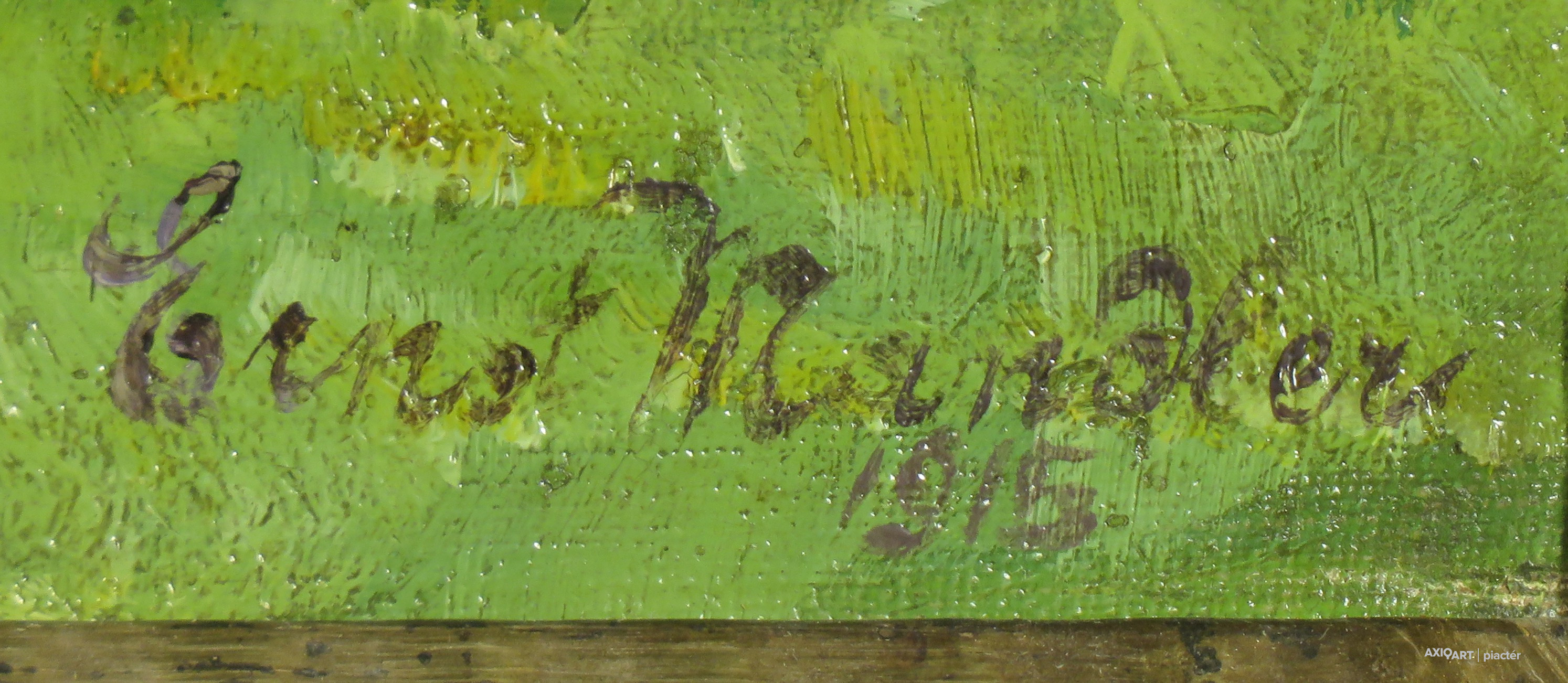 [FKB438/Bp10/26] A kép mérete: 65 x 85,5 cm keret nélkül. Készült: Olaj, Vászon A kép Mandler, Ernst jelzéssel német festő 1915 alkotása. Jelezve jobbra lent "Ernst Mandler 1925" A festmény több helyen sérült. Keret: Ép