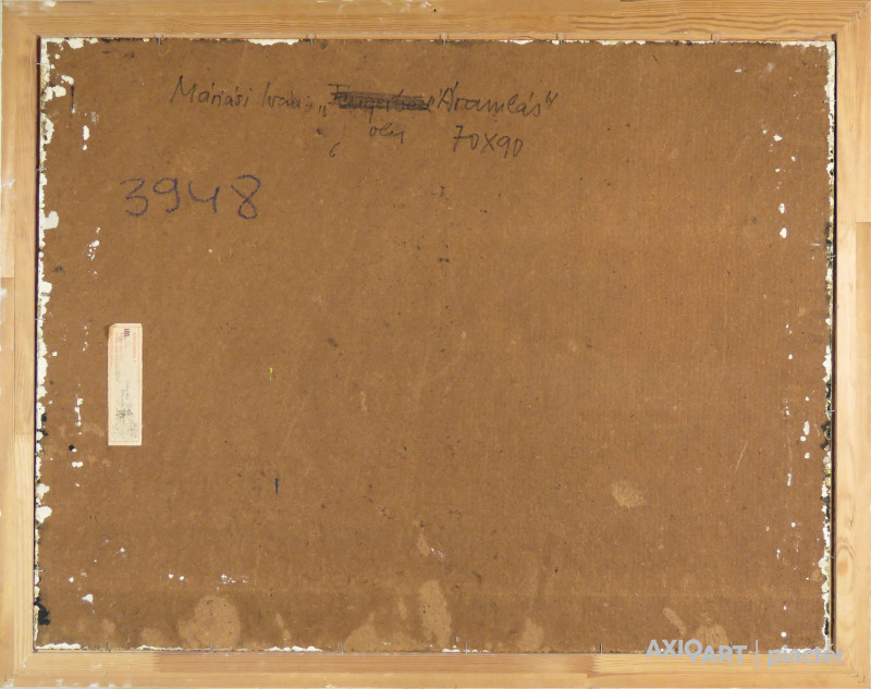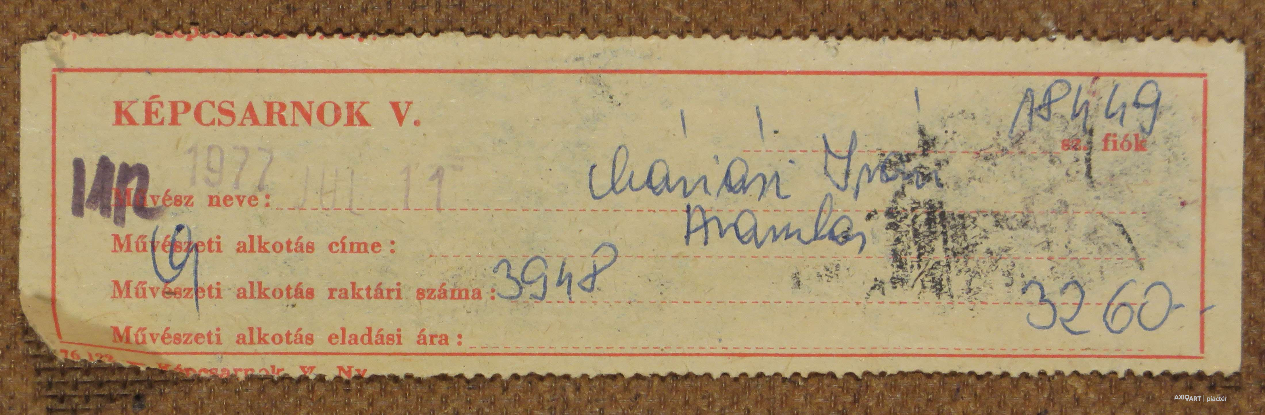 A festmény hátoldalán a Képcsarnok Vállalat etikettje és autográf írással a művész feljegyzése látható.