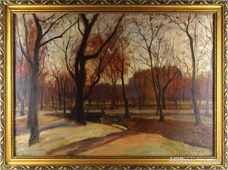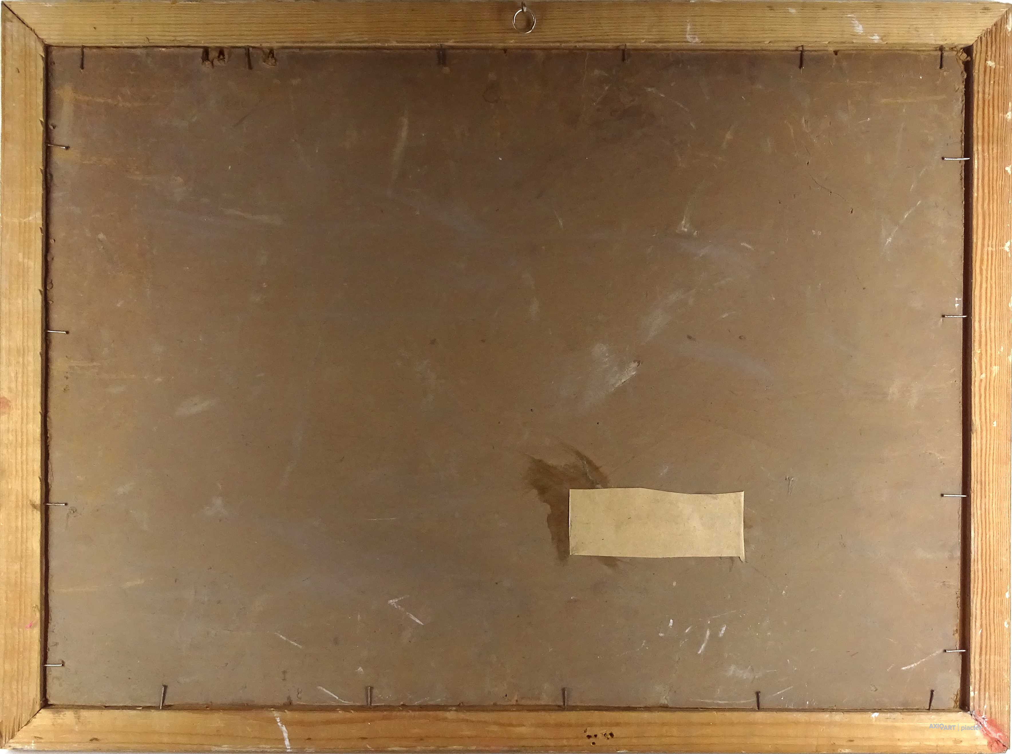 [FK2668/Bp301/4] A kép mérete: 50,5 x 80,5 cm keret nélkül. Készült: Olaj, Vászon A kép Moldován István (Kolozsvár, 1911) alkotása. Jelezve Jobbra lent "Moldován István" A festmény jó állapotban van. Keret: Ép A festmény hátoldalán a Képcsarnokvállalat raglapja láltható. Magyar festők és grafikusok életrajzi lexikona I-II. Festő. Tanulmányait Kolozsvárott, a Szépművészeti Főiskolán kezdte 1930-ban. A következő esztendőben a nagybányai Szépművészeti Iskolában Thorma János és Krizsán János korrektúráján képezte magát. 1931-ben a budapesti Képzőművészeti Főiskola hallgatója lett. Réti István, később Szőnyi István volt a mestere. Már mint főiskolás sok díjat és kitüntetést nyert. 1948-ban megkapta a római ösztöndíjat, de lemondva róla, Erdélybe ment. 1948-1950 között Erdélyben élt, és népművészetben gazdag vidékein festett. 1943-ban Kolozsvárott, 1946-ban Gyöngyösön, 1955-ben, 1959-ben és 1962-ben a Kulturális Kapcsolatok Intézetében, illetve a Csók Galériában rendezett egyéni bemutatókat. Ezen kívül több Európai országban, az USA-ban, Kanadában és Indiában is bemutatta munkáit. Eleinte sajátos atmoszférájú, lírai tájképeket, eleven színvilágú képmásokat festett, később mondernebb, erőteljesebben szerkesztett művekkel jelentkezett. A Pécsi Tanárképző Főiskola számára mozaikot készített. Erdély szerelmese volt. A székely népművészet gazdag formavilágának hatása döntő jelentőségűvé vált sokoldalú művészetében. Műv. díjak: a Szinyei Társaság elismerő oklevele, a Főváros festészeti-díja, "Kolozsvár a képzőművészetben" II. díj, állami ösztöndíj, római ösztöndíj, a Képzőművészek Szövetsége Észak-Magyarországi festészeti díja, SZOT festészeti díj. Több murális művet (mozaik) alkotott. A Magyar Nemzeti Galéria több alkotását őrzi. (M. L.: Műv. 1967/6, RI-NM) Magyar festők és grafikusok életrajzi lexikona I-II. Műgyűjtők és kereskedők kézikönyve Festő. Tanulmányait a kolozsvári Szépművészeti Főiskolán kezdte 1930-ban. A nagybányai szabadiskolában is megfordult. Itt Thorma János és Krizsán János korrektúráján képezte magát. 1931-ben Budapesten a Képzőművészeti Főiskola hallgatója lett. Réti István, később Szőnyi István volt a mestere. Már mint főiskolás sok díjat nyert. 1948-ban megkapta a római ösztöndíjat, de lemondva róla, Erdélybe ment. 1948-1950 k. Erdélyben élt, és népművészetben gazdag vidékein festett. 1943-ban Kolozsváron, 1946-ban Gyöngyösön, 1955-ben, 1959-ben és 1962-ben a Kulturális Kapcsolatok Intézetében, illetve a Csók Galériában rendezett önálló kiállítást. Ezen kívül több Európai országban, az USA-ban, Kanadában és Indiában is bemutatta műveit. Eleinte sajátos atmoszférájú, lírai tájképeket, eleven színvilágú képmásokat festett, később mondernebb, erőteljesebben szerkesztett művekkel jelentkezett. A Pécsi Tanárképző Főiskola számára mozaikot készített. Erdély szerelmese volt. A székely népművészet gazdag formavilágának hatása döntő jelentőségűvé vált sokoldalú művészetében. 1942-ben megkapta a Szinyei Társaság elismerését, és a Főváros festészeti-díjat,1943-ban elnyerte a "Kolozsvár a képzőművészetben" c. díjat. 1947-ben állami ösztöndíjat,1948-ban a római ösztöndíjat, 1972-ben a Képzőművészek Szövetsége Észak-Magyarországi festészeti díját kapta meg. A MNG több művét őrzi. (M. L.: Műv.-1976/6) Magyar festők és grafikusok adattára Tanulmányait Kolozsvárott a Képzőművészeti Főiskolán, majd Nagybányán Thorma János és Krizsán János irányítása mellett kezdte, 1931-től Budapesten megszakításokkal a Képzőművészeti Főiskolán Réti István és Szőnyi István növendékeként fejezte be. 1949-ben és 1950-ben ösztöndíjjal dolgozott Erdélyben, majd hosszú tanulmányutakra indult Nyugat-Európába, az Egyesült Államokba, s a Szovjetunióba. Először Kolozsvárott lépett a nyilvánosság elé 1943-ban, majd 1946-ban Egerben és Gyöngyösön, 1947-ben Miskolcon, 1948-ban Hatvanban, 1955, 1961 és 1981-ben a Csók Galériában, 1959-ben a KKI-ben, 1960-ban Nagykanizsán, 1963-ban Kiskunfélegyházán, 1966-ban Debrecenben, 1969 és 1975-ben Békéscsabán, 1971-ben a Mednyánszky Teremben, 1973-ban Gyöngyösön és Debrecenben, 1977-ben Egerben, 1979-ben Veszprémben, 1983-ban Miskolcon, 1984-ben Csepelen, 1986-ban a Vigadó Galériában rendezett önálló kiállítást. Külföldi kiállításai: Moszkva, Varsó, India, Szófia, Párizs, Bukarest, Belgrád, New York, Montreál és Toronto. Eddig közel kétezer színes táblaképet festett, de szívesen foglalkozik mozaikkészítéssel is. 1964-ben a Pécsi Pedagógiai Főiskola, 1968-ban a Salgótarjáni Kórház, 1969-ben a názáreti templom és 1970-ben a Videoton Vállalat díszterme részére mozaikot készített. - Erdély szerelmese. A székely népművészet gazdag formavilágának hatása döntő jelentőségűvé vált festészetében. Olyan formanyelvet alakított ki magának, amely színvilágában és summázó formaalakításában sajátos erdélyi zamat érződik, ugyanakkor korszerűen modern is konstruktivista stílusa. Munkásságát 1942-ben a Szinyei Társaság elismerésével és a Fővárosi festészeti-díjjal, 1943-ben Római-ösztöndíjjal, 1947-ben Állam ösztöndíjjal (Románai), 1963-ben a SZOT festészeti-díjával, 1972-ben a Képzőművészek Szövetsége Észak-Magyarországi festészeti-díjával tüntették ki. - Irod.: Bíró Béla: Kolozsváry Moldován István. Erdélyi Helikon, 1943.; Felvinczi Takács Zoltán: Kolozsváry Moldován István. Kolozsvár, 1943.; Dutka Mária: Magyar Nemzet, 1961.; Maksay László: Moldován István. Művészet, 1965.; D. Fehér Zsuzsa. Moldován István, Bp. 1971.; Theisler G